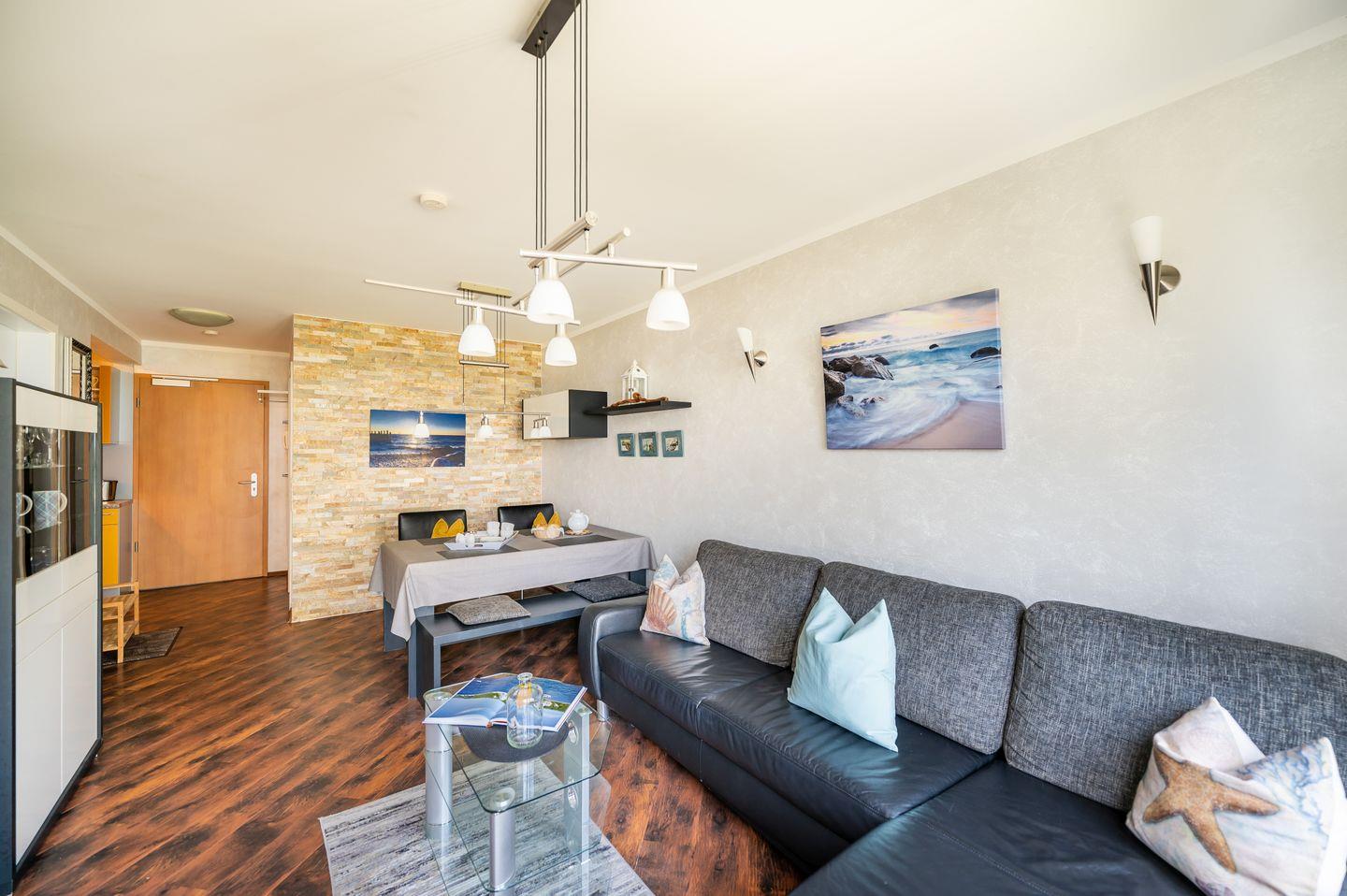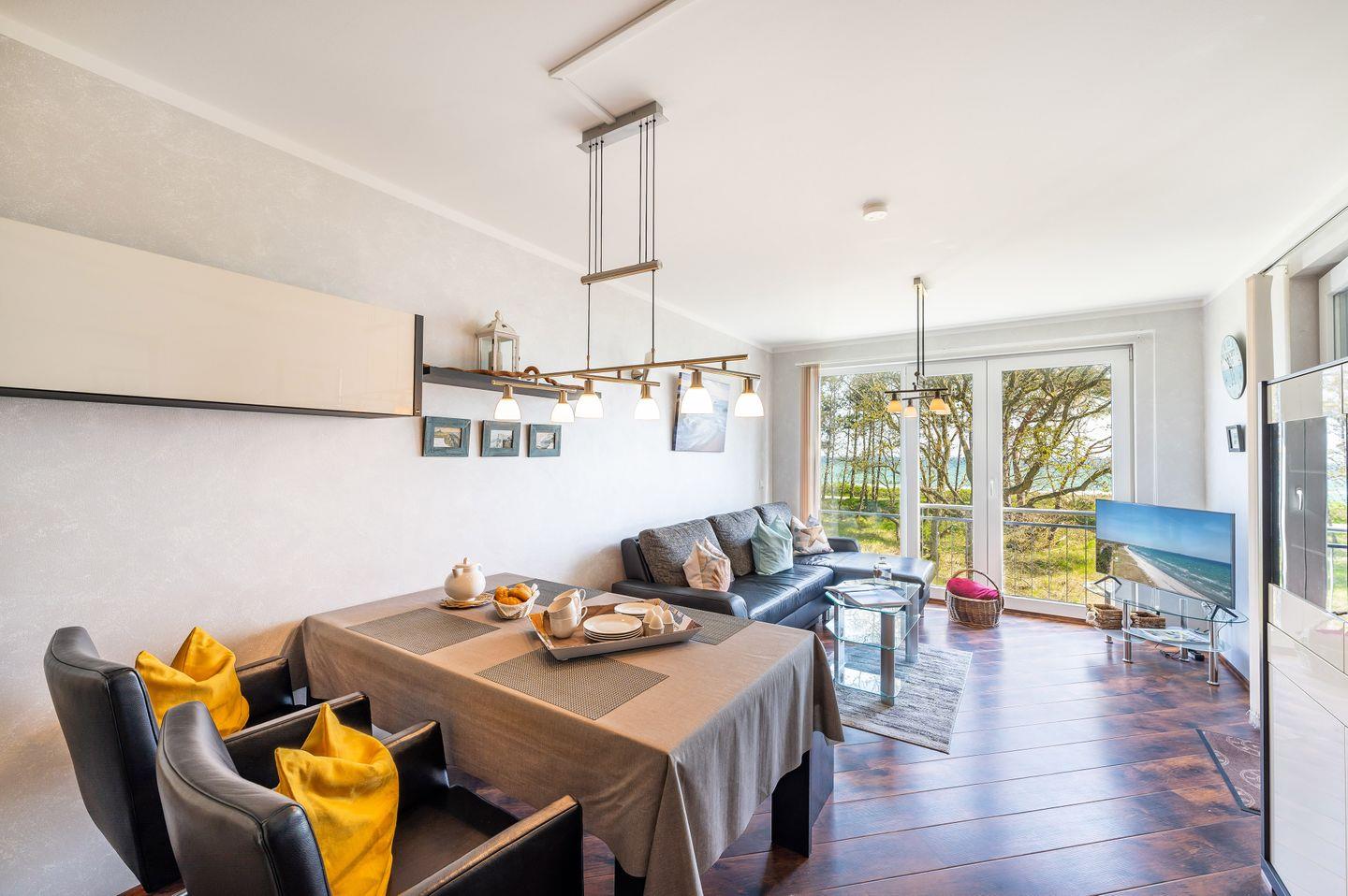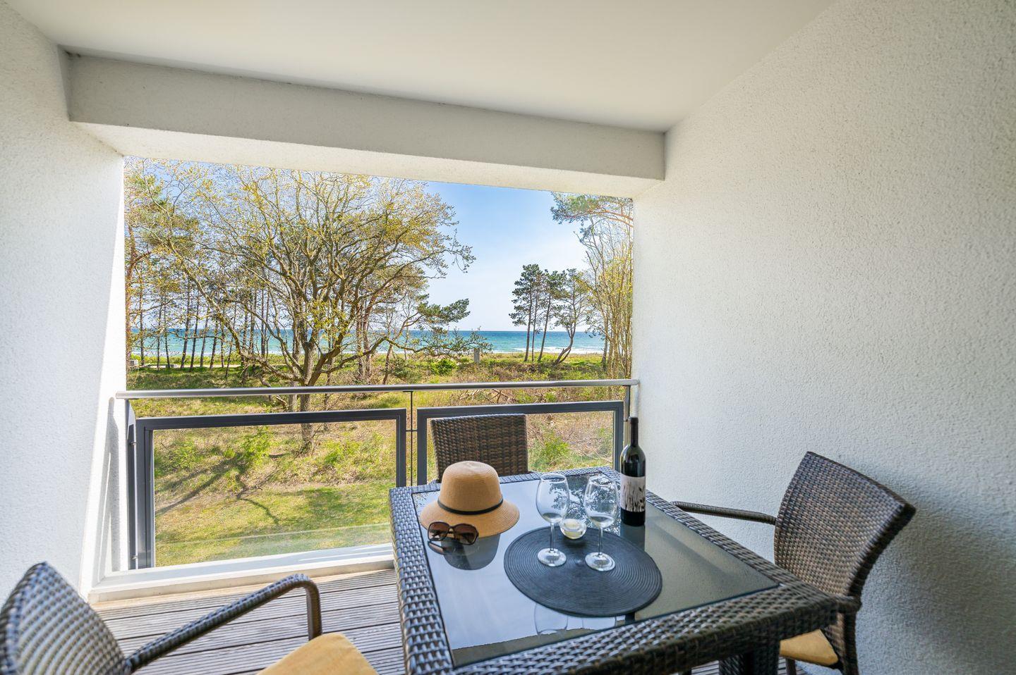 Erholen Sie sich vor fabelhafter Kulisse in der Ferienwohnung „Meeresstimmung“. Nur wenige Meter von einem der schönsten Strände Rügens entfernt, erwartet Sie hier eine komfortable Unterkunft für zwei Personen und ein Kleinkind. Das Rauschen der Ostsee wird Sie die Strapazen des Alltags vergessen lassen. Der möblierte Balkon mit herrlichem Meerblick lädt zum Entspannen und Verweilen ein und die komplett ausgestattete Küche bietet alle Möglichkeiten für kreative Kochabende. Ein eigener PKW-Stellplatz sowie der abschließbare Fahrradraum bieten Ihnen die nötige Flexibilität, um Ihren Urlaub ganz nach Ihren Vorstellungen zu gestalten.
