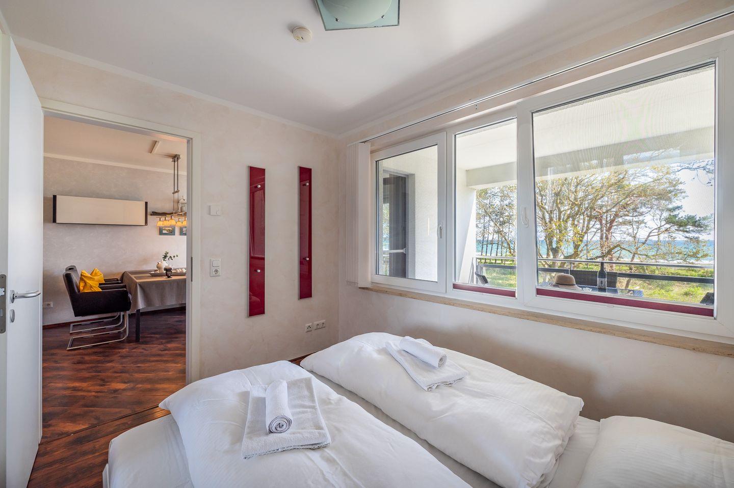 Die Ferienwohnung „Meeresstimmung“ bietet Platz für bis zu zwei Personen und ein Kleinkind und liegt unmittelbar am feinsandigen Strand der Schaabe. Genießen Sie den herrlichen Meerblick vom möblierten, überdachten Balkon und nutzen Sie die komplett ausgestattete Küche für gesellige Kochabende. Ein eigener PKW-Stellplatz und ein abschließbarer Fahrradraum sorgen für Flexibilität bei Ihren Inselerkundungen, während das malerische Seebad Breege-Juliusruh mit seinen Erholungsmöglichkeiten und regionalen Restaurants einen traumhaften Urlaub in Rügen verspricht.