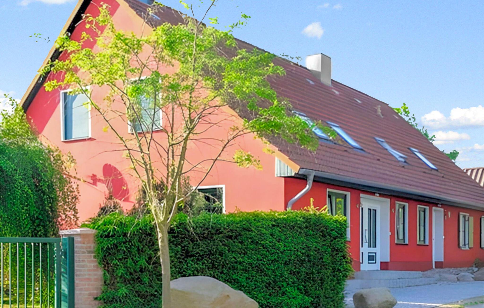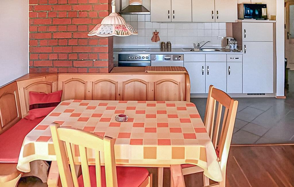 Det separate, nyudviklede dobbelthus ligger på en lukket, indhegnet ejendom med udsigt over Peenestrom (200 m). Udstyret er behageligt. Den anden halvdel af huset er beboet af ejeren, som kun lejlighedsvis er på stedet. Der er gode fiskemuligheder tæt på ejendommen, og et badeområde er cirka 200 m væk. Feriehuset har en stor stue/spisestue i stueetagen (polstret opholdsområde, spiseplads, pejs, TV, radio), 2 soveværelser på øverste etage (1 dobbeltseng i hver, og en seng med udtræksseng i et soveværelse), komplet tekøkken med el-komfur, opvaskemaskine og mikroovn, bad/toilet, insektgaze, centralvarme. Der er terrasse, grill, barneseng og parkeringsplads til rådighed. Den samlede pris inkluderer: sengelinned, håndklæder, vand- og energiforbrug samt slutrengøring. Kölpin er en lille landsby i den sydvestlige del af øen Usedom ved Peenestrom, rolige, landlige omgivelser. Hvis du krydser Zecherinerbroen ved Anklam, er der stadig cirka 2 km til din feriedestination. Byen Usedom ligger 8 km derfra, og Østersøen ligger 28 km derfra.