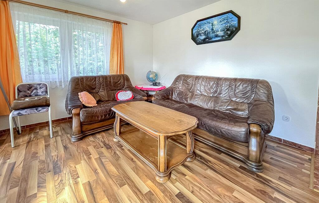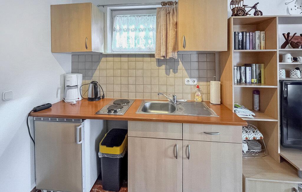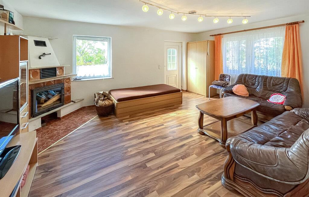 Dette fritliggende feriehus ligger på ejerens 3.000 kvadratmeter store grund i udkanten af ??landsbyen og skoven, nær Bäderstraße (Badevejen). Det ligger cirka 1 km fra Østersøstranden. Feriehuset er udstyret med en stue (polstrede møbler, sovesofa, LCD-tv, radio, pejs), et soveværelse (dobbeltseng), et tekøkken (el-komfur, køleskab med fryser, diverse køkkenapparater) og et badeværelse med bruser/toilet. Tilbring kølige dage ved den hyggelige pejs. En stor terrasse, en grill og en parkeringsplads er til fri afbenyttelse. Den samlede pris inkluderer sengelinned, vand- og energiforbrug, pejs og slutrengøring. Håndklæder skal medbringes.