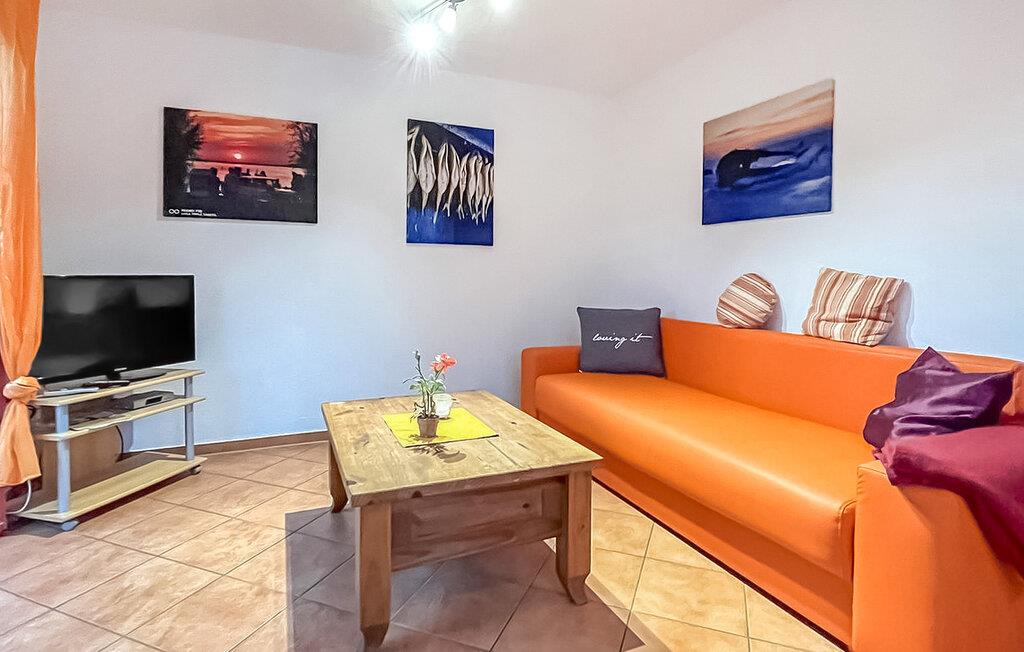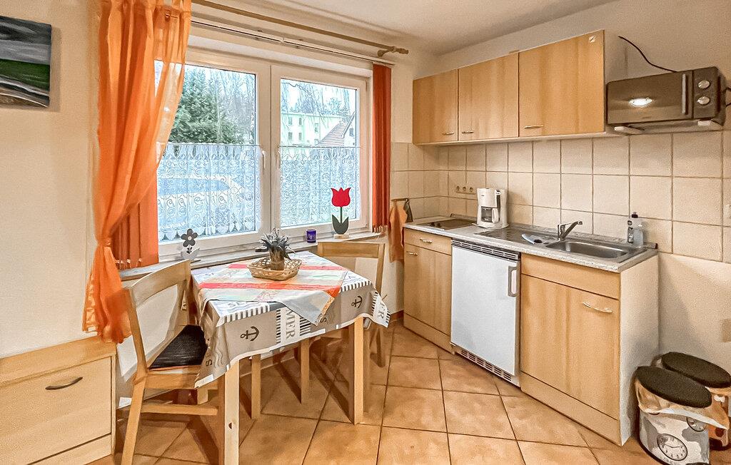 Denne ene af tre ferielejligheder ligger i et separat rækkehus-stil med separat adgang. Rolig beliggenhed på en sidegade, ca. 500 m fra stranden. Lejligheden har opholdsstue (dobbelt sovesofa, spiseplads, TV, radio), soveværelse med dobbeltseng, pantry køkken med 2-plade komfur og mikroovn, bad/WC, centralvarme. Lejligheden har en møbleret terrasse med grill og en gratis parkeringsplads. Mulighed for brug af vaskemaskine efter aftale. Den samlede pris inkluderer: sengelinned, vand og energiforbrug. Du skal selv medbringe håndklæder. Kæledyr: En lille hund (ikke en kat) på op til 40 cm er tilladt i denne ejendom. Medbring venligst en måtte/sovemulighed (tæppe, kurv) til dit dyr. Denne lejlighed har en størrelse på 40 kvadratmeter og er beliggende i FH på højre side. Badebyen Kölpinsee er et distrikt i Loddin kommune i den midterste del af øen Usedom, på det smalle punkt mellem Østersøen og Achterwasser. Østersøstranden ved Kölpinsee er bred og særlig fin. Samtidig lover stedet fred og afslapning ved Achterwassers indre kyst og er et interessant sted at bo, især for lystfiskere, takket være Kölpinsee, som er rig på fisk. Der er en multi-generation legeplads på promenaden. Fra maj til oktober finder forskellige arrangementer sted i den lokale spa-pavillon med udsigt over søen Kölpinsee. Der er også restauranter og butikker i byen, en ridestald og udlejning af cykel, båd og strandstole.