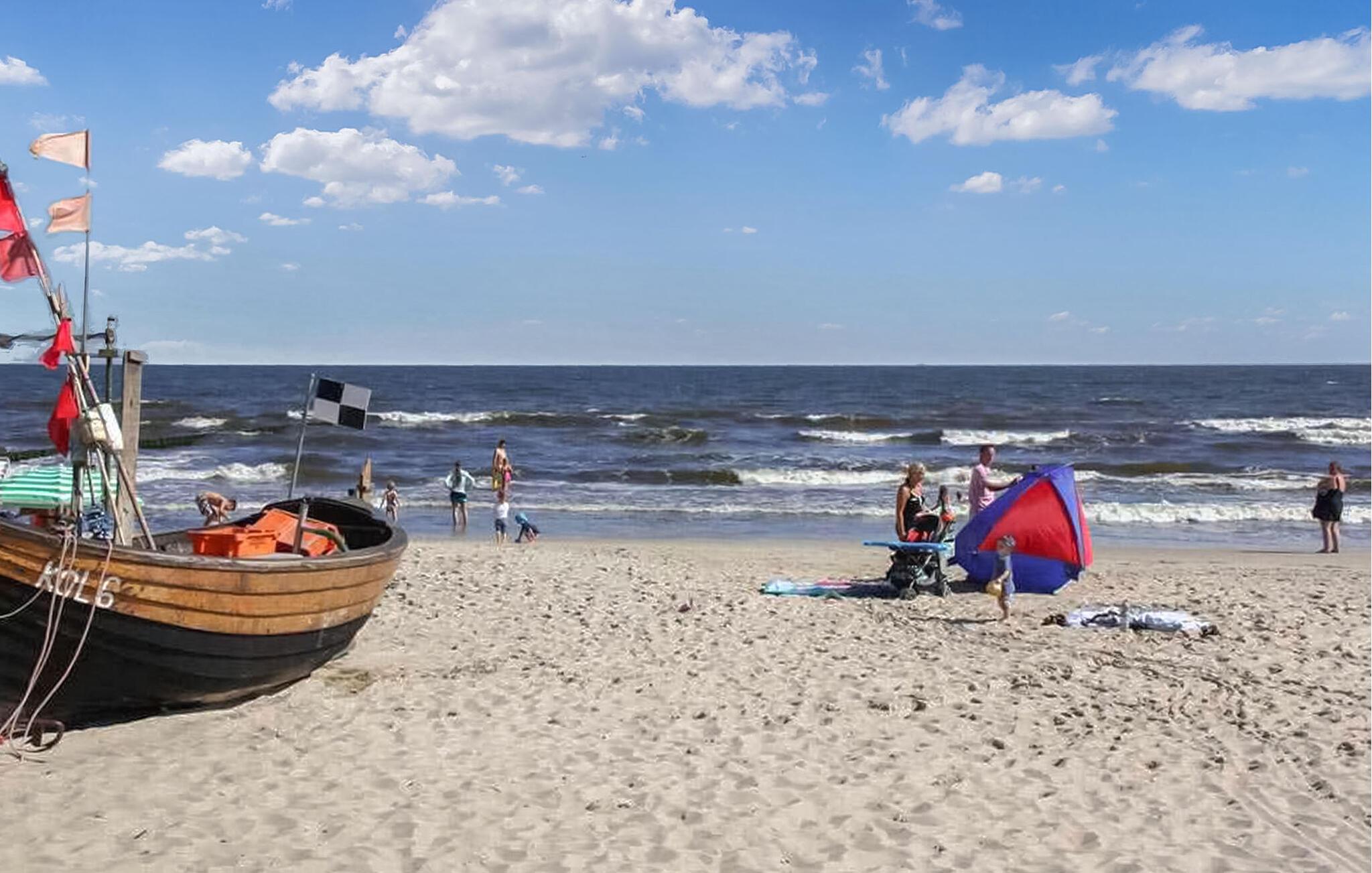 Denne ene af tre ferielejligheder ligger i et separat rækkehus-stil med separat adgang. Rolig beliggenhed på en sidegade, ca. 500 m fra stranden. Lejligheden har opholdsstue (dobbelt sovesofa, spiseplads, TV, radio), soveværelse med dobbeltseng, pantry køkken med 2-plade komfur og mikroovn, bad/WC, centralvarme. Lejligheden har en møbleret terrasse med grill og en gratis parkeringsplads. Mulighed for brug af vaskemaskine efter aftale. Den samlede pris inkluderer: sengelinned, vand og energiforbrug. Du skal selv medbringe håndklæder. Kæledyr: En lille hund (ikke en kat) på op til 40 cm er tilladt i denne ejendom. Medbring venligst en måtte/sovemulighed (tæppe, kurv) til dit dyr. Denne lejlighed har en størrelse på 40 kvadratmeter. og er placeret til venstre i FH. Badebyen Kölpinsee er et distrikt i Loddin kommune i den midterste del af øen Usedom, på det smalle punkt mellem Østersøen og Achterwasser. Østersøstranden ved Kölpinsee er bred og særlig fin. Samtidig lover stedet fred og afslapning ved Achterwassers indre kyst og er et interessant sted at bo, især for lystfiskere, takket være Kölpinsee, som er rig på fisk. Der er en multi-generation legeplads på promenaden. Fra maj til oktober finder forskellige arrangementer sted i den lokale spa-pavillon med udsigt over søen Kölpinsee. Der er også restauranter og butikker i byen, en ridestald og udlejning af cykel, båd og strandstole.