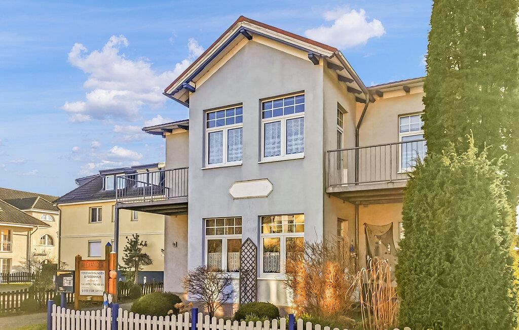 De seks ikke-ryger ferielejligheder af forskellig størrelse og indretning ligger separat i stueetagen og øverste etage i en lejlighedsbygning med en central beliggenhed. Der er også et sommerhus (DZV870) på ejendommen. Østersøstranden med strandpromenade, restauranter/caféer og Usedomer Bäderbahn togstation ligger inden for cirka 500 m. Denne toværelses lejlighed til 2 personer ligger på øverste etage. Den er udstyret med en stue (polstrede møbler med sovefunktion som en ekstra seng til 2 personer, fladskærms-tv), et køkken (spisebord, elektrisk kogeplade, køleskab med fryser, mikroovn, diverse køkkenmaskiner), et soveværelse (2 enkeltsenge der kan sættes sammen) og et Badeværelse med brus/toilet. Lejligheden har en møbleret altan. Der er et centralt udendørs opholdsområde med grillfaciliteter på den 820 kvm store ejendom. Der er også opbevaringsplads til cykler og parkeringsplads til biler. En barneseng og høj stol kan stilles til rådighed for små børn. Der er også gratis WiFi. Lejeprisen inkluderer slutrengøring, sengetøj samt vand- og elforbrug. Håndklæder skal medbringes. Der skal betales en spaskat i feriestedet Kölpinsee ved Østersøen (betales på stedet) Kæledyr er ikke tilladt på denne ejendom. Badebyen Kölpinsee er et distrikt i Loddin kommune i den midterste del af øen Usedom, på det smalle punkt mellem Østersøen og Achterwasser. Østersøstranden i Kölpinsee er bred og særlig fin. Samtidig lover stedet fred og afslapning ved Achterwassers indre kyst og er et interessant sted at opholde sig, især for lystfiskere takket være den fiskerige Kölpinsee. Der er en multi-generation legeplads på promenaden. Forskellige arrangementer finder sted fra maj til oktober i den lokale spa-pavillon med udsigt over søen Kölpinsee. Restauranter og indkøbsmuligheder, en ridestald og udlejning af cykel, båd og strandstole er også placeret i byen.