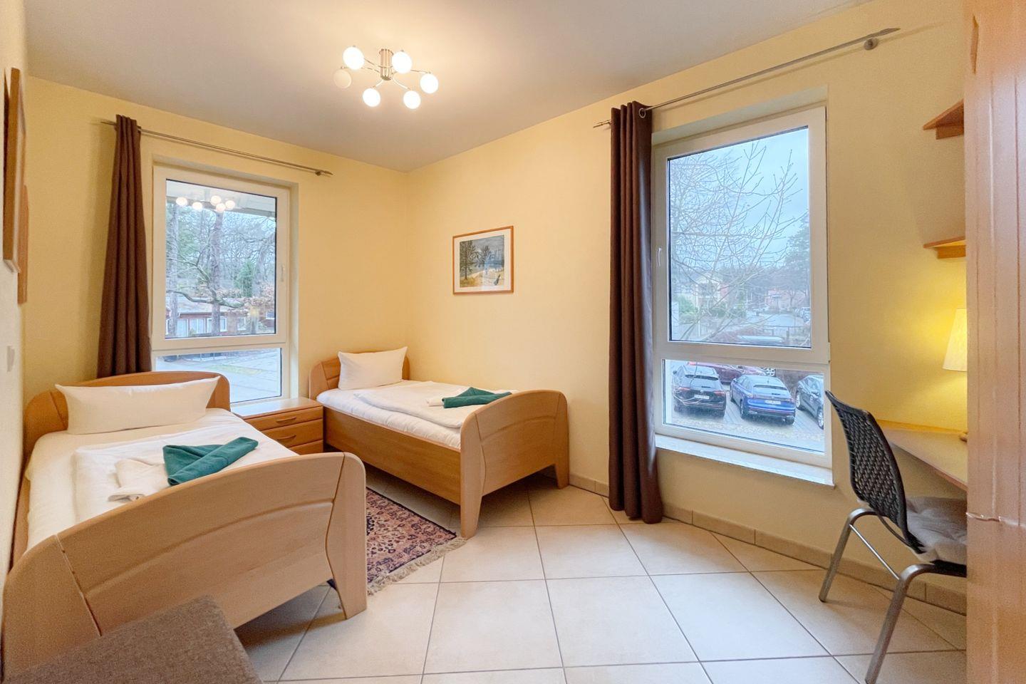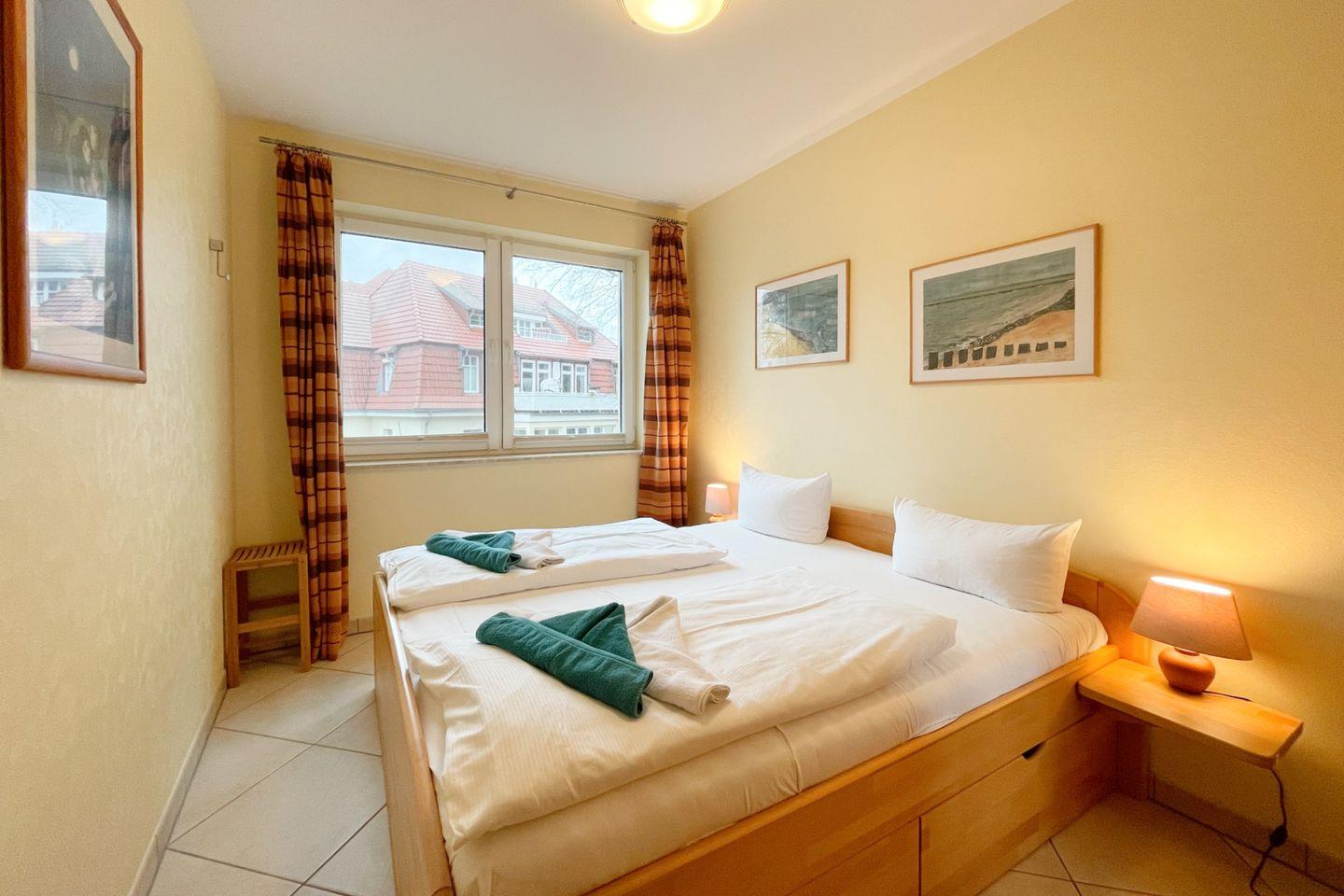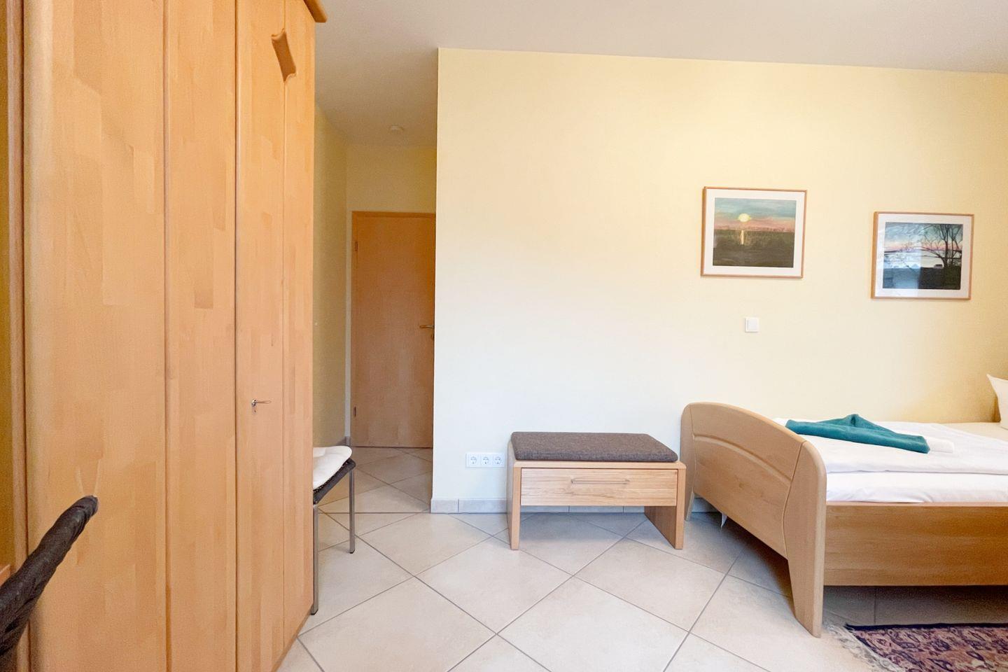 Darüber hinaus stehen Ihnen zwei komfortable Schlafzimmer zur Verfügung, die mit hochwertigen Betten und flauschiger Bettwäsche ausgestattet sind. Hier finden Sie den idealen Rückzugsort für erholsame Nächte. Das Badezimmer verfügt über eine bodengleiche Dusche und ist sorgfältig gestaltet, um allen Komfort zu bieten.