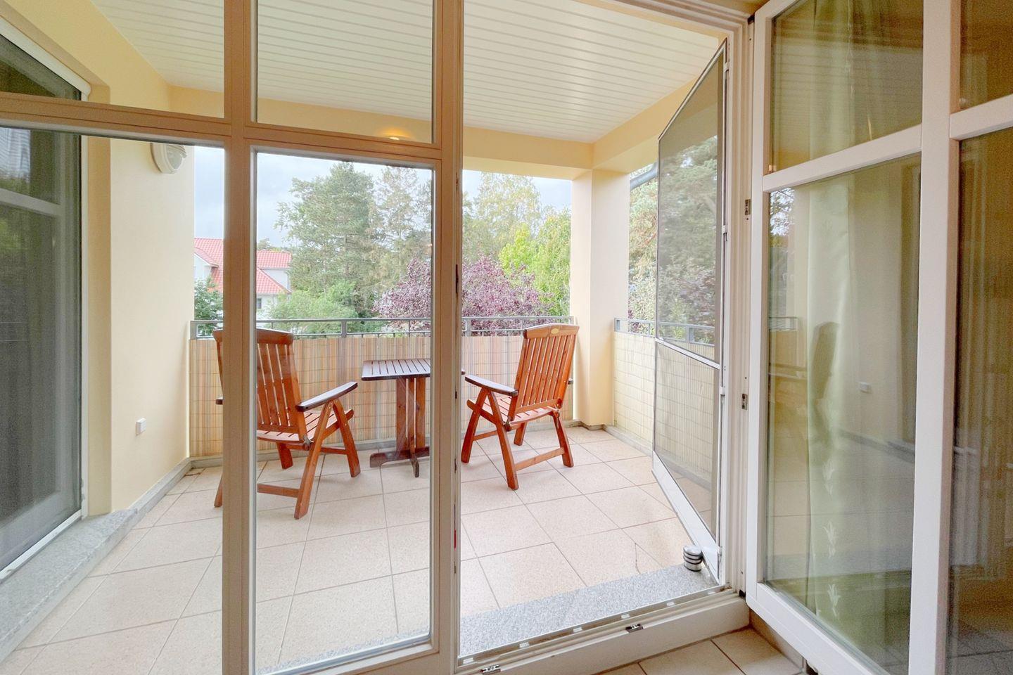 Eine erholsame Zeit im Freien verbringen Sie auf der überdachten Terrasse, die mit Gartenmöbeln ausgestattet ist. Hier können Sie den Blick in die grüne Umgebung genießen, während Sie beim Frühstück die frische Ostseeluft schnuppern oder den Abend bei einem Glas Wein ausklingen lassen. Die zentrale Lage der Unterkunft ermöglicht es Ihnen, in nur 550 Metern am Sandstrand zu sein – perfekt für erholsame Tage am Wasser, ob beim Sonnenbaden, Schwimmen oder bei einem der zahlreichen Wassersportaktivitäten.