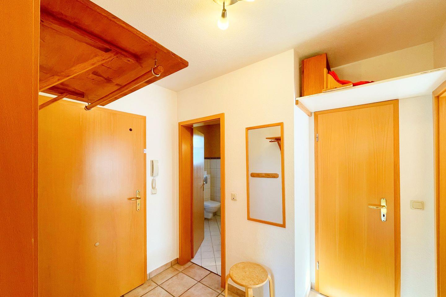 Das 3-Zimmer-Apartment im Erdgeschoss begrüßt Sie mit einer Sonnenterrasse in Südlage.Sehr ruhig und nur 3 Gehminuten von der Ostsee entfernt, gelegen. Das Wohnzimmer mit offener Küche, Essecke und bequemer Couch, bildet das Herzstück dieses Apartments. Ein Schlafzimmer ist mit einem Doppelbett, das andere ist mit einem Doppelstockbett und einem Einzelbett ausgestattet. In dem modernen Duschbad befindet sich neben dem WC ein Waschtisch mit Spiegel.
