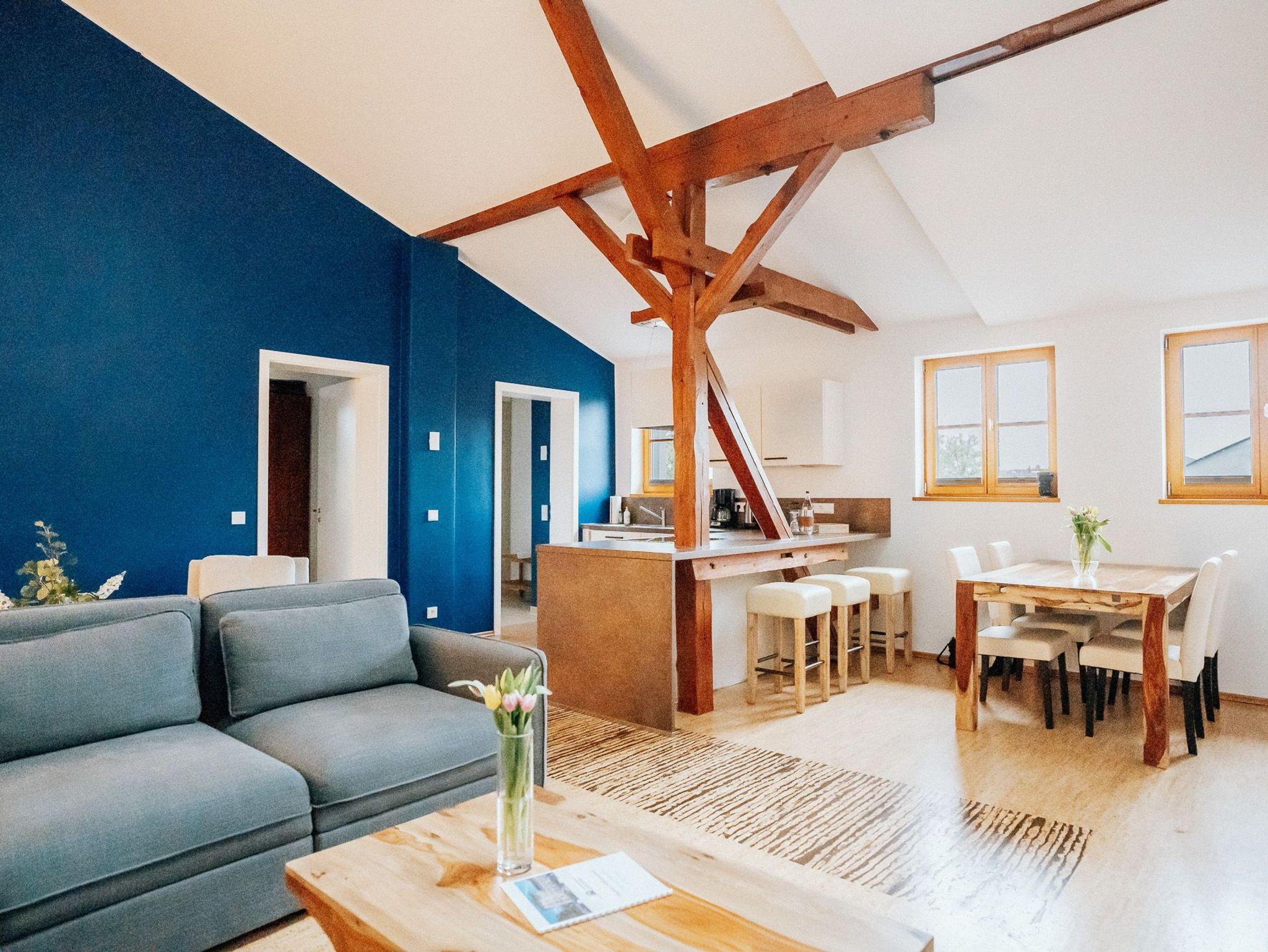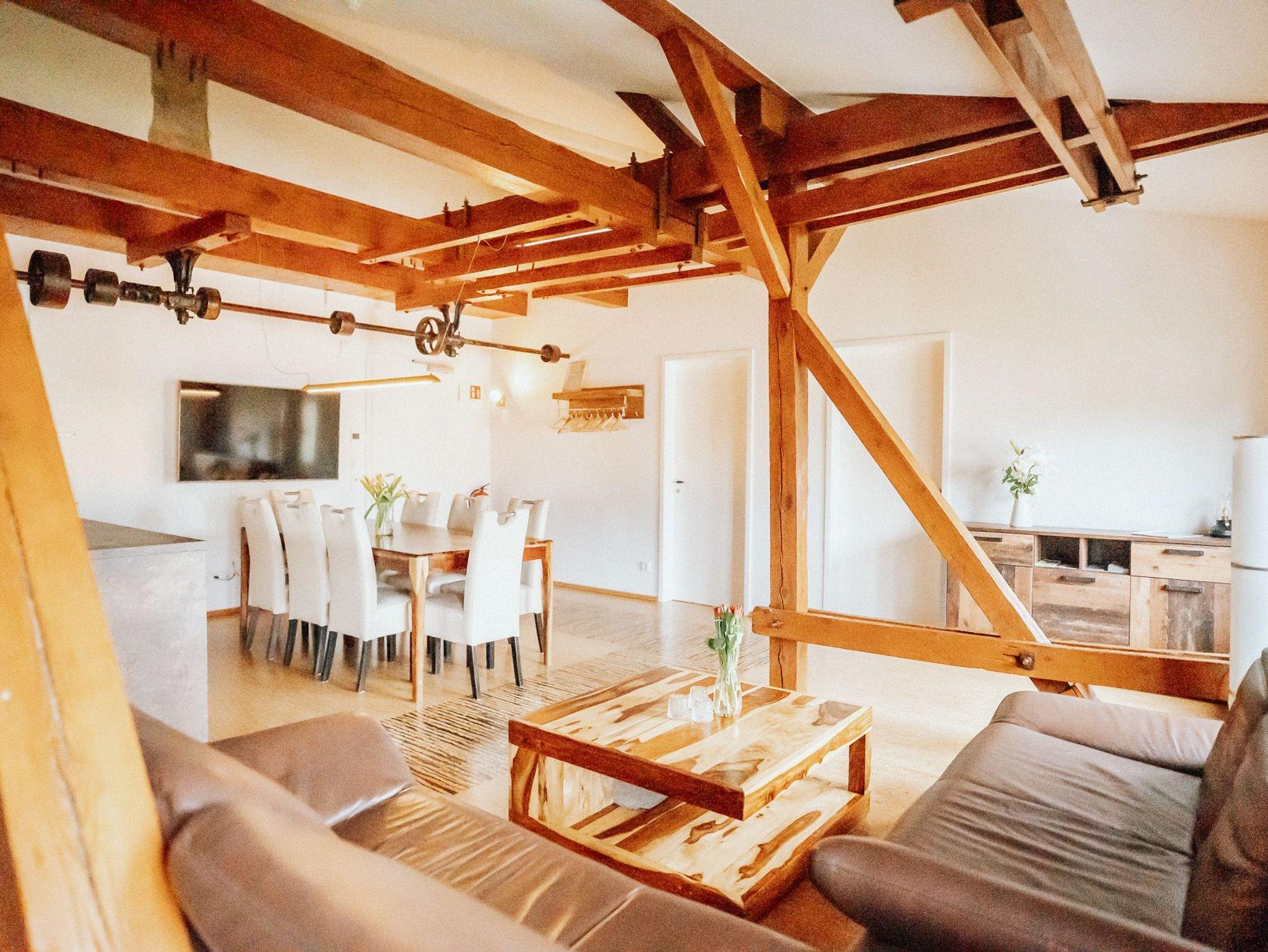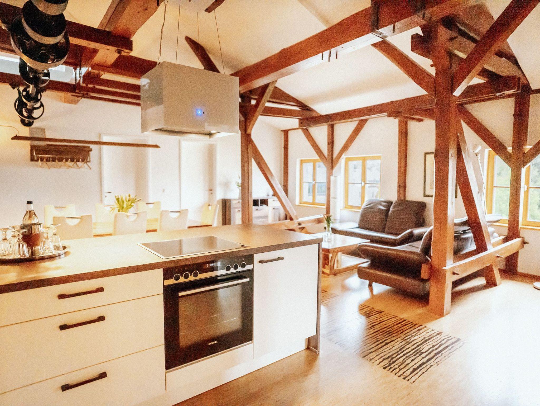 Die Wassermühle am Schloss im Zentrum von Königs Wusterhausen mit Blick auf das Schloss beherbergt zwei exklusive Ferienwohnungen. Das historische Gebäude wurde vollständig rekonstruiert und verbindet technische Baudenkmalelemente der alten Mühle mit modernen Elementen.