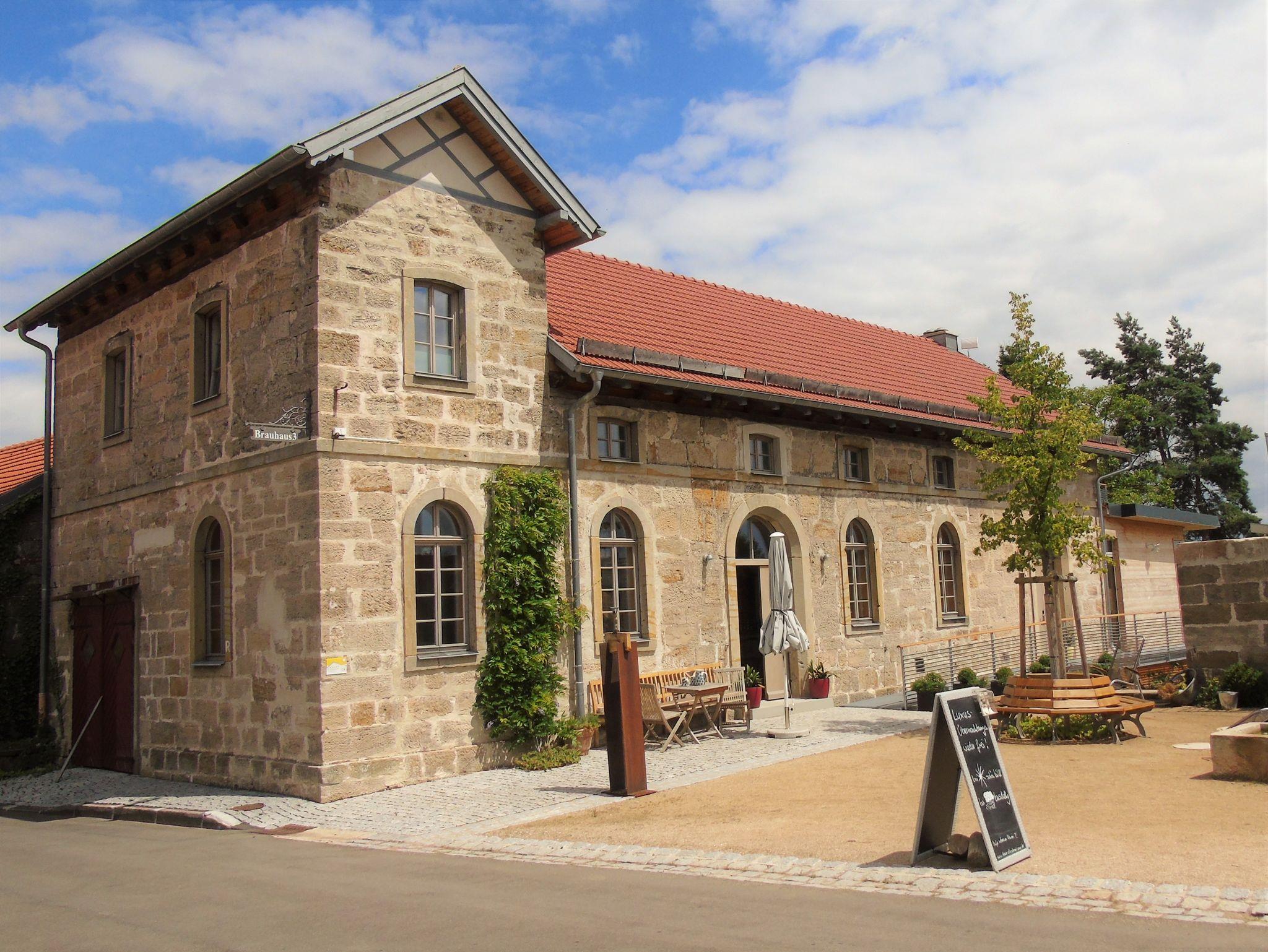 Ganz ruhig und mitten im Naturpark Haßberge, direkt am historischen Rennweg gelegenes, früheres Brauhaus unter Denkmalschutz. Die Einrichtung für das Doppelzimmer und die drei Wohnungen im Haus kommt maßgeschneidert aus der eigenen Schreinerei in natürlichen, edelsten Materialien und mit Möbeln der Marke Eichenfrau. Nachhaltigkeit, Ökologie und Made-in-Germany werden hier groß geschrieben. Wohlfühlambiente ist somit garantiert. Schöner Garten hinter dem Brauhaus mit maximaler Privatsphäre, Sauna und Schwimmteich-Biotop.