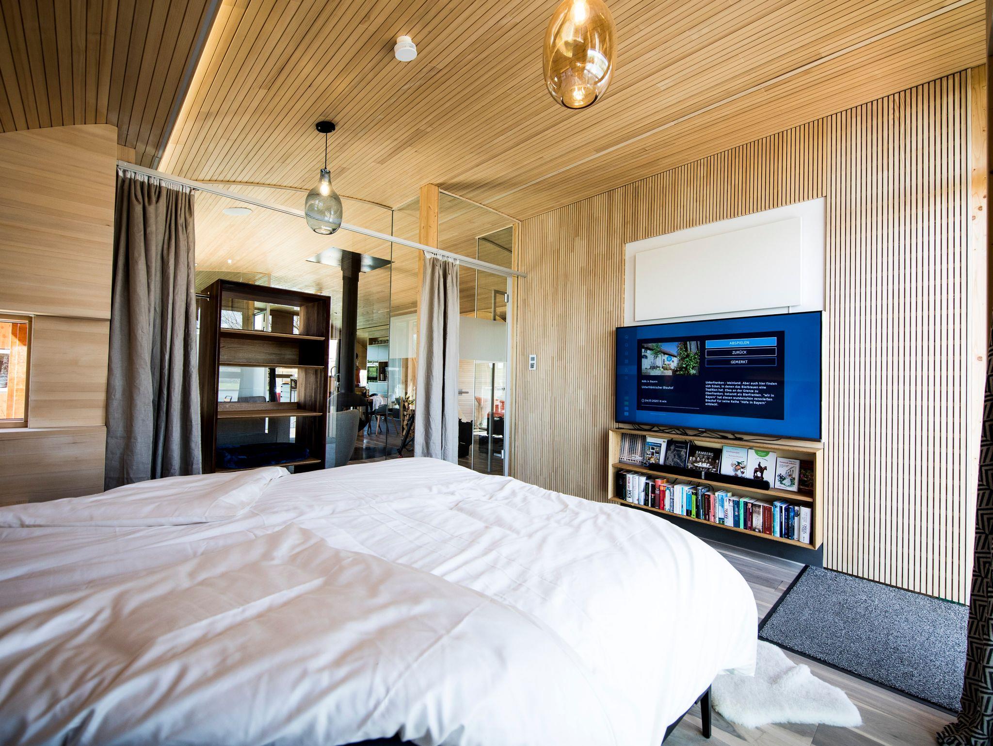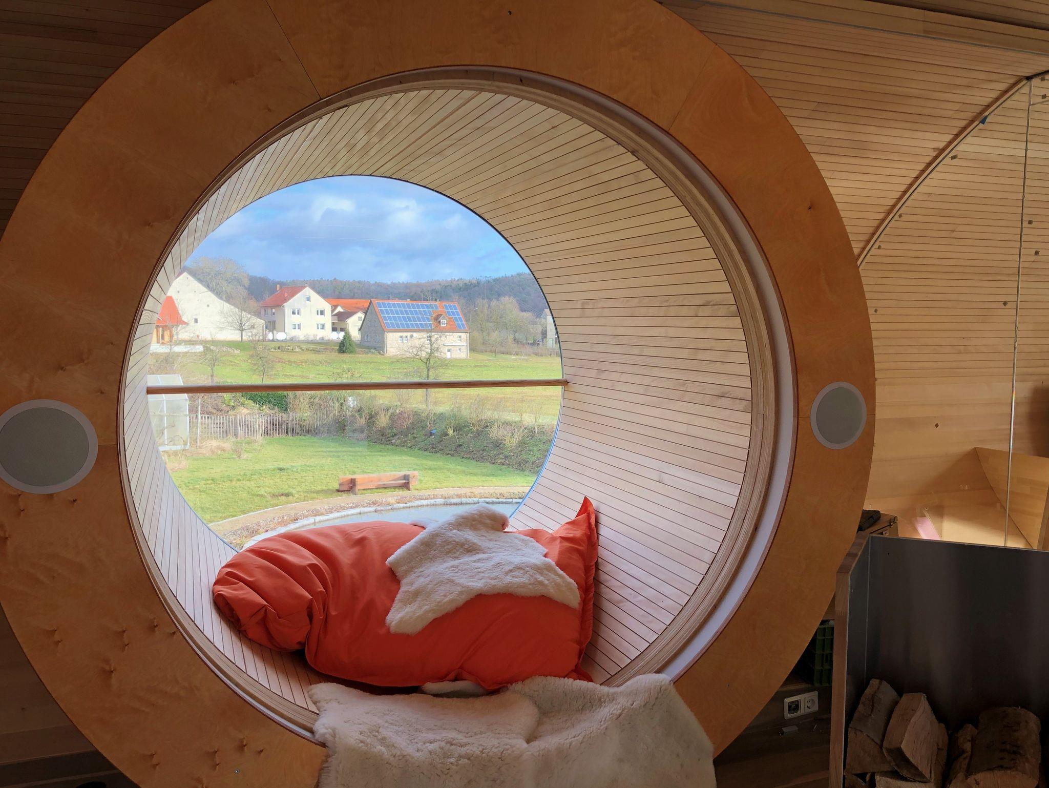 UFO47 – das Holzhaus vom Schreiner. Dieses Ungewöhnliche Ferienhaus Objekt findest du nur einmal auf der Welt, hier in den Haßbergen. Ganz ruhig gelegen mitten im Naturpark, direkt am historischen Rennweg. Das nachhaltig und ökologisch aus Holz, Glas und Metall gebaute Haus verzichtet wo immer möglich auf Kunststoffe und setzt auf nachhaltige, natürliche Materialien für ganz besonders umweltfreundliches und gesundes Wohnen. Mit vielen exklusiven Extras, die Deine Zeit im UFO47 zu etwas besonderem machen: Zum Beispiel die überlangen Boxspringbetten, eingebaut in die heimelige runde Gebäudeform, die Dich besonders geborgen fühlen lassen... Schöner Garten direkt angrenzend mit Nutzungsmöglichkeit des Schwimmteich-Biotops.