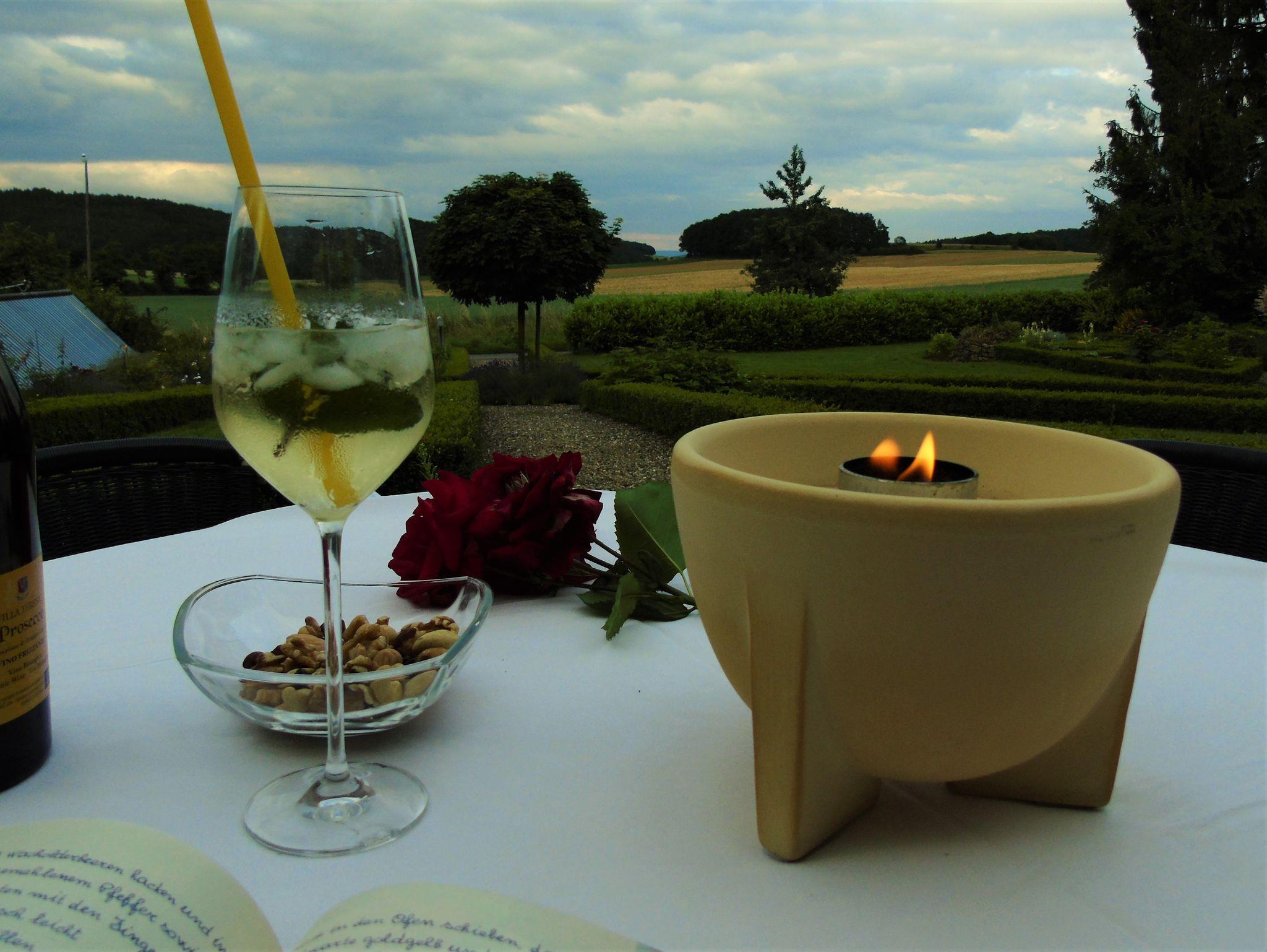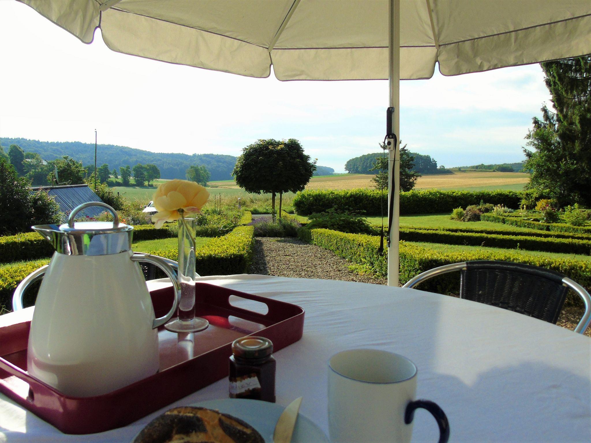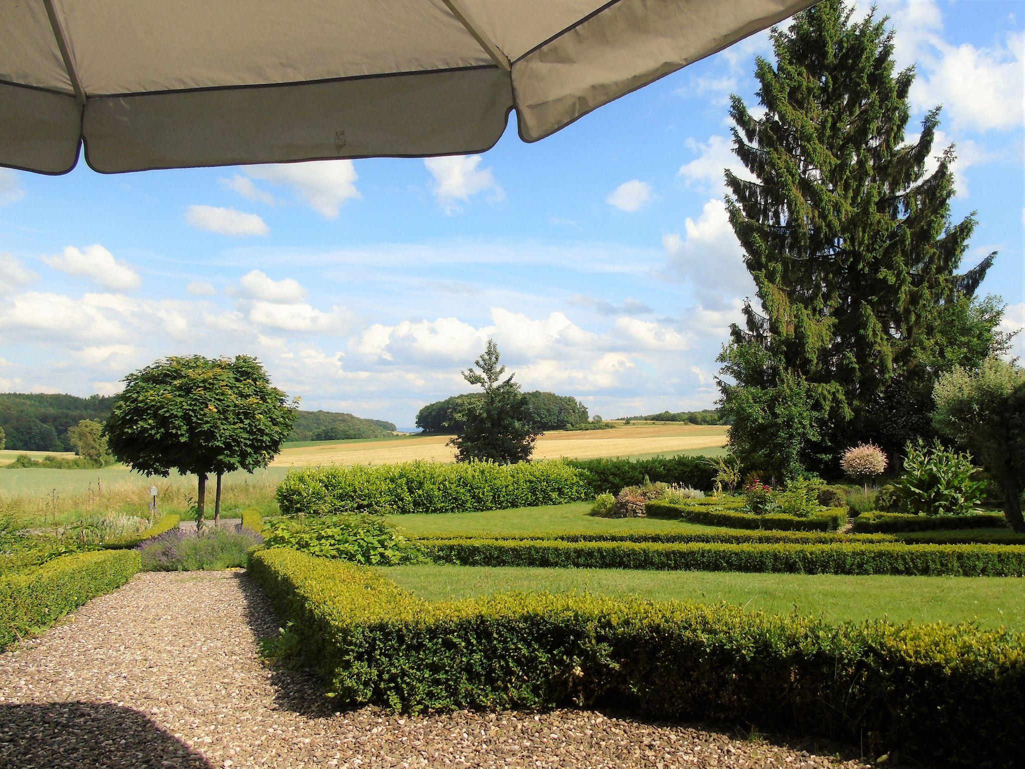 - Terrasse mit Weitsicht ins Grüne, Naschgarten und Ziergarten direkt vor der Haustüre. Dazu Terrassenmöbel und extra rückenfreundliche Profi-Relaxliegen