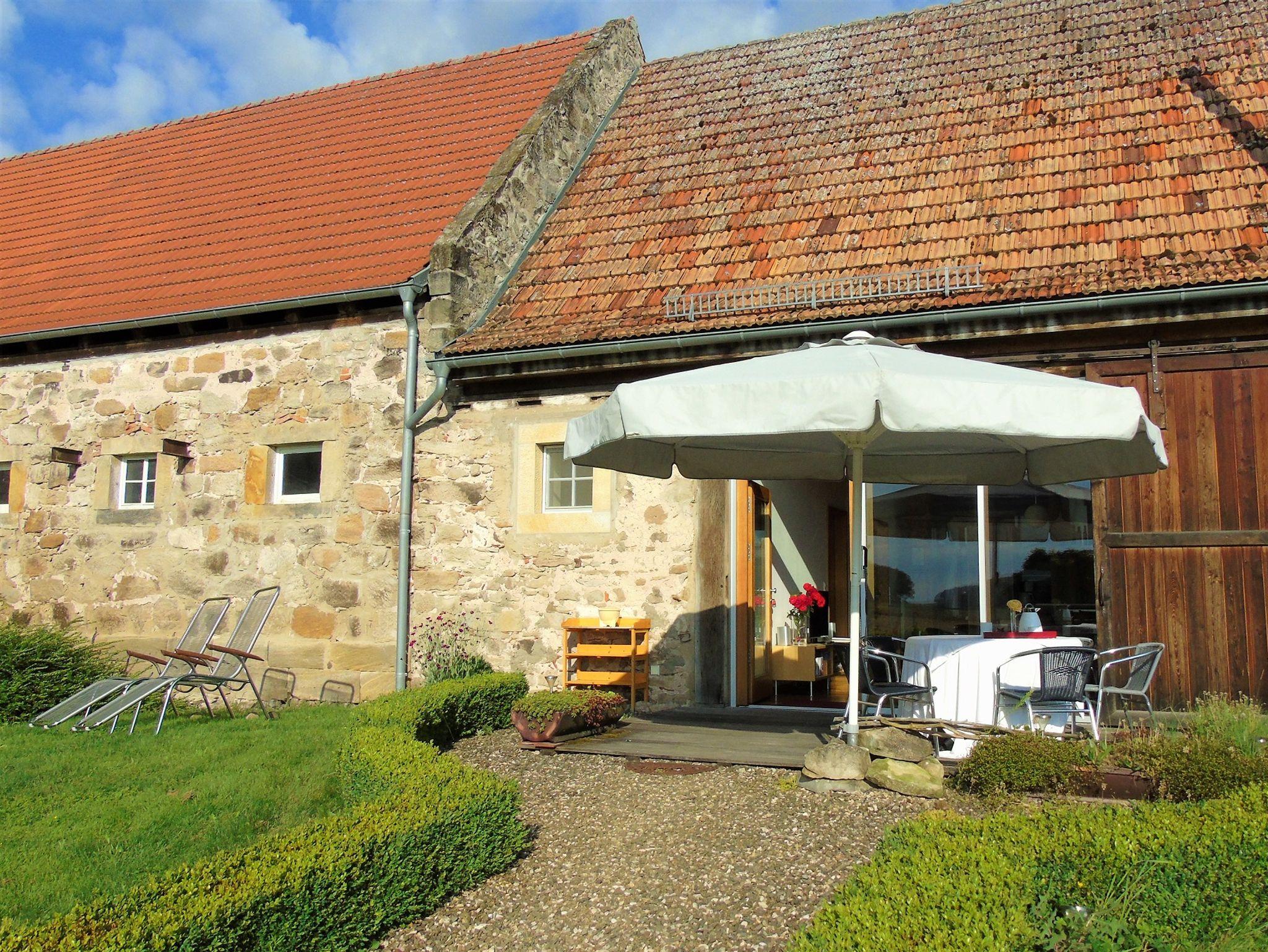 Mitten im Naturpark Haßberge, im 90-Seelen-Ort Köslau, bewohnst Du hier die restaurierte ehemalige Scheune eines fränkischen Bauernhofes mit direktem Blick in den eigenen Naschgarten und in die unberührte Landschaft. Hinter einem uralten, hölzernen Schiebetor erwartet Dich ein völlig überraschendes Innenleben: Bodentiefe Glasfront, moderner Komfort und zeitloses Ambiente in historischen Mauern. Komfortabel, funktionell und mit edlen Materialien von Deinen Gastgebern selbst, einer Schreinerfamilie, persönlich entworfen und maßgeschreinert eingepasst.