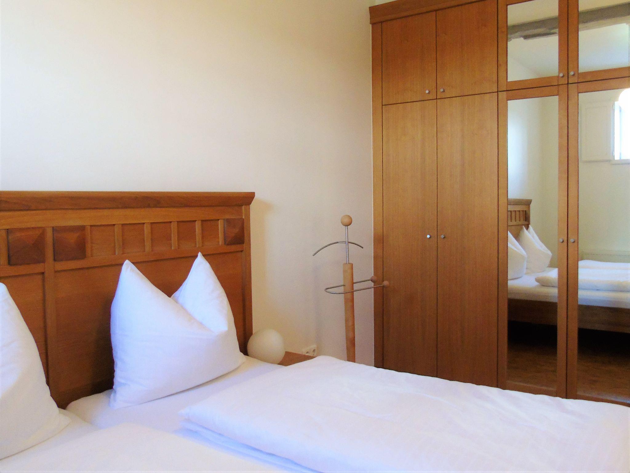 - Zwei Schlafzimmer, eines mit Doppelbett 200x180 cm, direkt daneben das zweite Schlafzimmer mit Bett 200x140 cm.