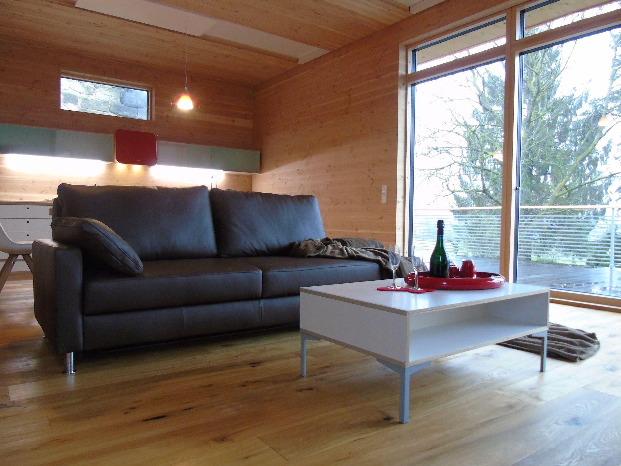 Kaminofen für kuschelige Abende. Eichenfrau-Marken-Küche und Designer-Essbereich für stilvolles Genießen. Echtleder-Schlafsofa, Beamer, Playstation und großer TV-Flatscreen für gemütliche Film- oder Spiele-Abende. Extragroßes Bad mit begehbarer Dusche. Besonders komfortables Naturholz-Bett Marke Eichenfrau in Überlänge 180x210 cm im Schlafzimmer.