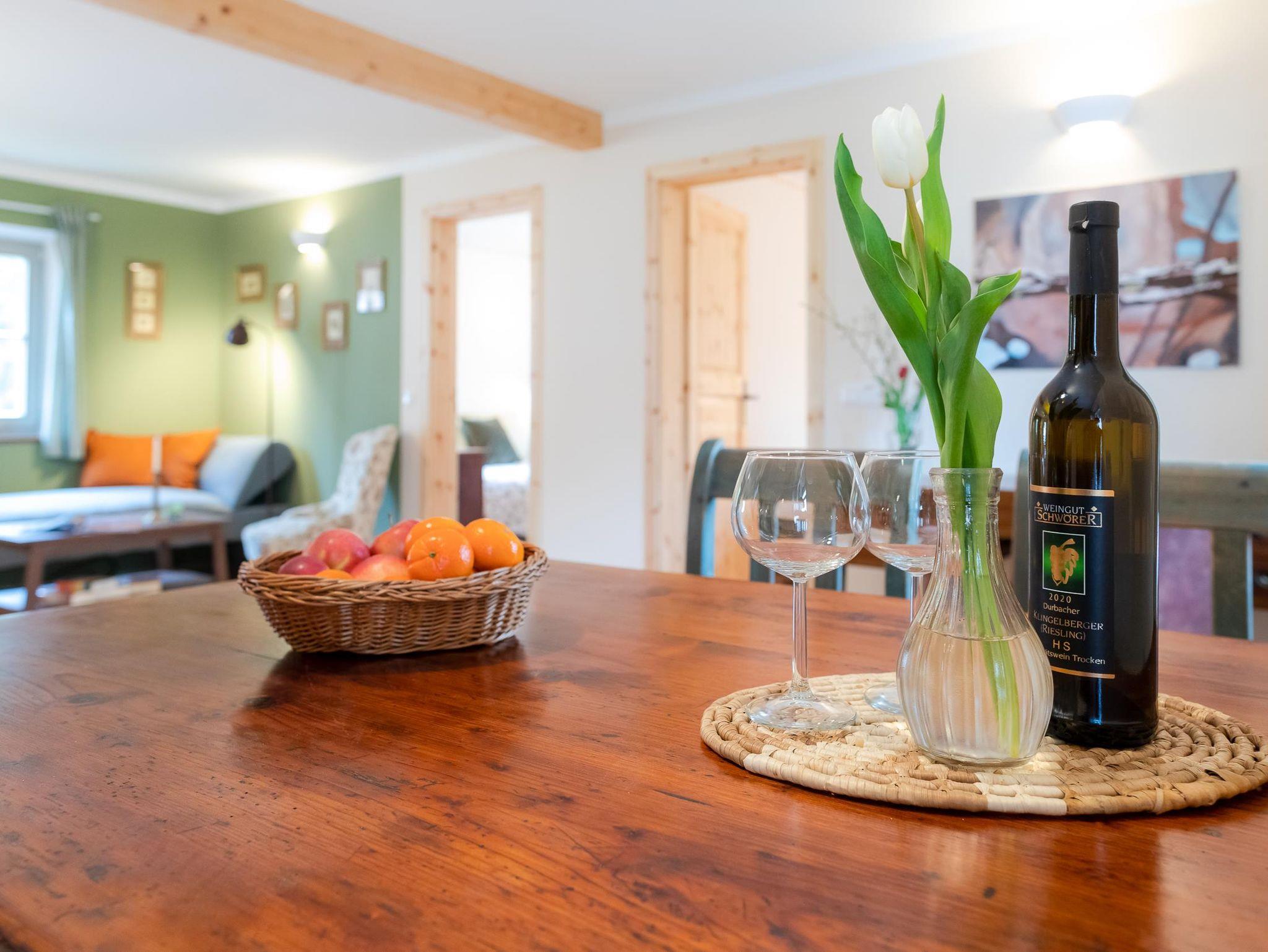 Das Schwalbennest ist eine große Wohnung für 4 Personen, die großzügig eingerichtet ist. Die Außenwände sind mit Lehm verputzt, Holzdielen und andere natürliche Materialien geben der Wohnung einen angenehmen und einladenden Charakter.