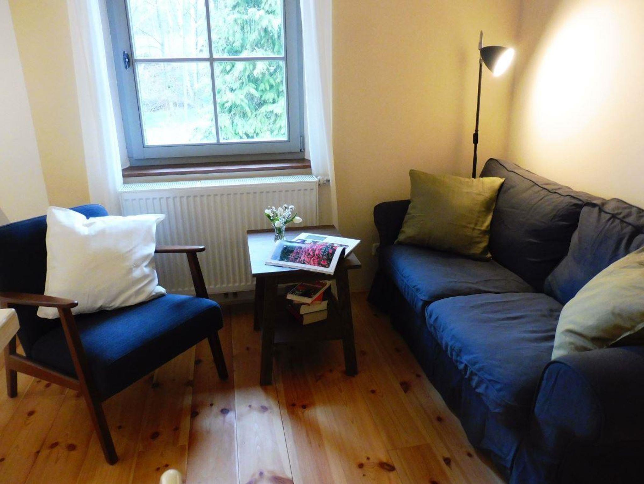 Das Spatzennest ist eine ruhige Wohnung für 2 Personen, die zur Entspannung einlädt. Die Fachwerkwände sind mit Lehm verputzt, Holz und andere natürliche Materialien sorgen für ein angenehmes Raumklima und eine gemütliche Atmosphäre.