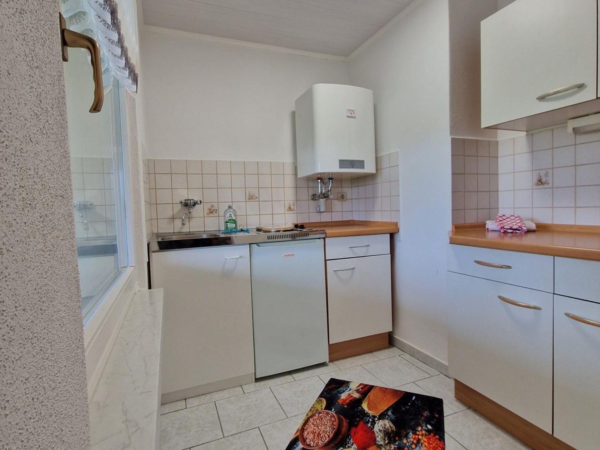 Das Ferienhaus verfügt über einen Wohnraum mit TV, einer kleinen Küche mit Kühlschrank, Kaffeemaschine, Wasserkocher, Kochplatte mit 2 Feldern und Toaster, einem separatem Schlafraum, sowie Dusche und WC.