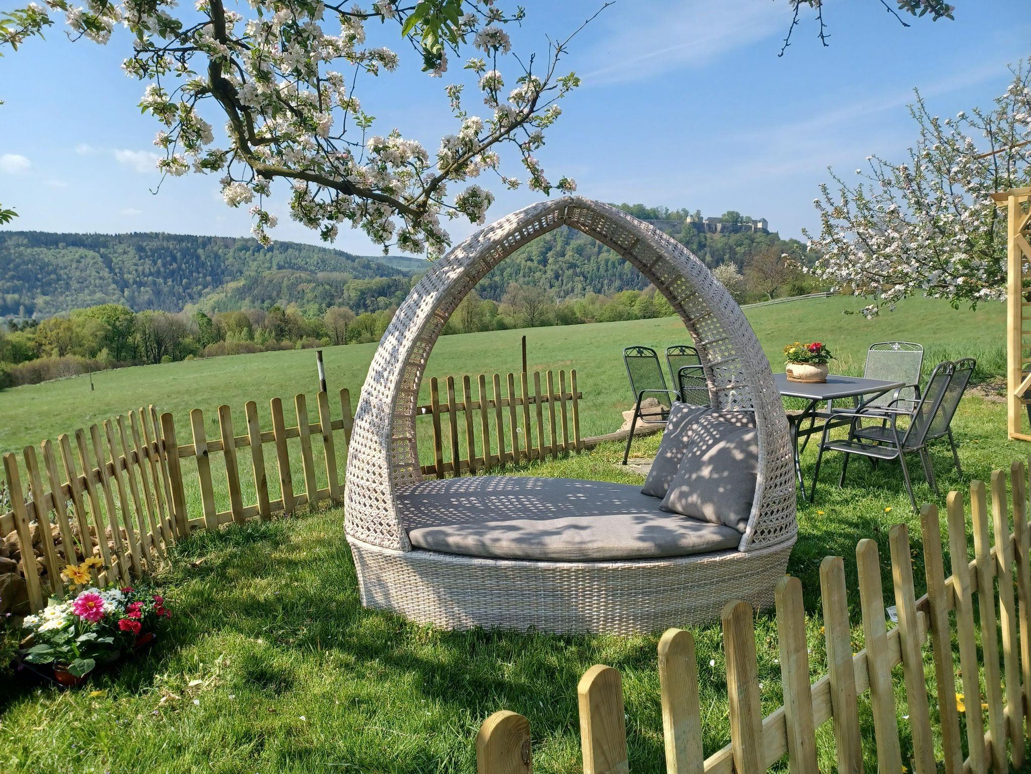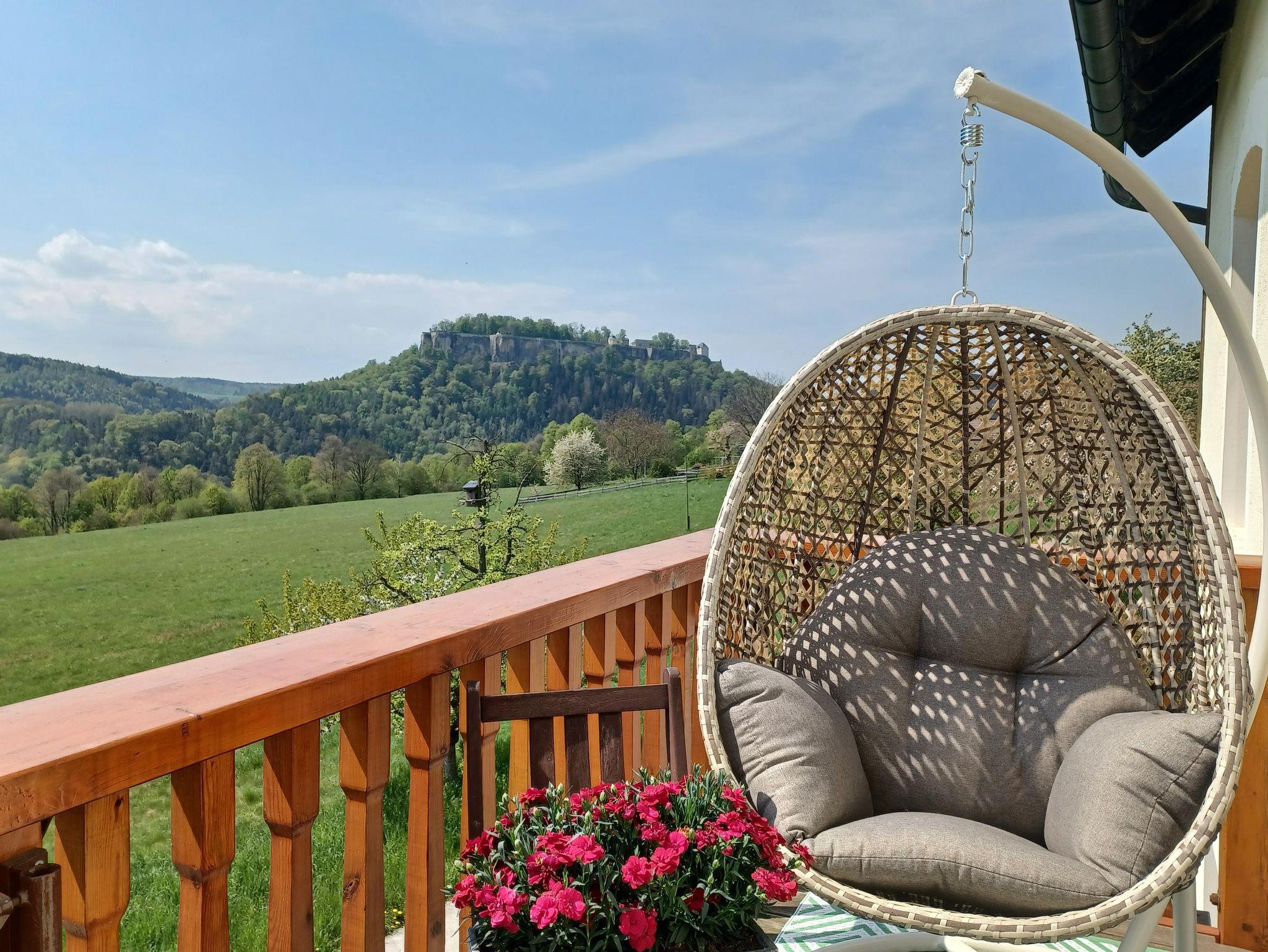 Der Ferienhof Schönfelder liegt mitten in einer Elbschleife, auf der Höhe, am Fuße des Liliensteins. Der Panoramablick von unseren Terrassen über das Elbtal auf die Festung Königstein, bietet Ihnen ein unvergessliches Erlebnis. Hier ist ein idealer Ausgangspunkt für Ihre Wanderungen.