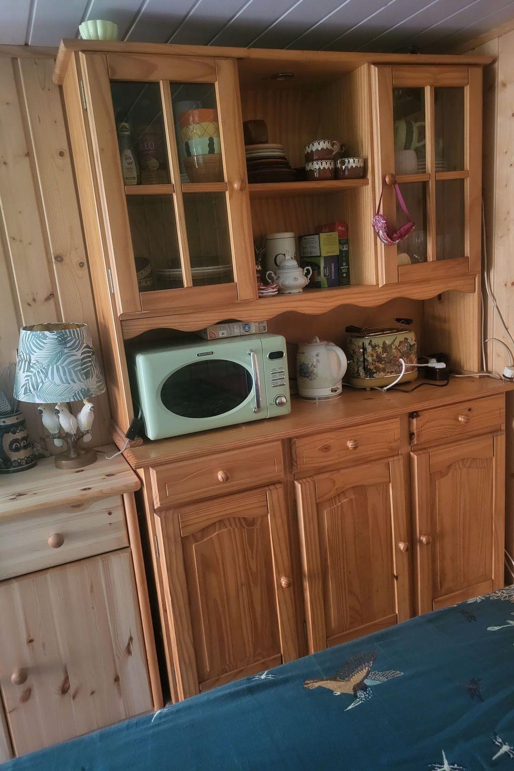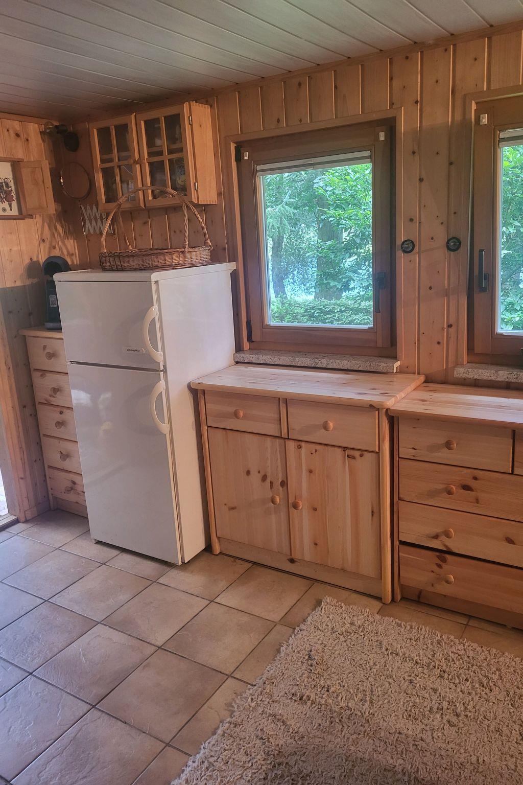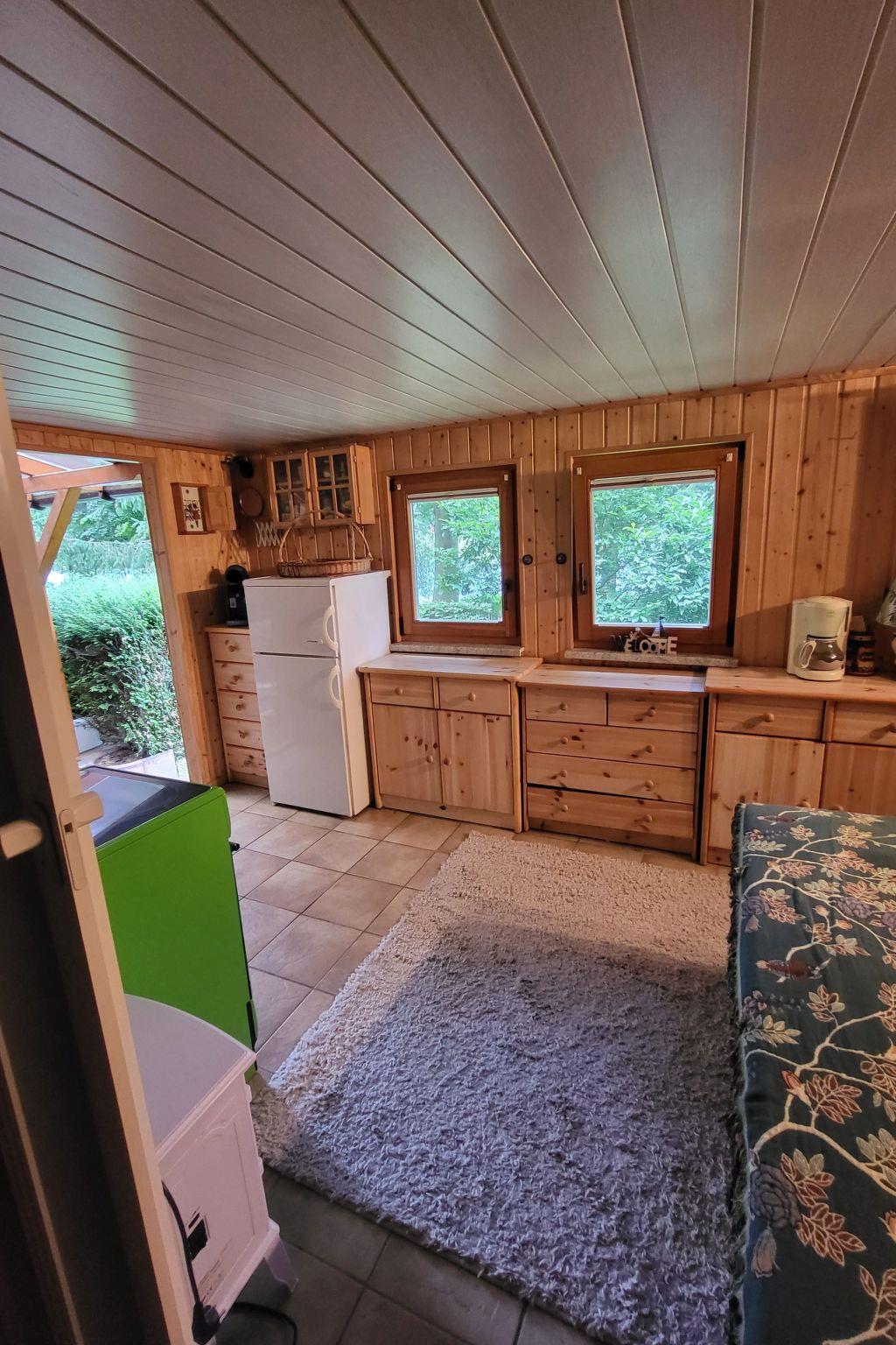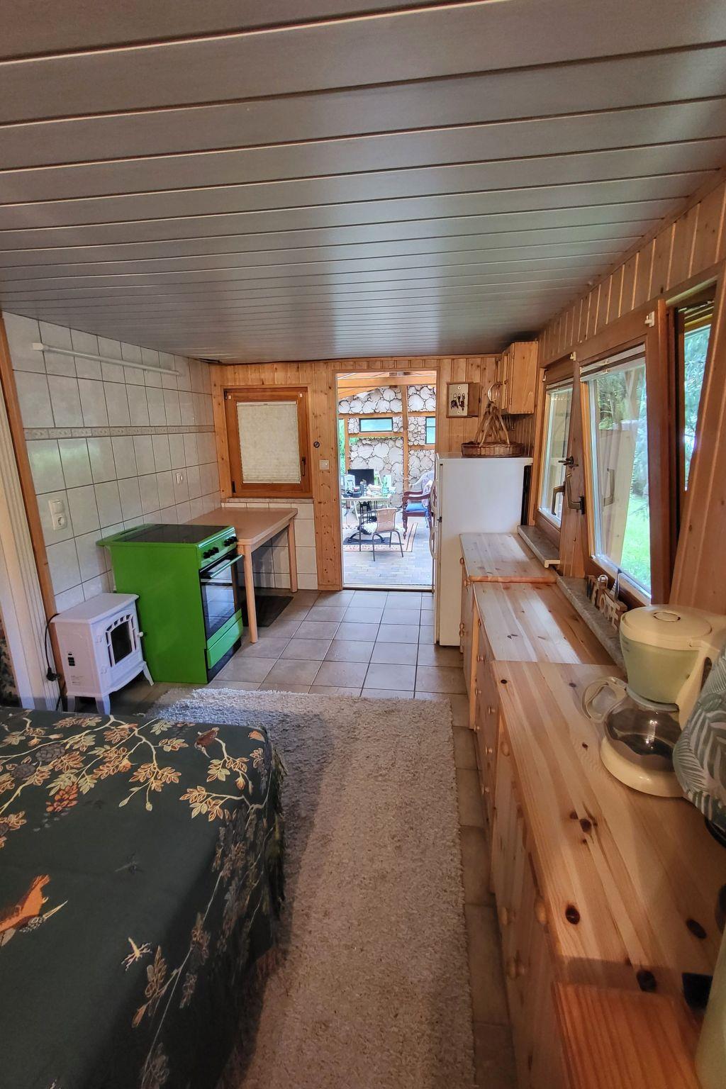 Inside the cottage, you will find a cosy ambience with an efficiently designed living space. The cottage can accommodate up to four people with a comfortable double bed in the living area and two single beds, ideal for families or small groups. Facilities also include a fully equipped kitchenette with filter coffee machine, kettle and dishwasher, as well as a bathroom with shower. Despite its compact size, nothing is missing for a carefree stay.