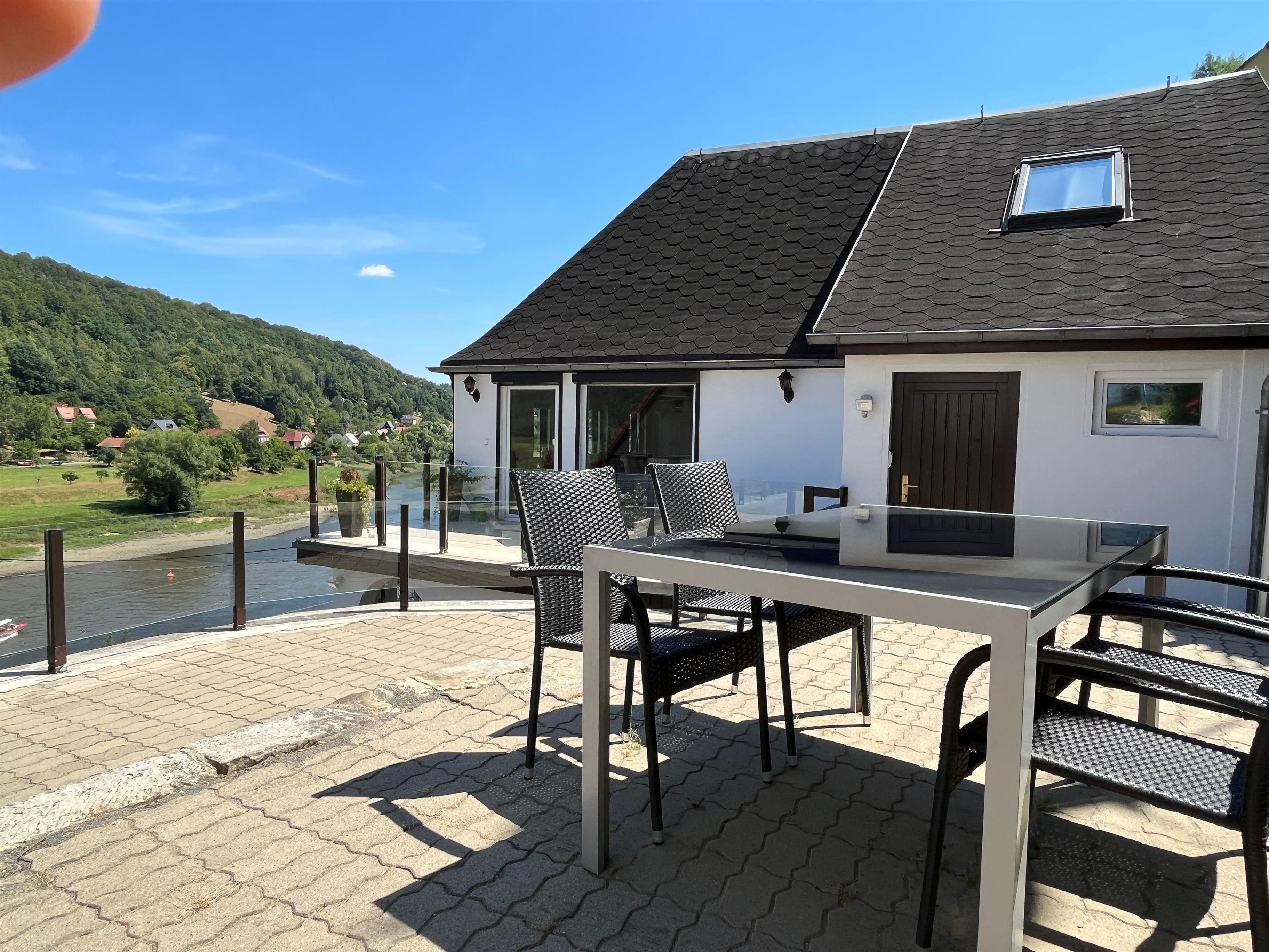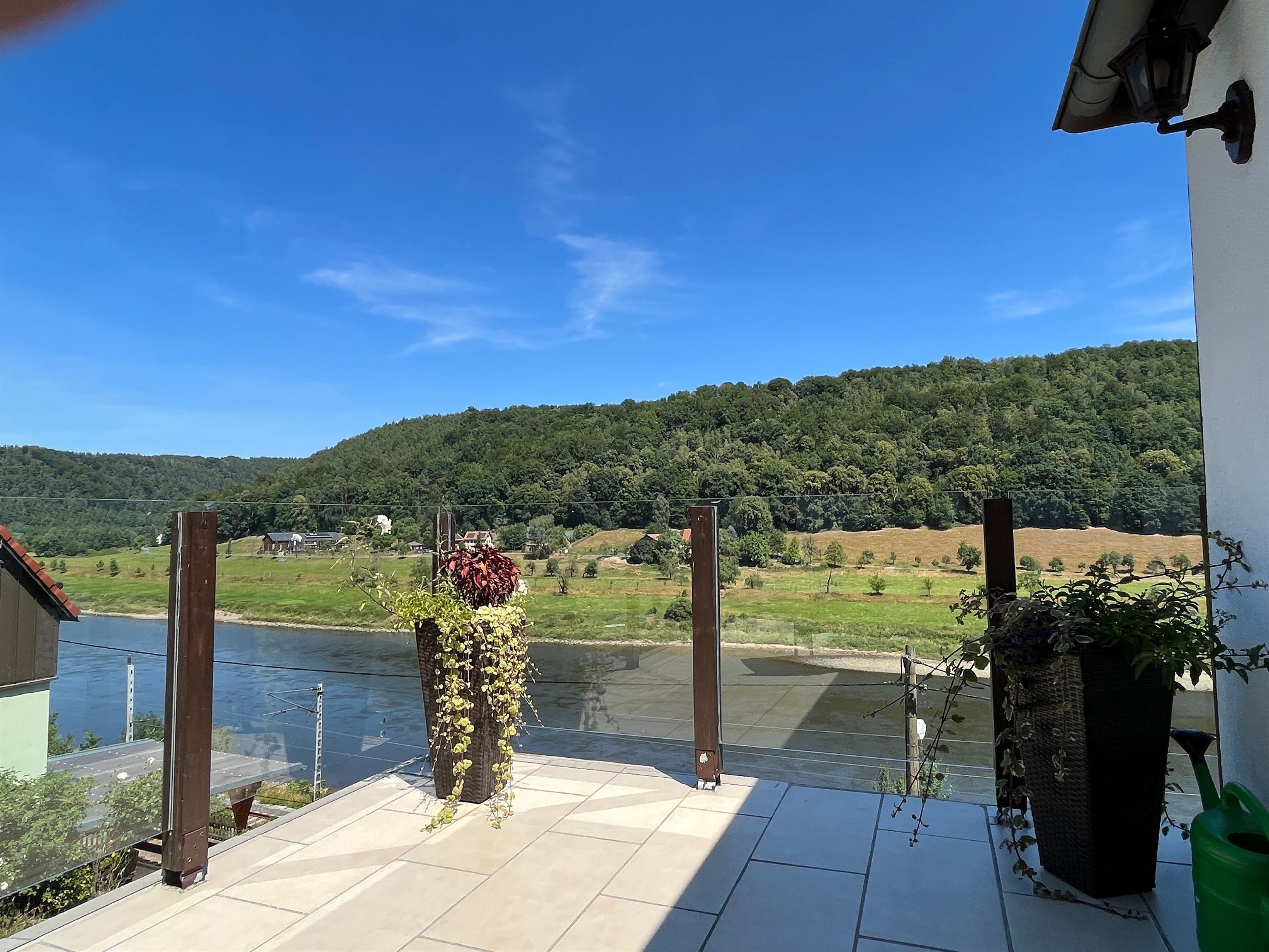 Den Blick über das Elbtal können sie von der großen Terrasse aus in der Sitzgruppe genießen oder beim Grillen von der zusätzlichen großen Terrasse.