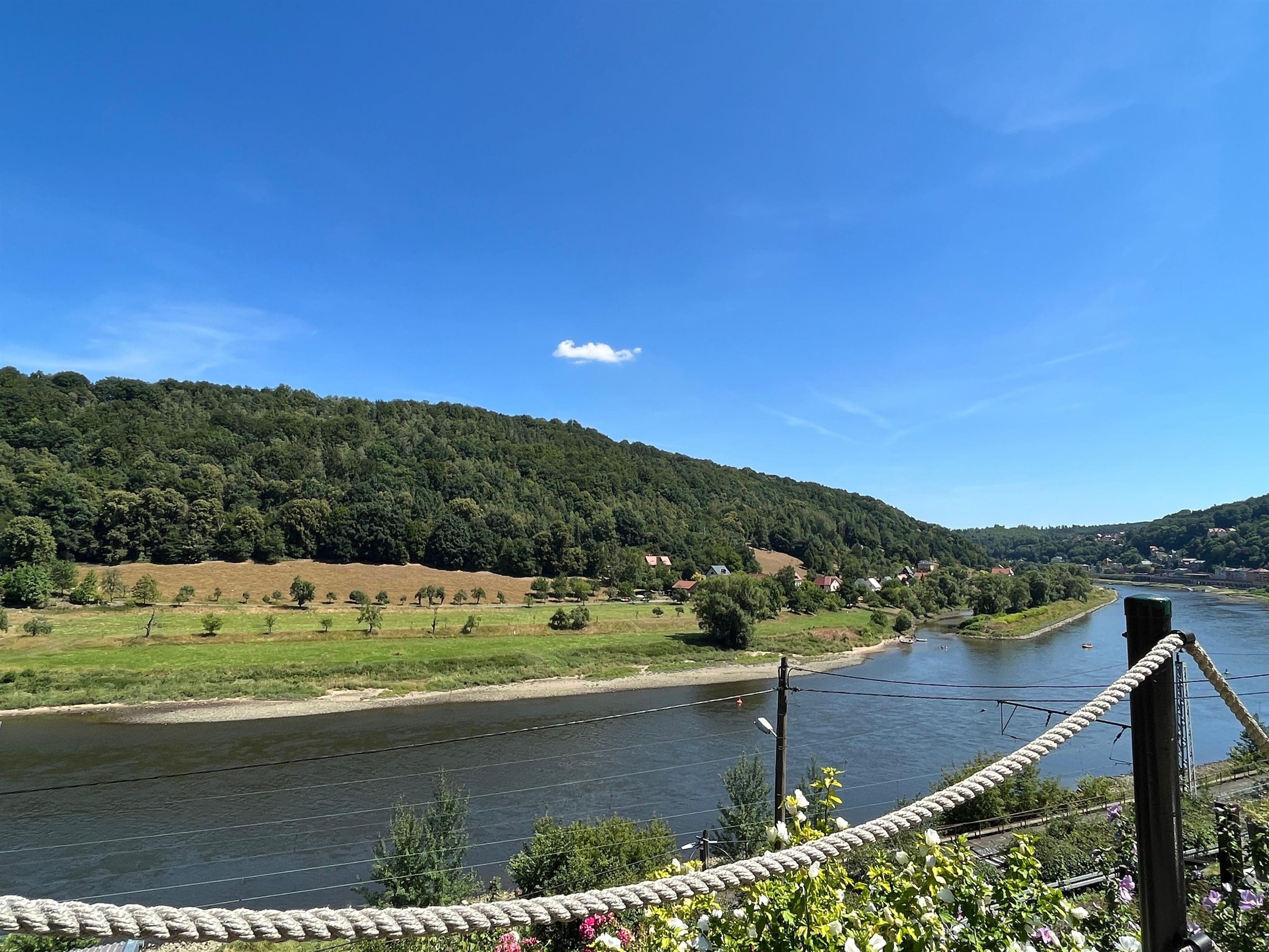 Aussicht entlang des Elbverlaufes zu sehen.