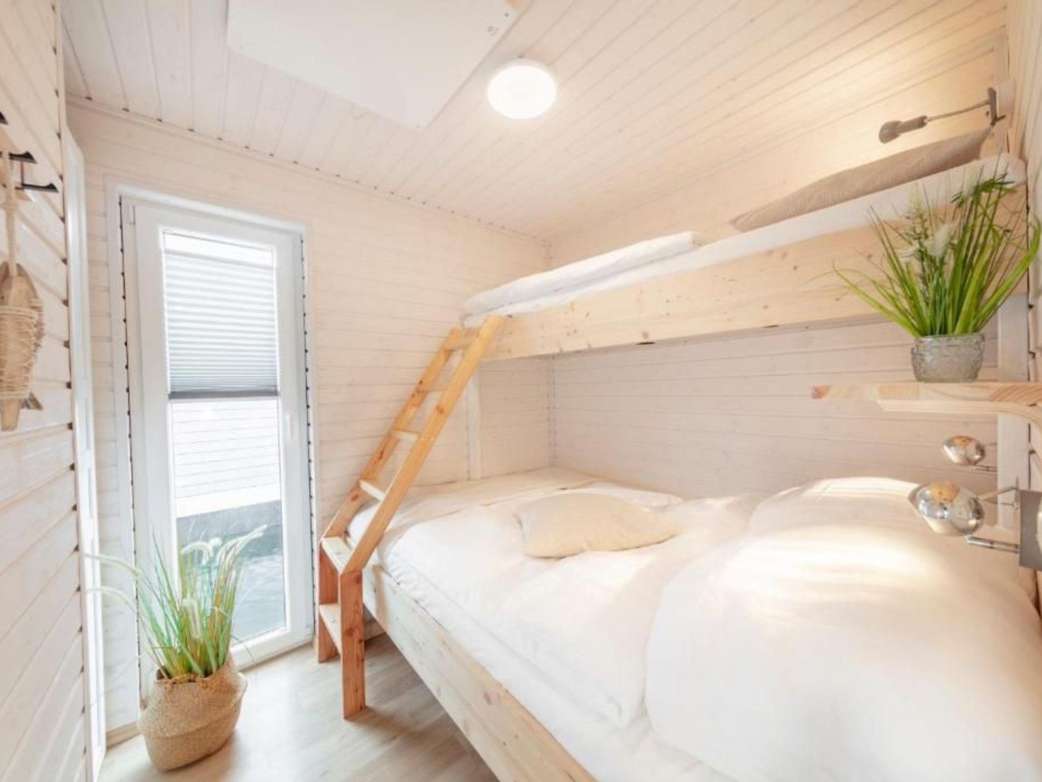 Die gut ausgestattete Küche mit allen wichtigen Küchengeräten, Kochfeld und Backofen-Mikrowelle lässt keine Wünsche offen, so dass Sie sich schnell wieder auf die wesentlichen Dinge des Urlaubes fokussieren können. Im Inneren des Hausbootes finden Sie neben dem Wohnraum zwei kuschelige Schlafzimmer, sowie ein modernes Duschbad und ein separates WC. Der erste Schlafraum verfügt über ein 160 cm breites Doppelbett, der zweite über ein 140 cm breites Etagen-Doppelbett mit einem zusätzlichen Schlafplatz oben. Genügend Stauraum finden Sie in den Schränken in den jeweiligen Räumen.