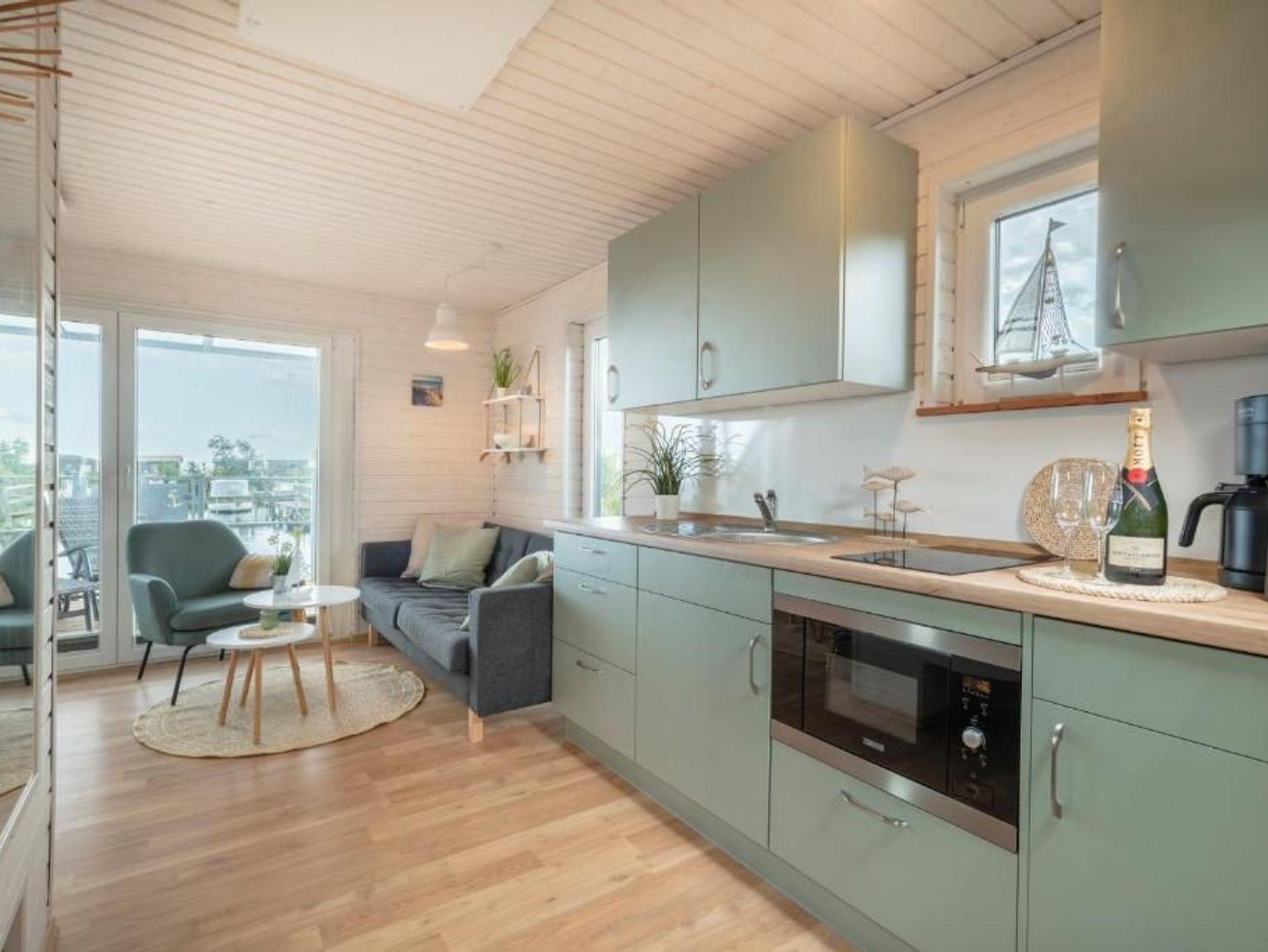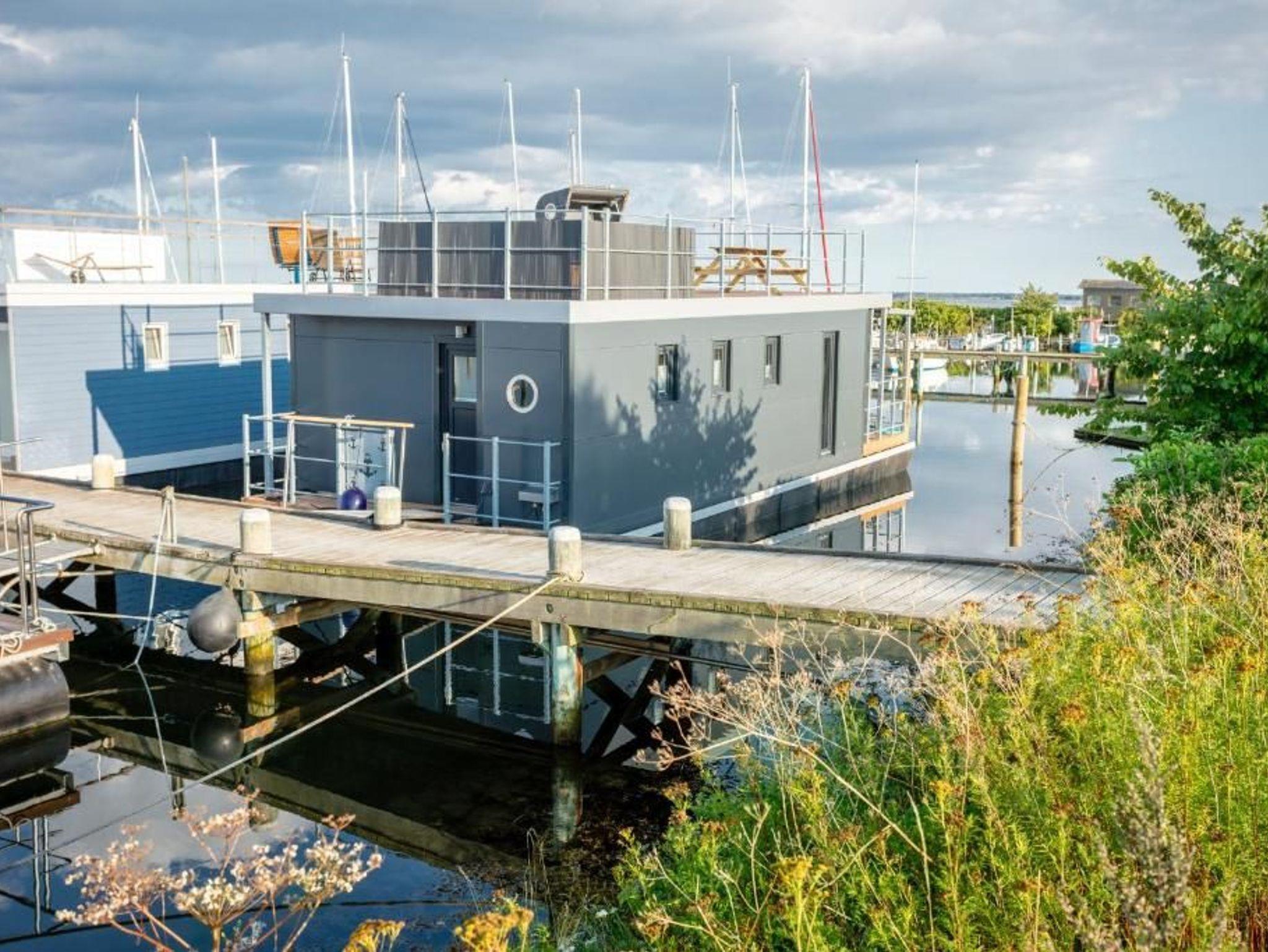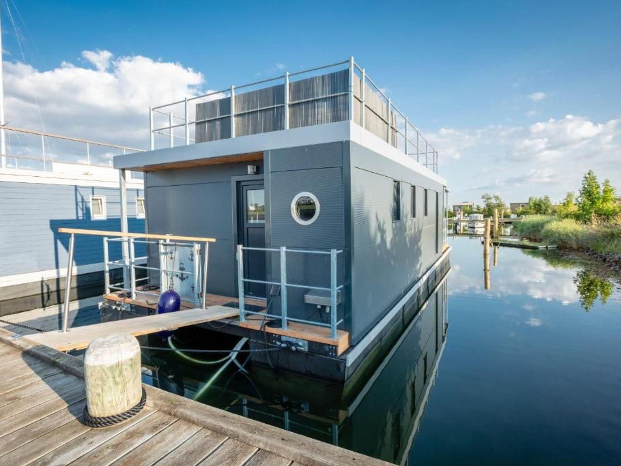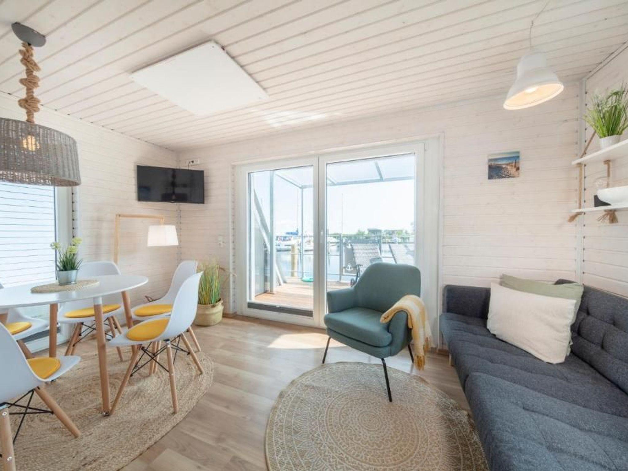 Dieses geräumige festliegende Hausboot bietet Ihnen den ganzen Komfort einer modernen und hochwertigen Ferienwohnung mit großzügiger Sonnen- und Dachterrasse. Im gemütlichen lichtdurchfluteten Wohnraum mit offener Küche lässt es sich entspannt auf der Couch und im Sessel verweilen oder Sie kommen am großzügigen Tisch zu einem leckeren Essen oder Spieleabend zusammen.