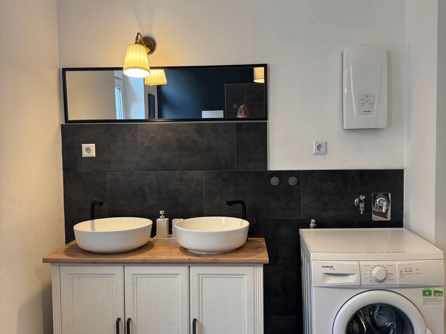 Im Appartement befinden sich zwei großzügige Badezimmer, die sowohl mit einer Badewanne als auch mit einer bodengleichen Dusche ausgestattet sind. Spiegel, Haartrockner, Fenster und weitere praktische Details wie Handtücher und Bettwäsche sind ebenfalls vorhanden. Sämtliche Wohnräume werden durch eine moderne Zentralheizung beheizt.