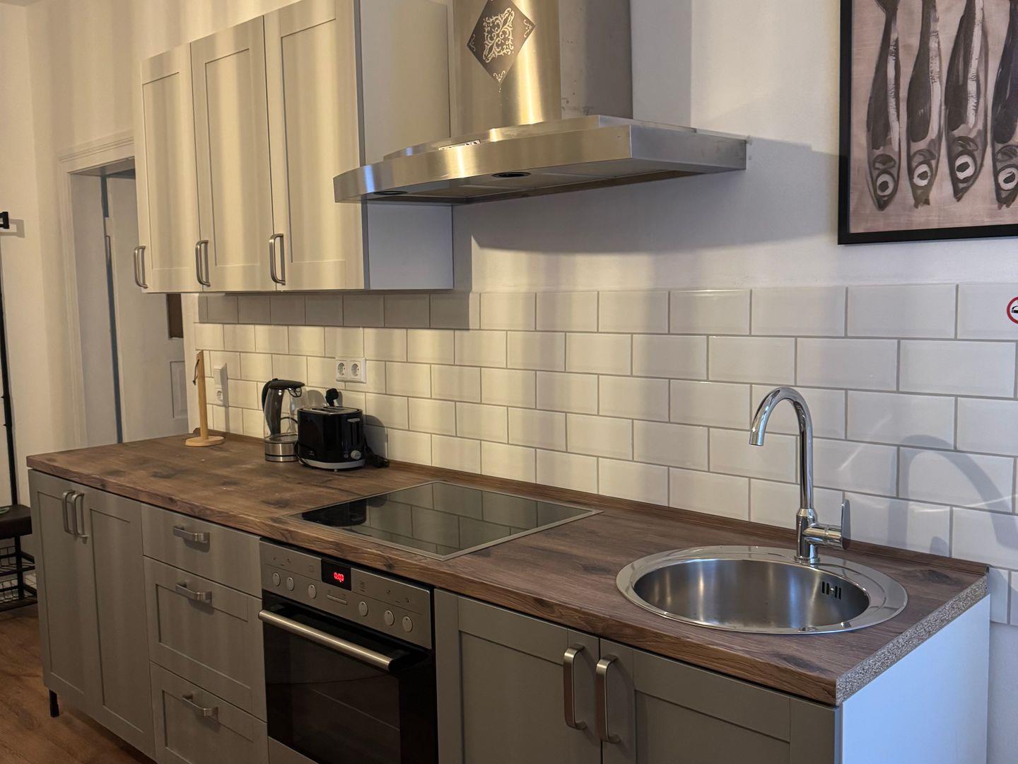 Die moderne, geschlossene Küche ist mit allem ausgestattet, was Ihren Aufenthalt angenehm gestaltet: ein Herd, ein Backofen mit Elektroanschluss, sowie ein großer Kühlschrank stehen zur Verfügung. Darüber hinaus sind Wasserkocher, Kaffeemaschine, Toaster, ausreichend Geschirr, Besteck und Küchenutensilien vorhanden. Für längere Aufenthalte oder Familien mit kleinen Kindern wird auch eine Waschmaschine zur Eigennutzung bereitgestellt, ergänzt durch einen Wäscheständer.
