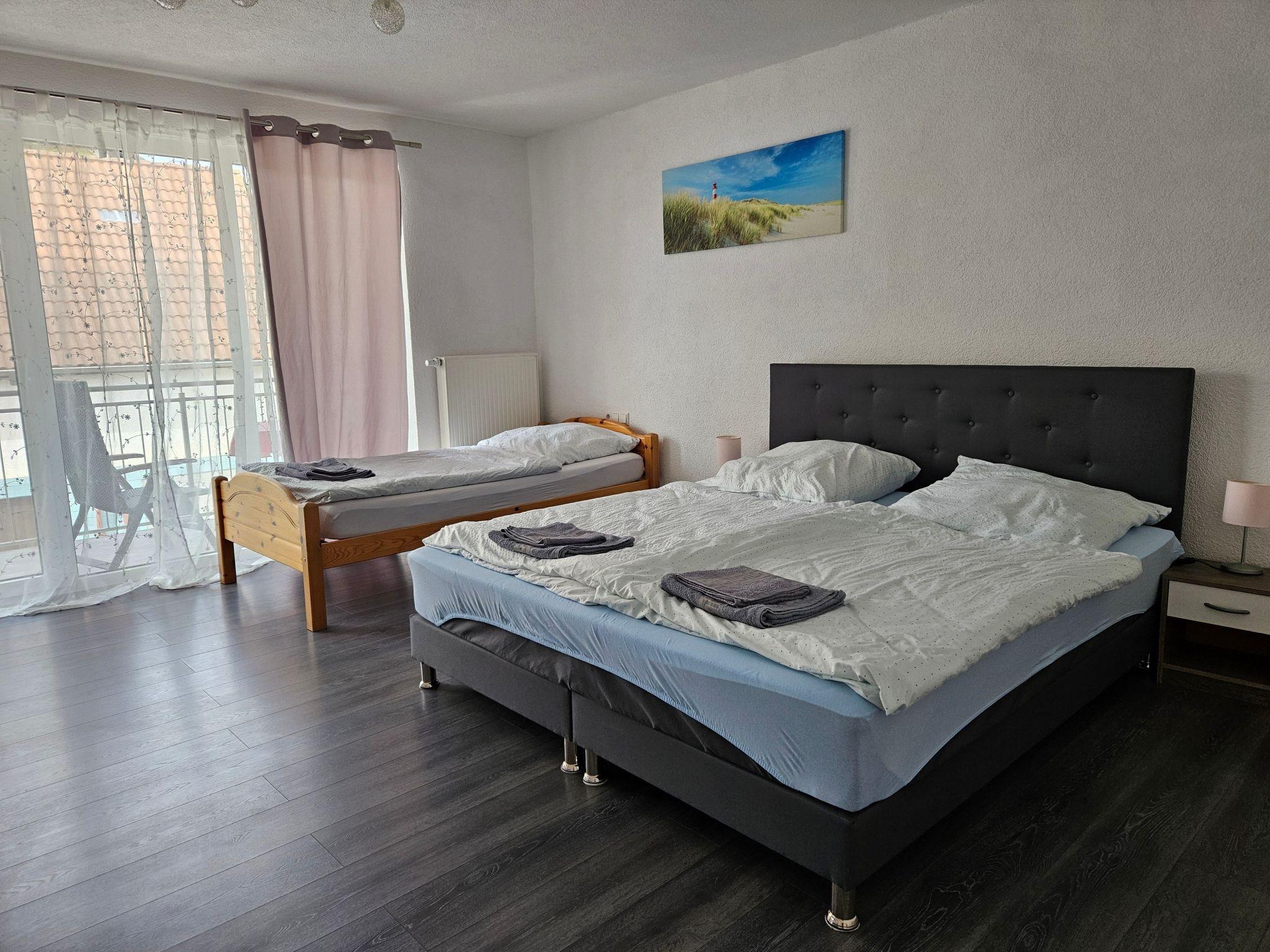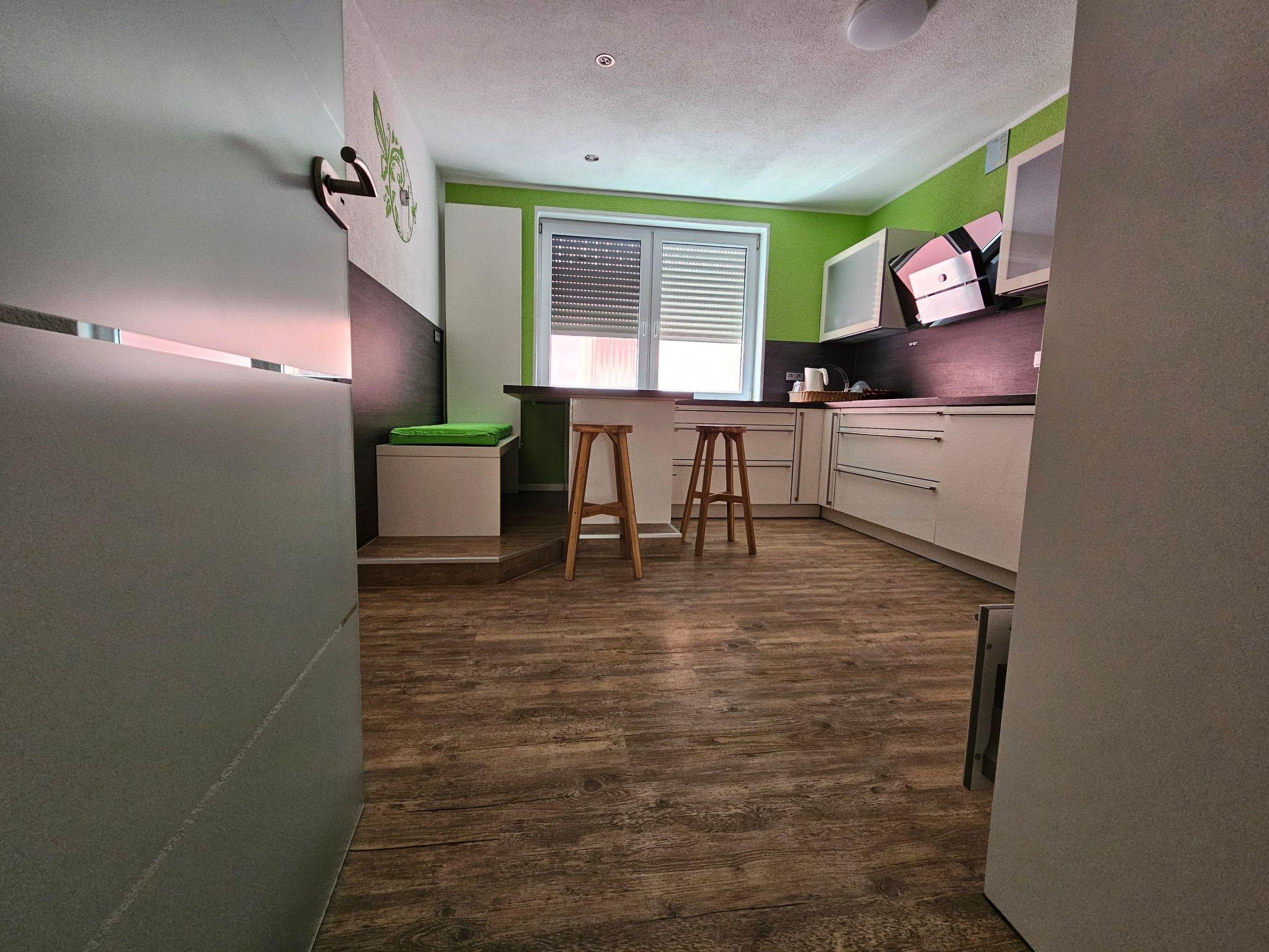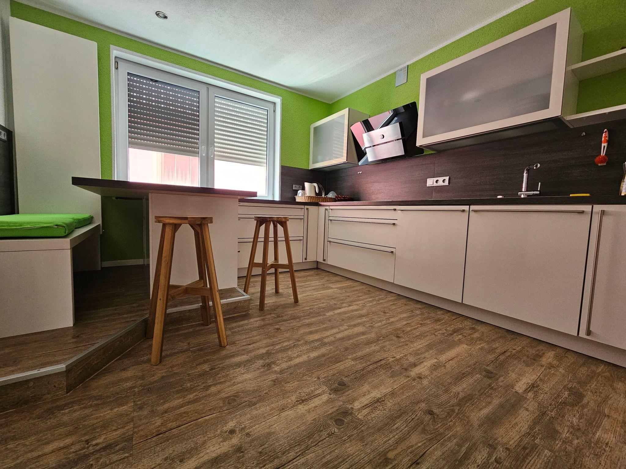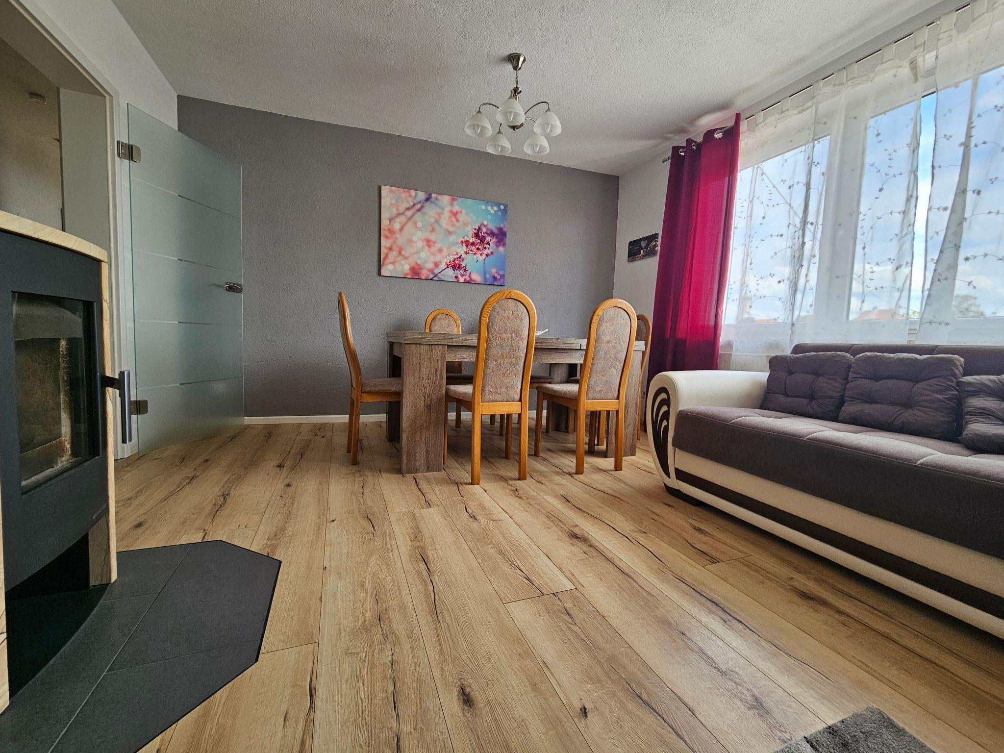 The outdoor area of the flat invites you to relax with a balcony and a terrace. Here you can enjoy the peaceful atmosphere and relax after an eventful day. Free private parking is also available for you and your fellow travellers, making your arrival and departure as well as day trips to the surrounding area particularly convenient.
