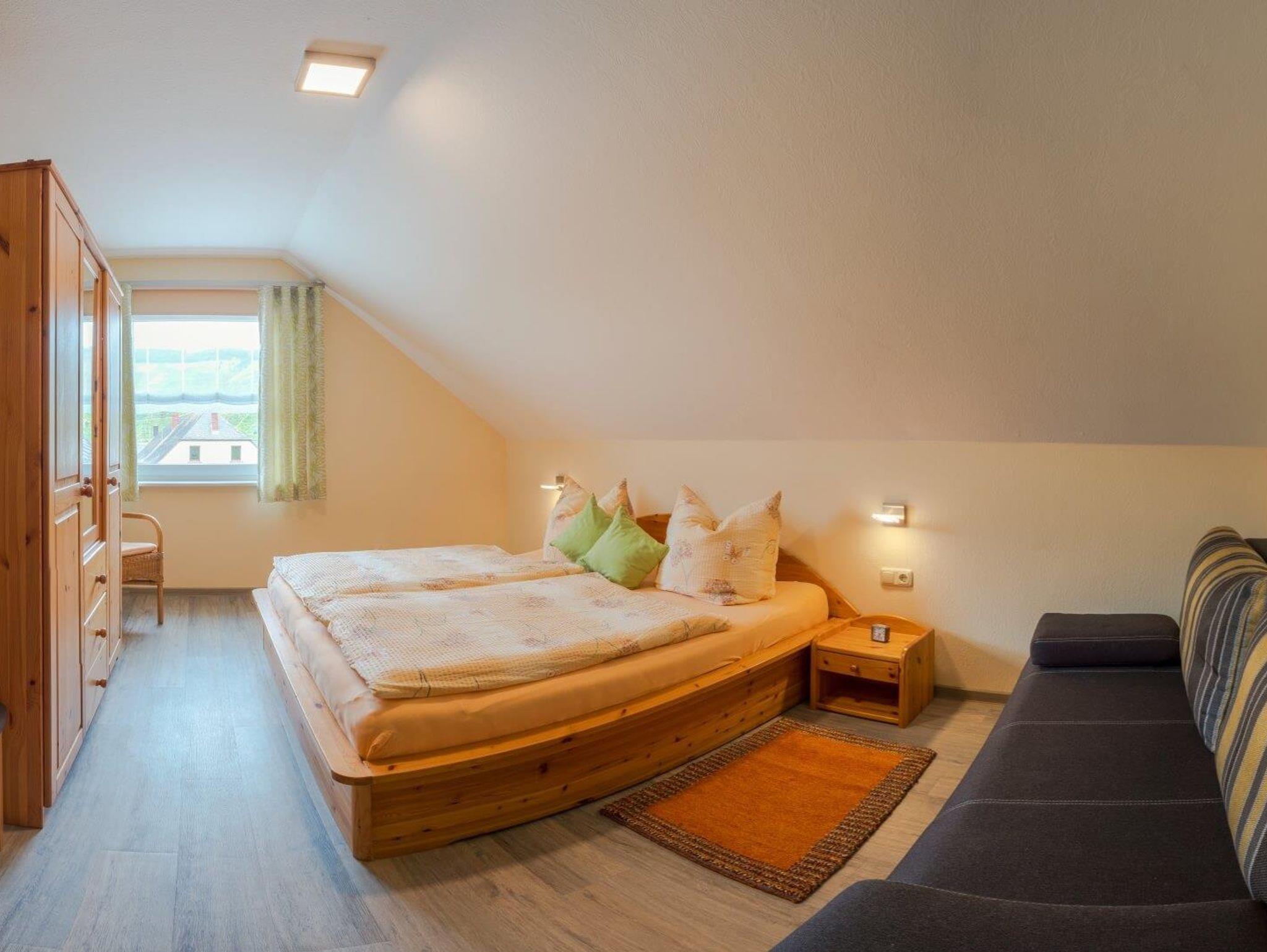Ferienwohnung für 2-4 Personen. Wohn-Schlafraum mit Esstisch, Küche, Sitzgelegenheit für 4 Personen, SAT-TV, Stereo-Kompakt-Anlage, Bad mit Dusche/WC. Haustiere nur auf Anfrage, Aufpreis pro Tag 10 €.