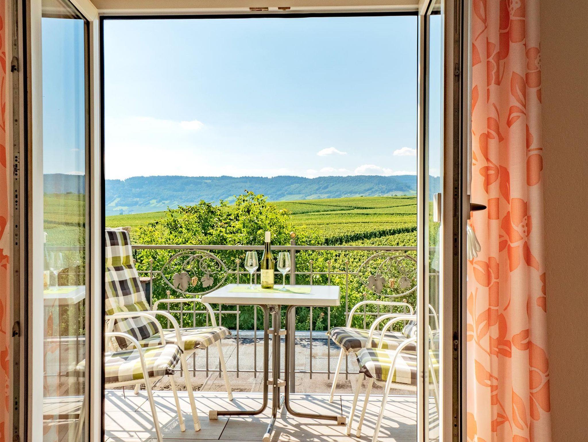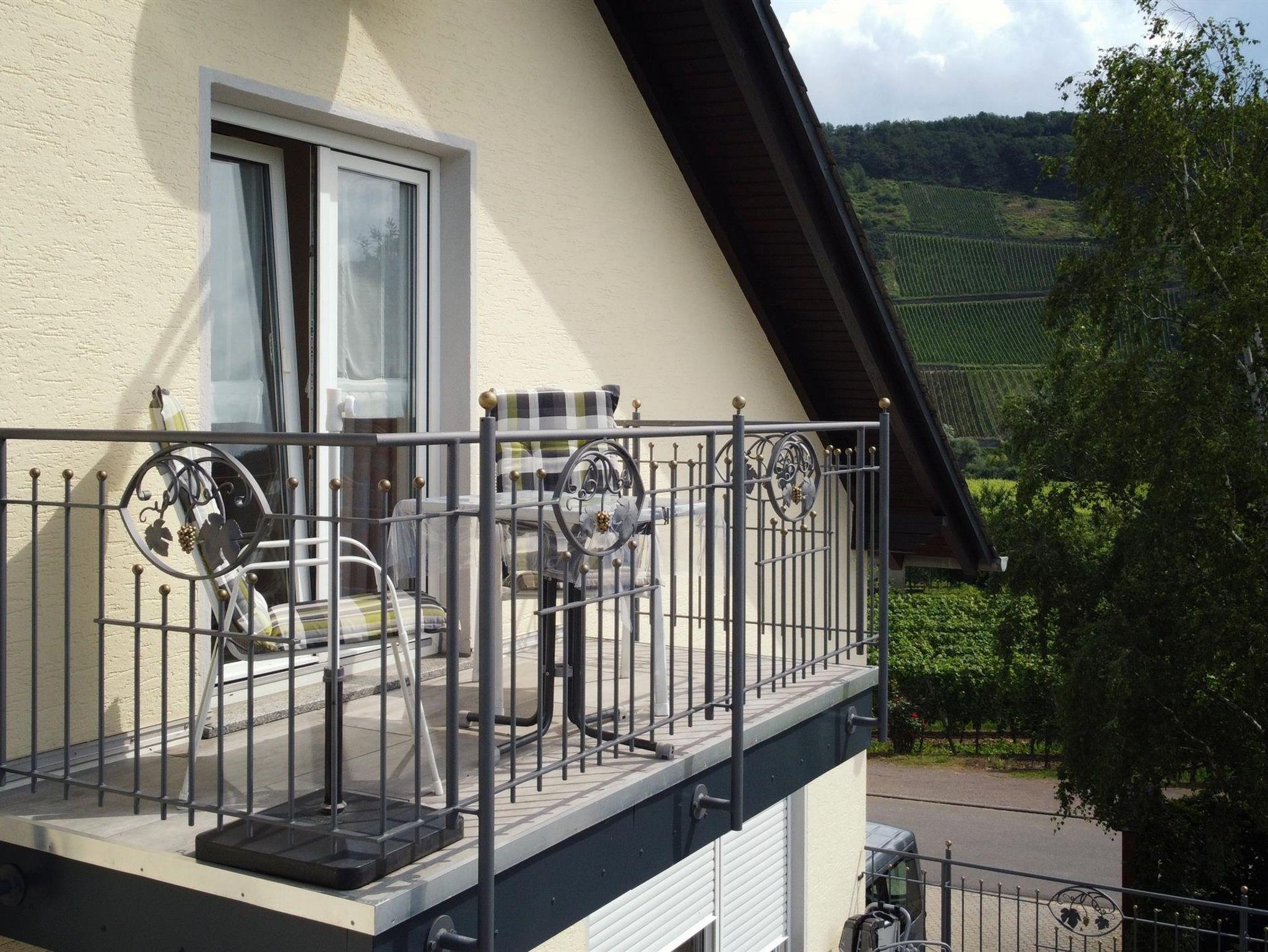 Neun komfortable, mit viel Liebe zum Detail eingerichtete Ferienwohnungen und ein gemütliches Weinstübchen zum geselligen Beisammensein, stehen auf unserem fämiliär geführten Ferienweingut für Sie bereit. Die Küchen in unseren Ferienwohnung sind komplett ausgestattet. Von unserem Haus bzw. Balkons haben Sie eine herrliche Aussicht auf das Moseltal. Für alle Gäste steht eine gemütliche Sitzecke im Freien, eine große Liegewiese, Kinderspielplatz und Parkplatz direkt am Haus zur Verfgügung. Jeden Morgen frische Brötchen vom Bäcker. Eine Betriebsbesichtigung unseres Weingutes mit Umtrunk in unserem gemütlichen Weinstübchen gehört zum Service unseres Hauses.