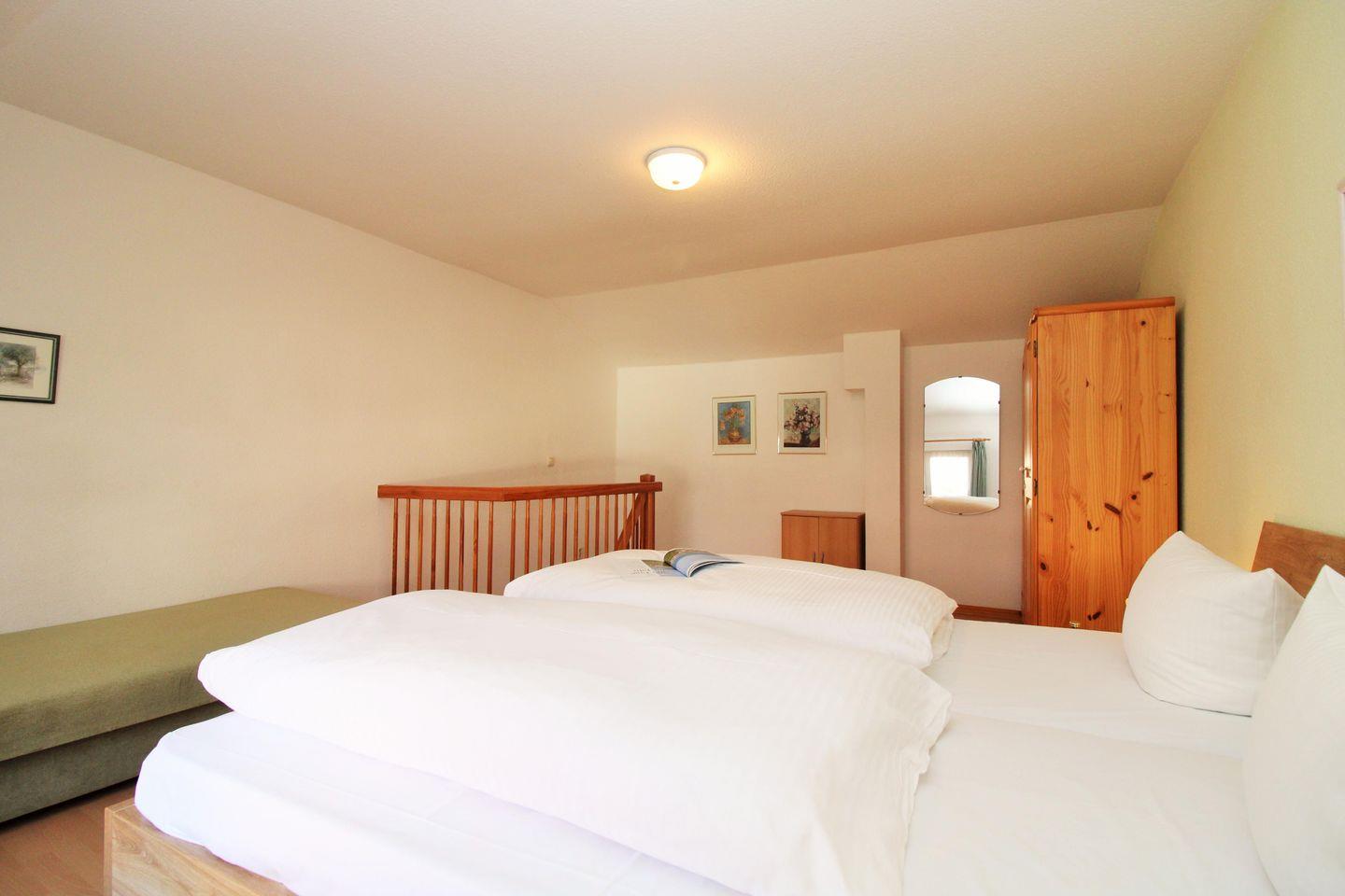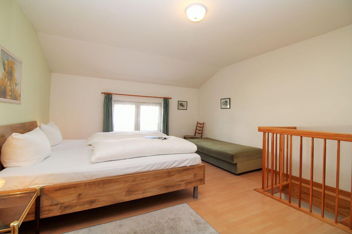 Das geräumige Schlafzimmer (im 1. OG) ist mit einem bequemen Doppelbett, Nachttischen mit Lampen, einem geräumigen Kleiderschrank sowie einer Wäschekommode eingerichtet.
