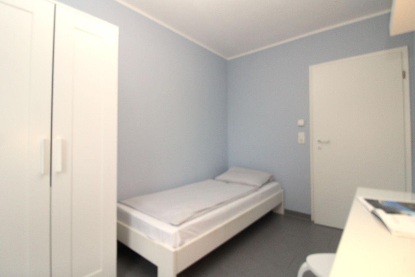 Das separate und zusätzliche 2. Schlafzimmer (Kinderzimmer) verfügt über 2 getrennte Einzelbetten (90 x 200), einen weiteren Kleiderschrank sowie einen (Schreib-)Tisch mit 2 Hockern.