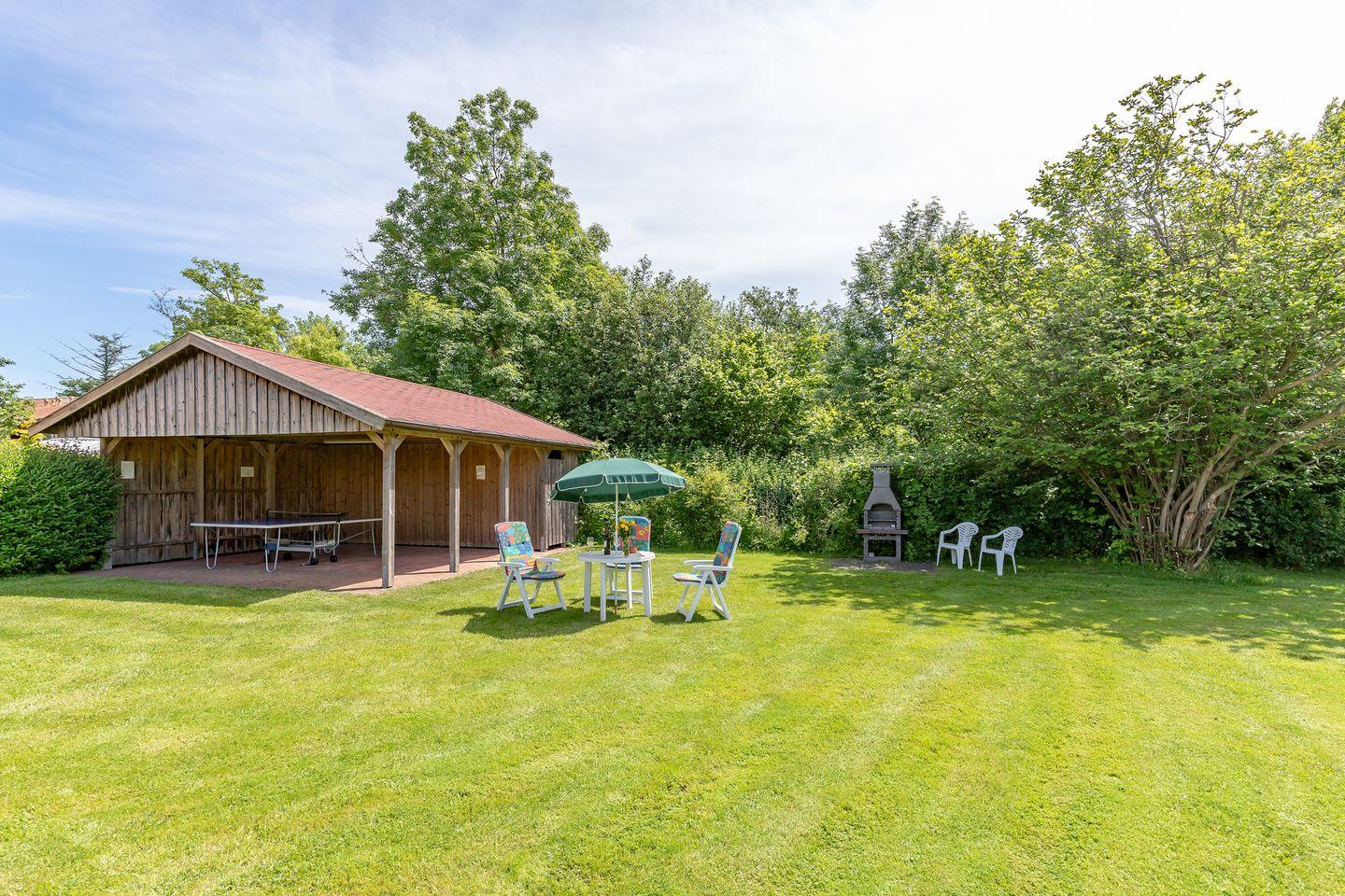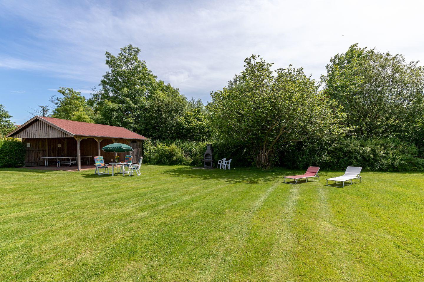 • 2 ebenerdige Terrassen mit Strandkorb und großer Liegewiese