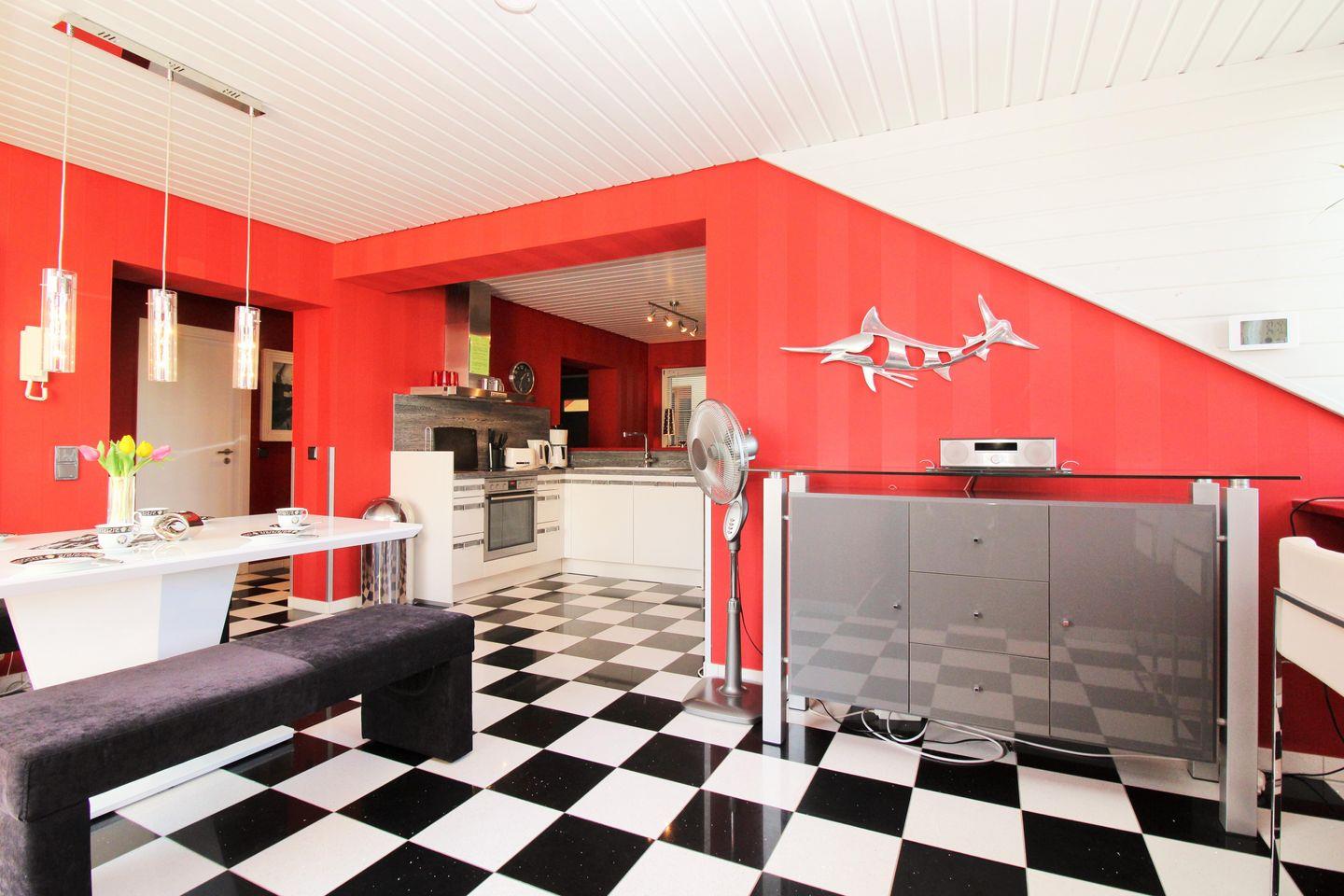 Zu Ihrer Unterhaltung stehen Ihnen im Wohnbereich ein modernes Flachbildschirm-TV-Gerät, ein DVD-Player sowie eine Stereoanlage mit Radio und CD-Player zur Verfügung. Darüber hinaus verfügt die Wohnung über kostenfreies WLAN (ohne Gewähr - gem. unseren AGB erfolgt keine Haftung bei eventuellen Störungen).