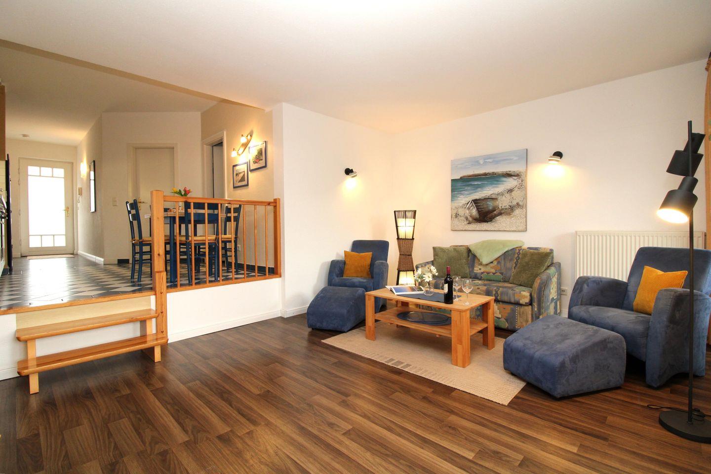 Die strandnahe, freundliche und helle 2-Zimmer-Wohnung (ca. 57 m²) im Erdgeschoss besitzt ein hohes Maß an Wohlfühlkomfort und ist komplett eingerichtet. Der Bodenbelag im Wohnzimmer und der Diele ist Holzlaminat, im Schlafzimmer Teppichboden, der Küchen- bzw. Essbereich und das Bad / WC sind gefliest.