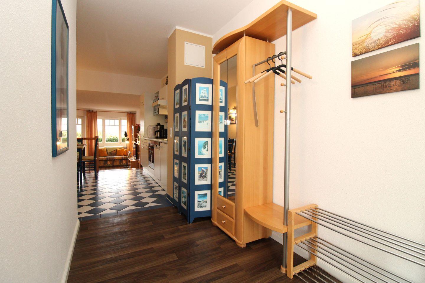Von der geräumigen Diele mit Garderobe, Schrank, Spiegel und Schuhständer erreichen Sie bequem alle Räume Ihrer Ferienwohnung.