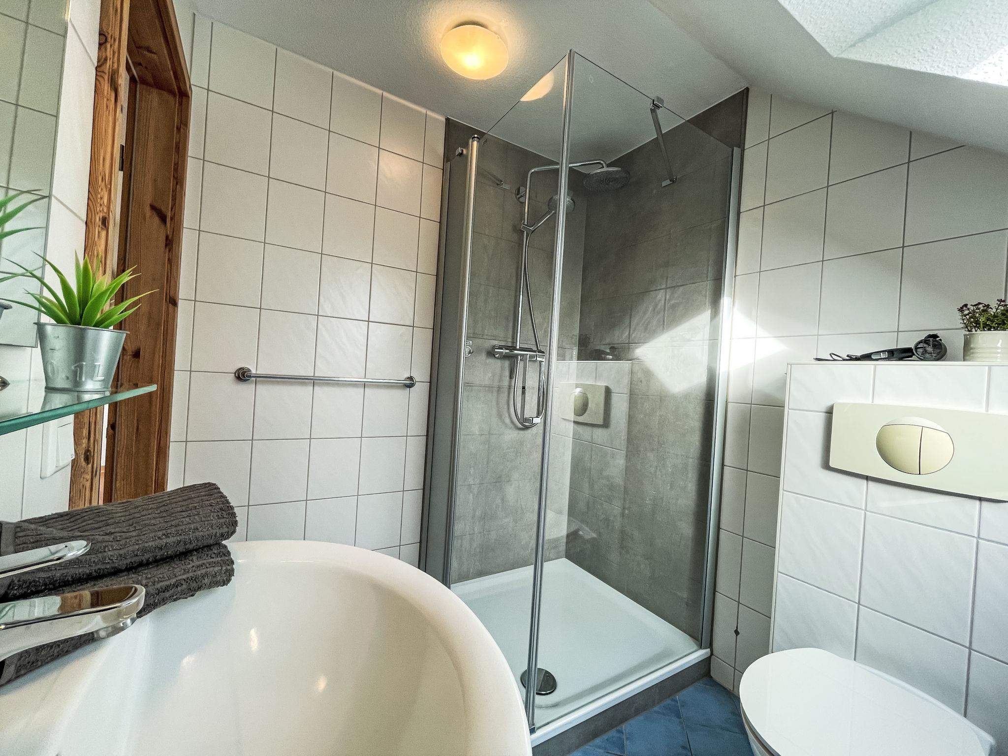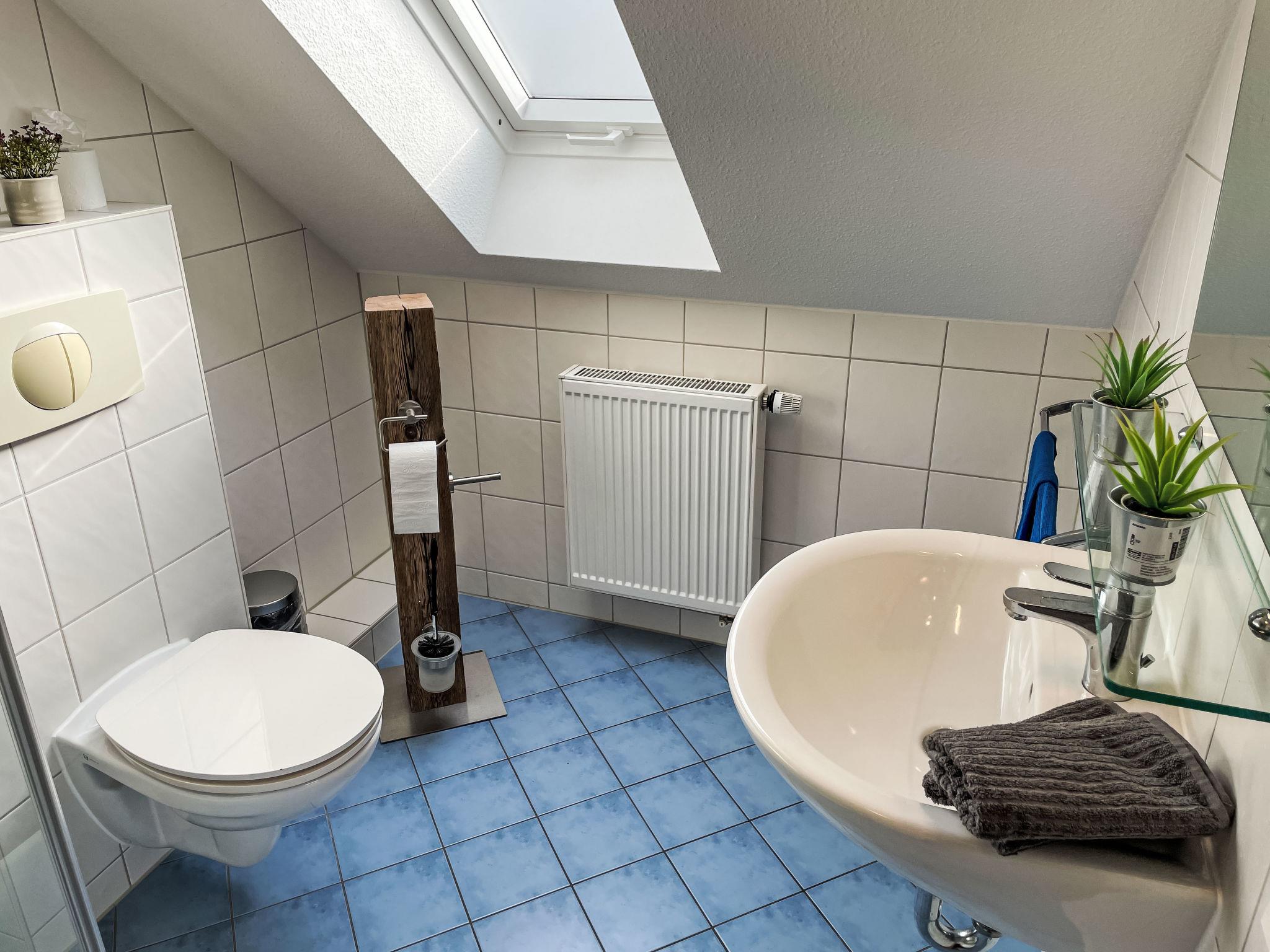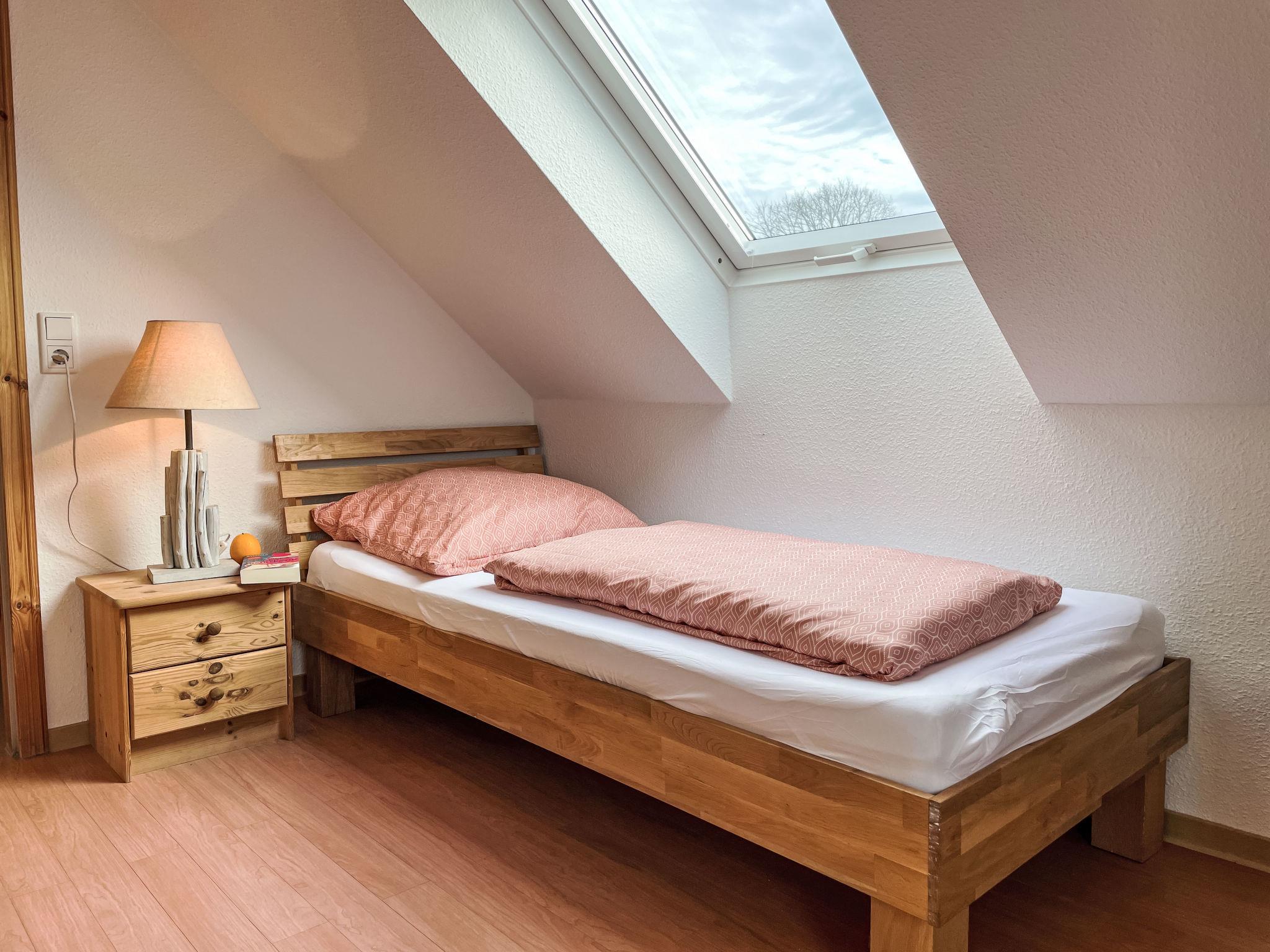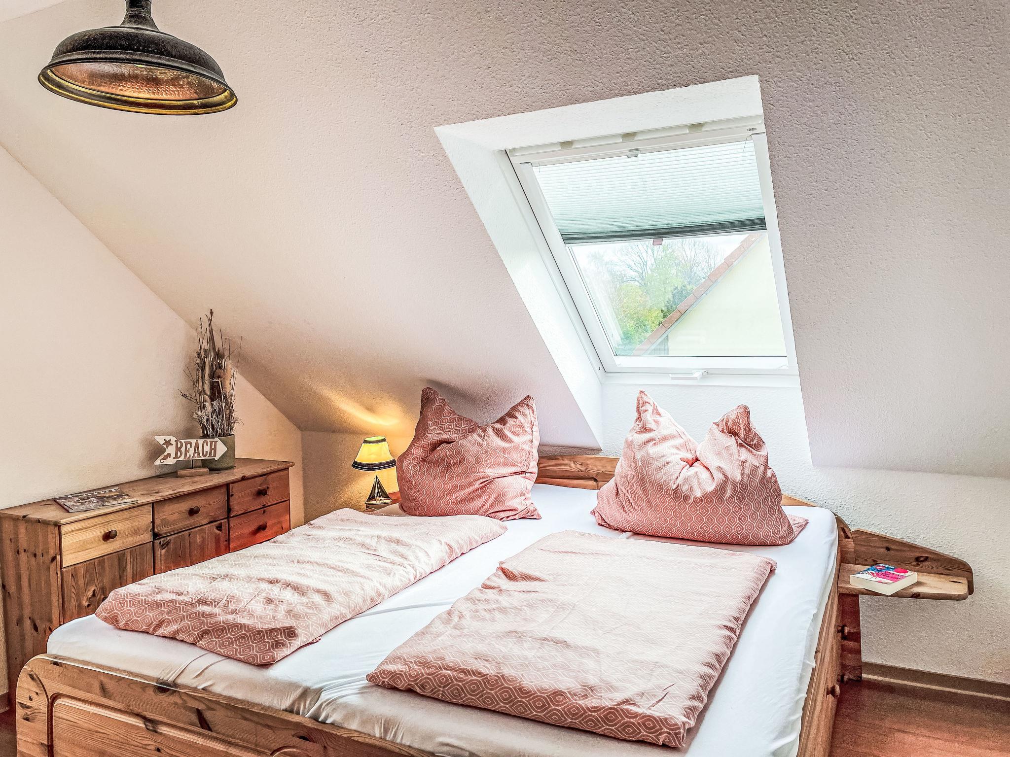 "Möwenblick", 3-room apartment 69 m2 on 2 levels. Bright, partly with sloping ceilings, beautiful and cosy furnishings: upper floor: living/dining room with dining nook and satellite TV (flat screen), radio. 1 room with 1 double bed (180 cm, length 200 cm). Open kitchen (dishwasher, 4 ceramic glass hob hotplates, toaster, kettle, electric coffee machine). Shower/WC. Top floor: open walk-through room with 1 double sofabed (140 cm, length 200 cm). 1 room with 1 double bed (180 cm, length 200 cm). Gas heating. Patio. Terrace furniture. Facilities: Internet (WiFi, free). Parking (1 car) at the house. Please note: non-smokers only. Smoke alarm.