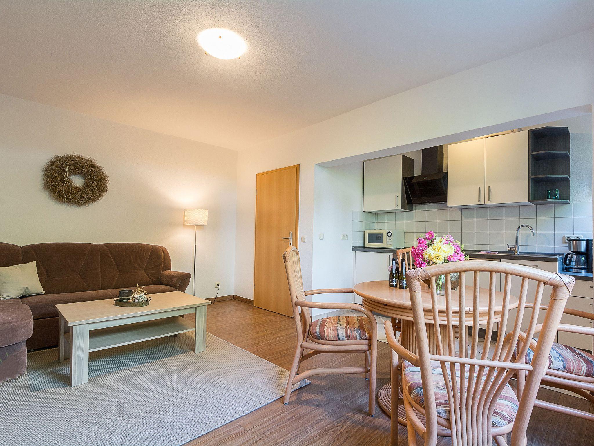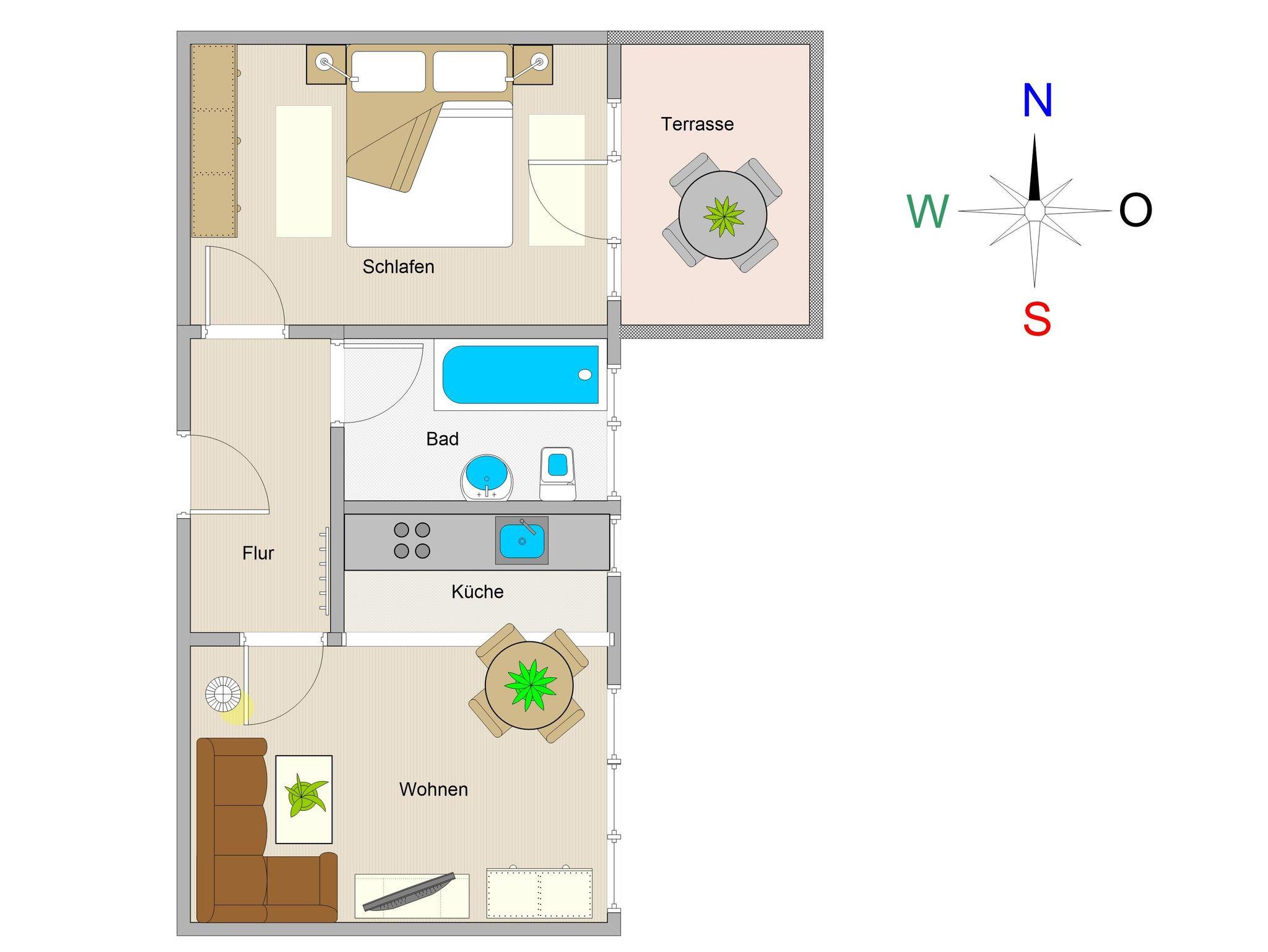 Herzlich willkommen in der Wohnung Nr. 34 in der Residenz Dünengarten. Sie wohnen in einer ca. 50m² großen 2-Raum-Ferienwohnung, die sich im Erdgeschoss des Hauses befindet. Es empfangen Sie ein heller offener Wohn-und Essbereich mit Küchenzeile, ein Schlafzimmer mit Doppelbett und Terrassenzugang sowie ein Wannenbad.