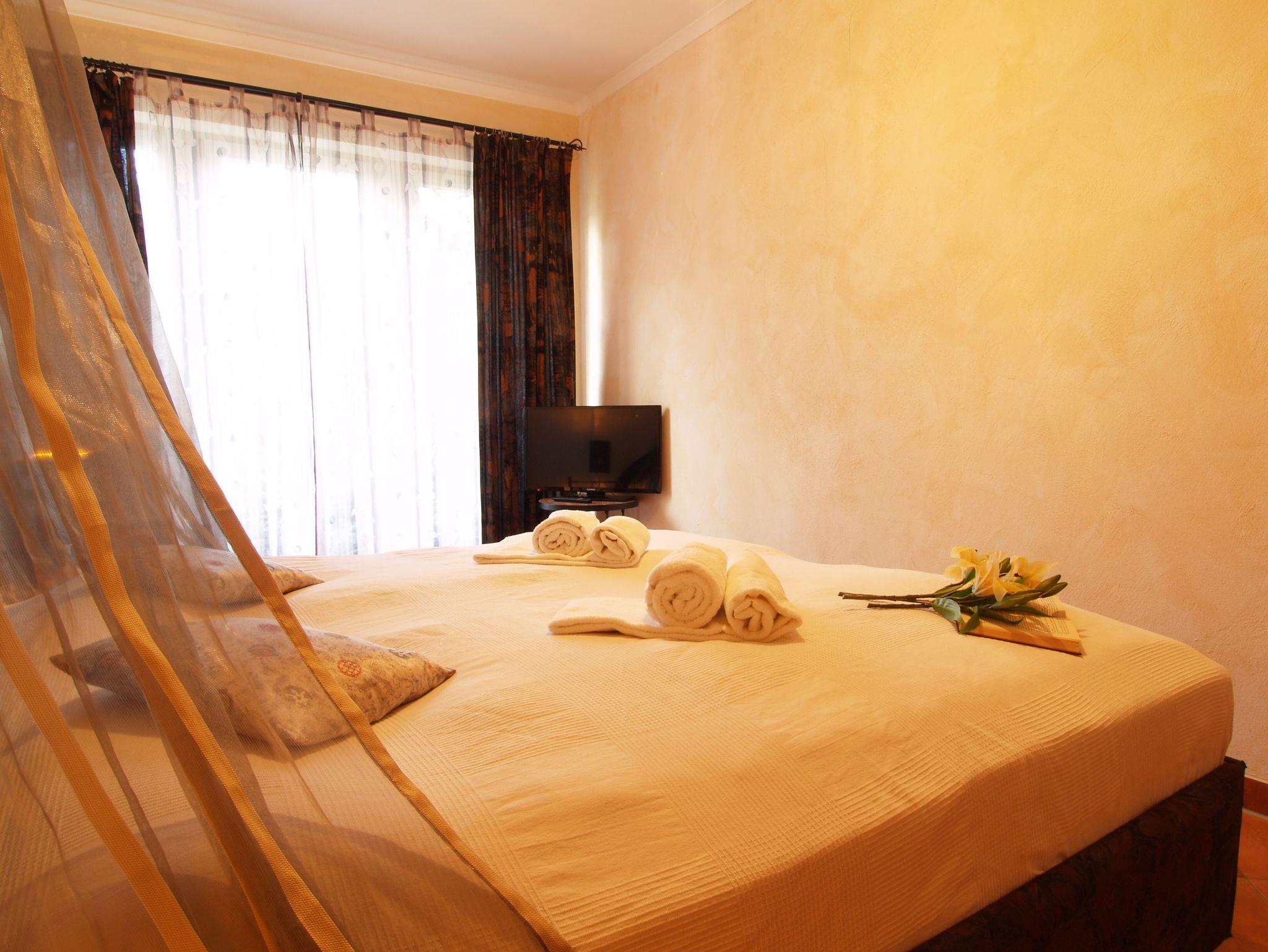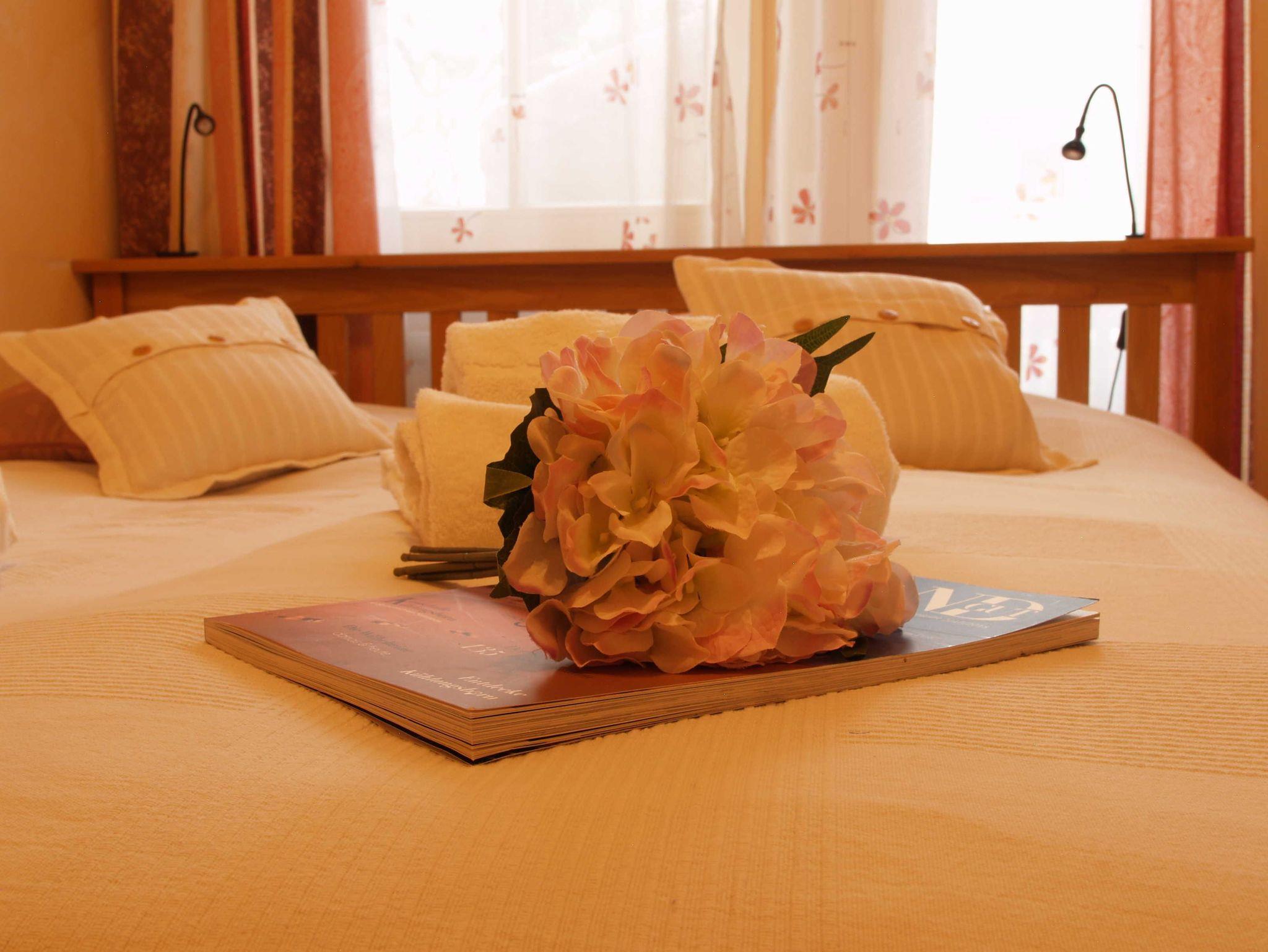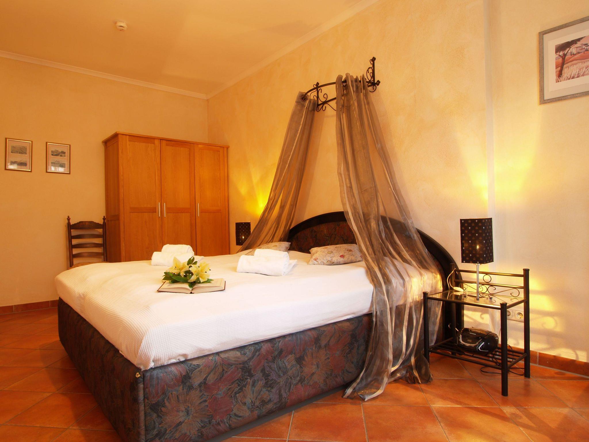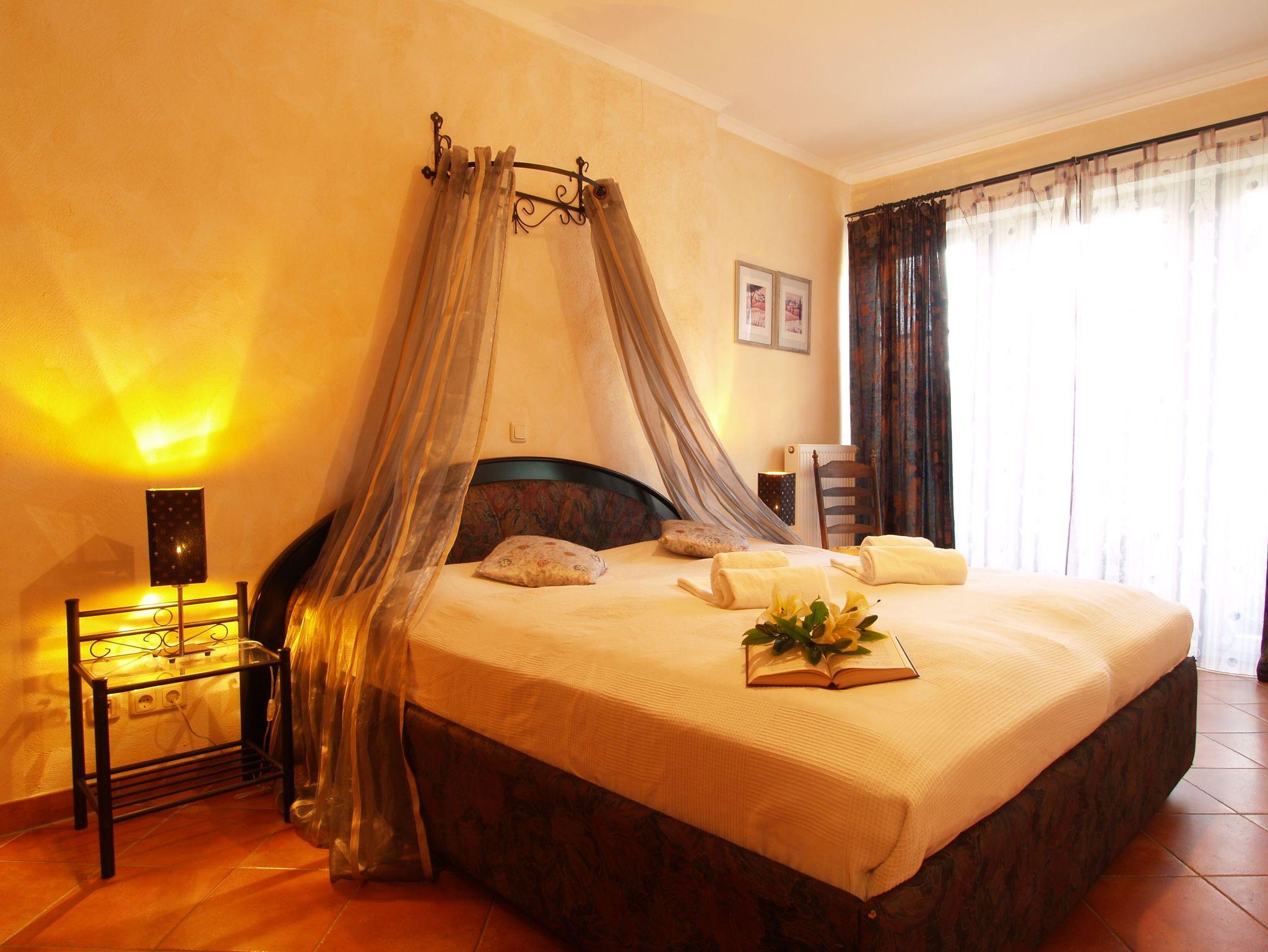 Im ersten größeren Schlafzimmer lädt Sie ein komfortables Doppelbett (2 x 90cm x 200 cm) zur Nachtruhe ein. Der großzügige Kleiderschrank bietet genügend Platz für Ihre Urlaubsgarderobe. Zudem erwartet Sie hier ein zweiter 32-Zoll-Flachbild-TV. Das zweite, etwas kleinere Schlafzimmer verfügt über ein Doppelbett (2 x 80cm x 200cm) und einem kleinen geräumigen Kleiderschrank mit Ganzkörperspiegel. Als Sichtschutz sind in den Schlafzimmern und im Wohnbereich Gardinen und Vorhänge an den Fenstern angebracht. Optional ist als Beistellbett ein Klappbett sowie ein Kinderbett vorhanden.