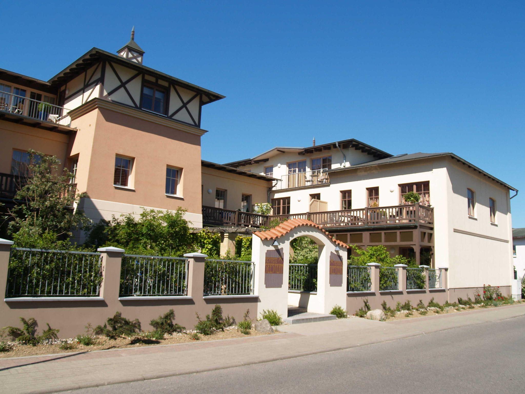 Noch heute ist der Charme der Guten alten Zeit allgegenwärtig: Liebevoll wurden die alten Villen mit ihren Holzbalkonen und prächtig verzierten Fassaden restauriert. Mit Liebe zum Detail wird die Residenz Seestern - 1898 als Hotel zur Post erbaut - erstellt. Die charakteristische Bäderarchitektur findet sich im Fachwerk-Design, im Turm des Mittelbereichs und den zahlreichen Erkern und Balkonen wieder. Wer sich lieber draußen entspannt, kann auf den Hofterrassen die Gartenanlage der Residenz Seestern genießen.