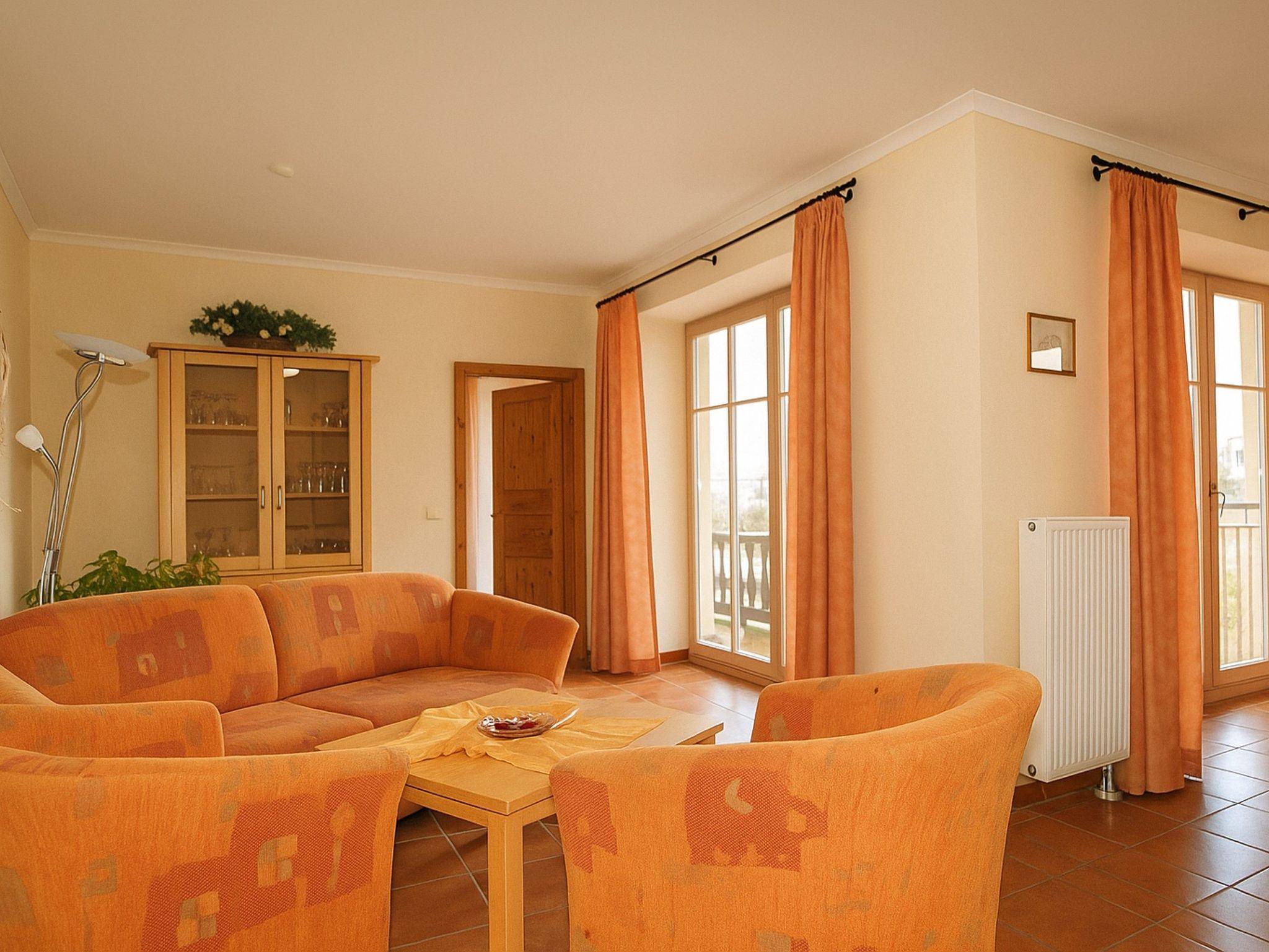 Herzlich willkommen in der Residenz Seestern! Hier in der Wohnung Nr. 21 kann der Urlaub beginnen. Sie wohnen in einer 74 m² großen 3-Raum-Ferienwohnung, die sich im 1. Obergeschoss der Residenz Seestern befindet und für 4-6 Personen ausgestattet ist. Alle Zimmer sind mit mediterranen Fliesen versehen.