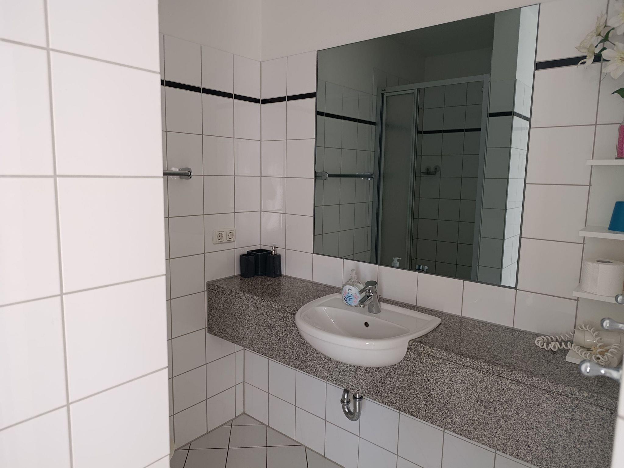 Die zweckmäßig gestaltete Ferienwohnung im Erdgeschoss hat einen offenen Wohnbereich mit Küchenzeile und Essbereich, ein Schlafzimmer mit Doppelbett und eine kleine Terrasse. Schlafzimmer und Bad erreichen Sie über eine Treppe in der Wohnung. Die funktionale Küchenzeile ist mit 2-Platten-Kochfeld, Kühlschrank mit Gefrierfach, Mikrowelle, Geschirrspüler, Kaffeemaschine und div. Geschirr ausgestattet. Ein Bad mit Dusche, Waschbecken und WC komplettieren den Gesamteindruck der Wohnung.