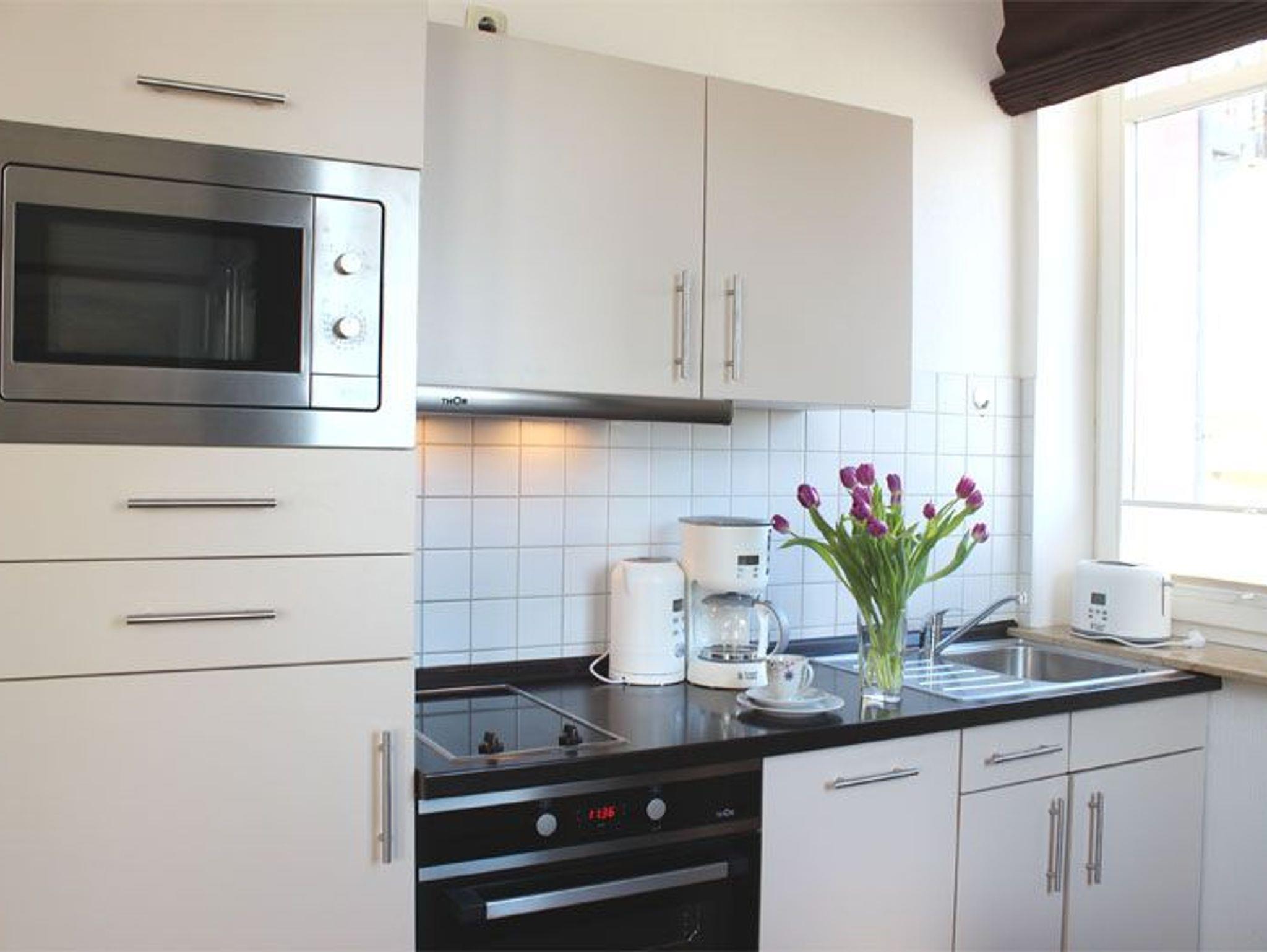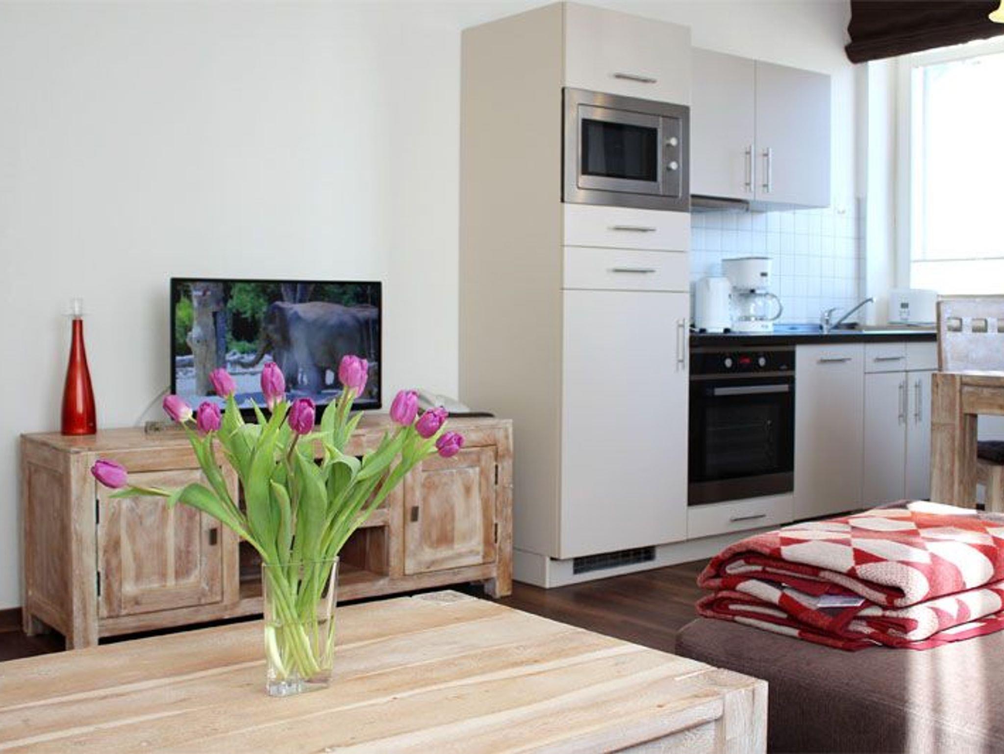 In einigen Appartements steht im Schlafzimmer zusätzlich eine Polsterliege, die Schlafcouch im Wohnzimmer ermöglicht auf Anfrage eine Aufbettung. Zur Ausstattung der Küchenzeilen gehören Geschirrspüler, Kochfelder, Kühlschrank mit Gefrierfach, Kaffeemaschine, Toaster und Wasserkocher, teilweise zusätzlich Mikrowelle und Backofen.