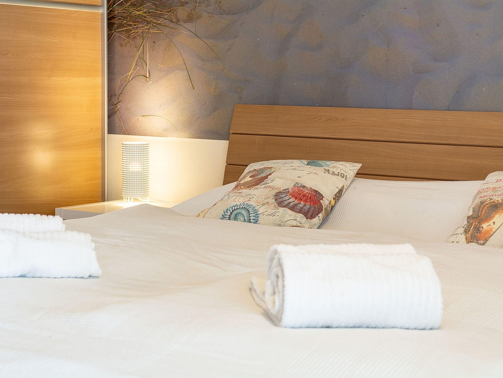 Aber auch an kalten Tagen ist die Wohnanlage ein Top-Urlaubsziel: Unseren Gästen steht kostenlos eine Sauna zur Verfügung. Weiterhin gibt es einen Aufzug und einen Fahrradabstellraum im Haus. Waschmaschine und Wäschetrockner können gegen Gebühr benutzt werden. Die Ferienwohnung verfügt über zwei Balkone mit Meerblick und einen Pkw-Stellplatz.