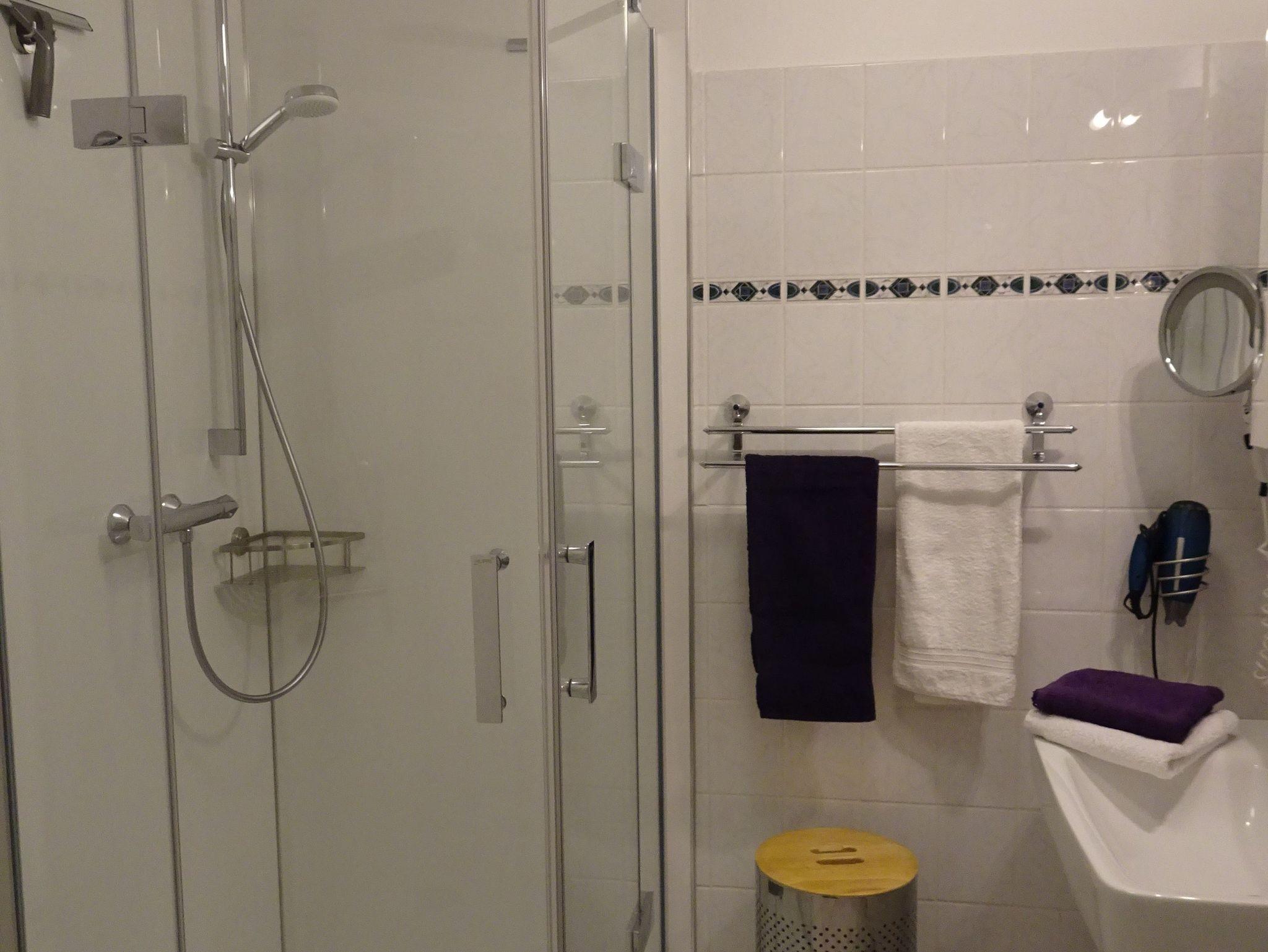 Das Duschbad ist renoviert und modernisiert, hat eine große