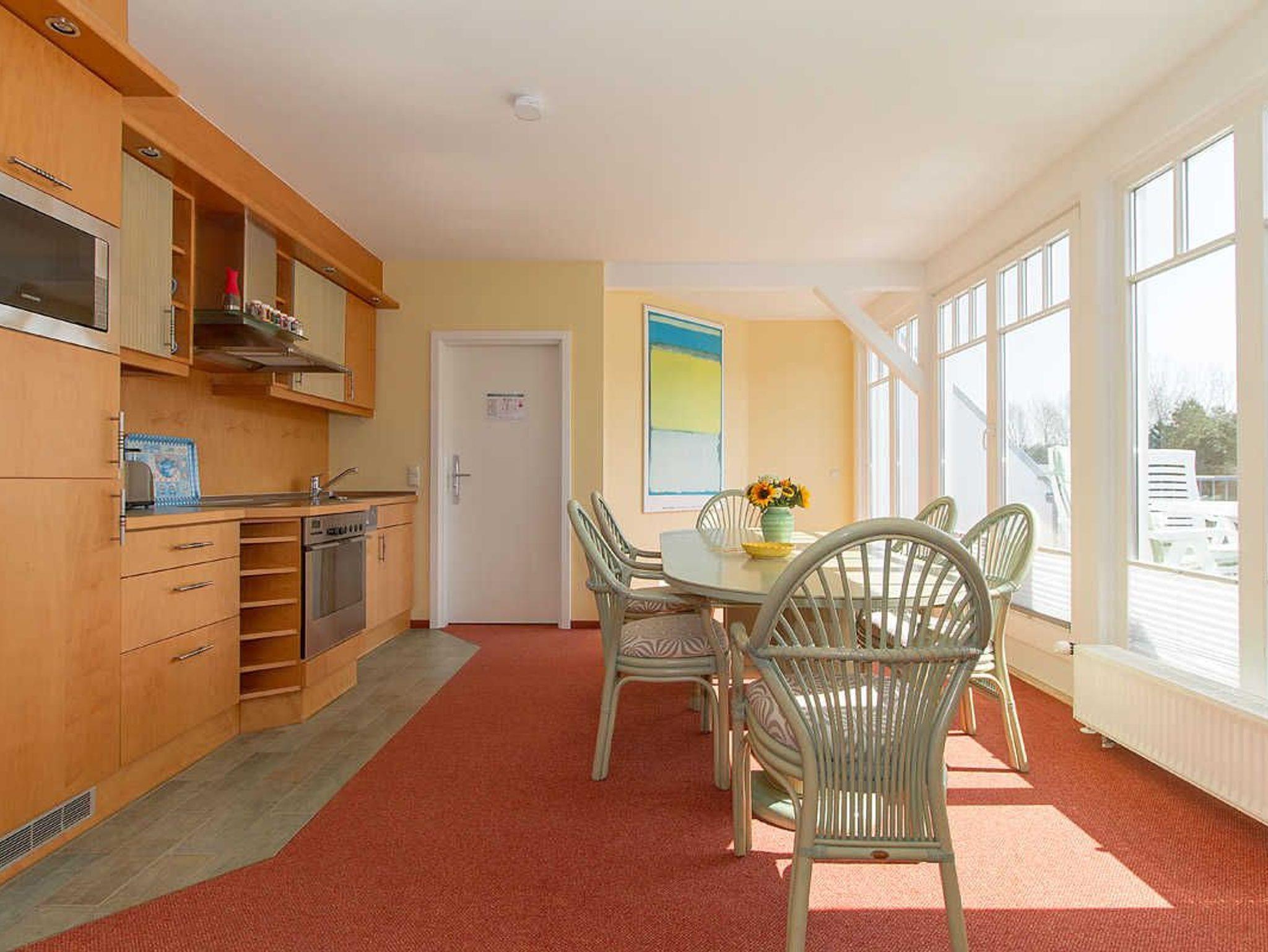 Die Wohnung ist im oberen Dachgeschoss gelegen und hat zwei Dachterrassen zur Westseite und Südseite. Die Wohnungsgröße beträgt ca. 90 qm, großes Wohnzimmer, angrenzende Küche und großem Esstisch mit 6 Stühlen, Schlafzimmer sowie ein großes Kinderschlafzimmer mit 2 Betten und 2 weiteren Aufbettungsmöglichkeiten, Bad mit Dusche und Wanne. Die Küche ist mit Kühlschrank, Ceranfeld, Mikrowelle mit Backofen. Tresor, HD-Sat TV und Telefon.