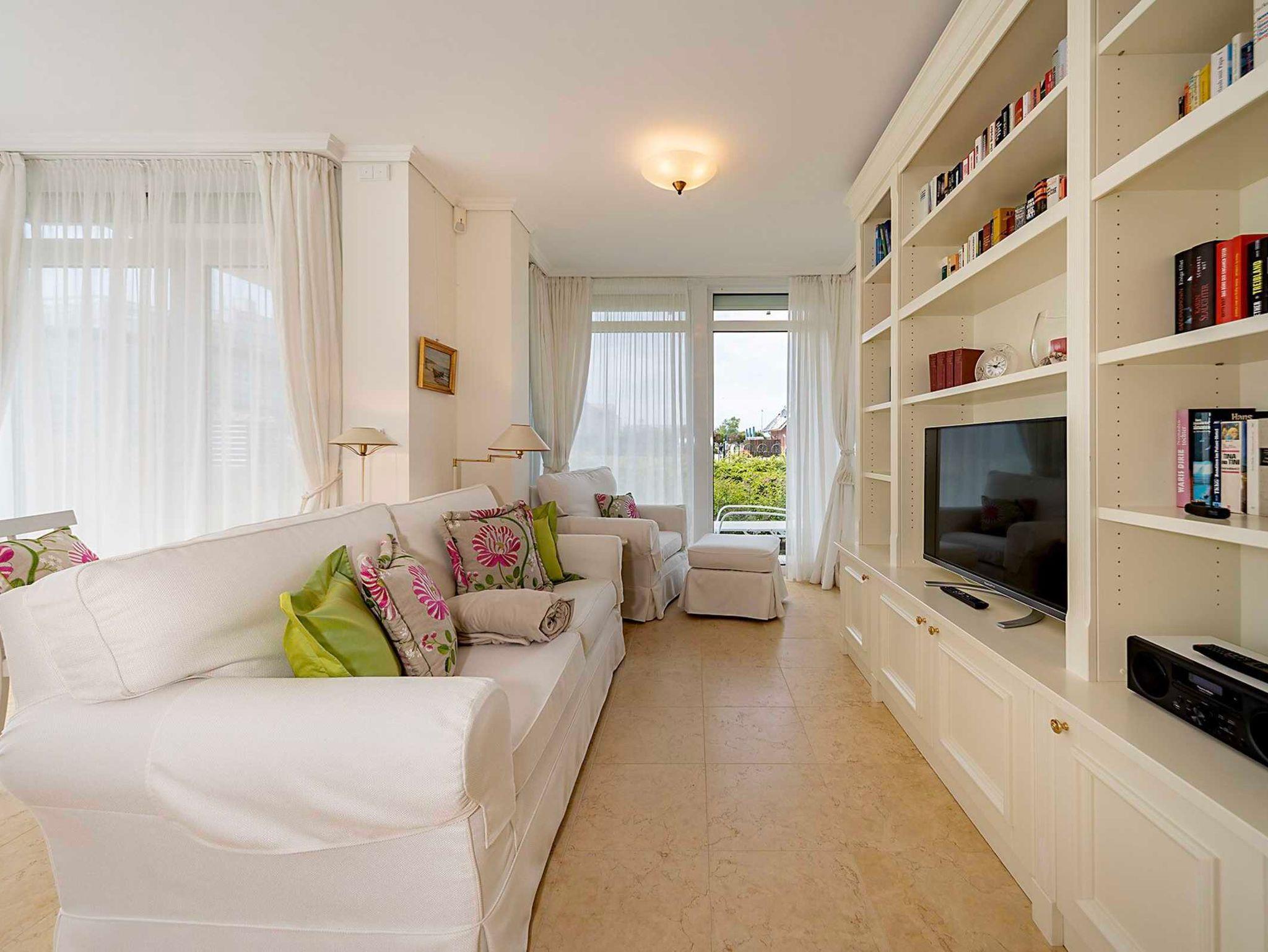 Etwas zurückgezogen im Grünen gelegen, bietet diese 75 qm große Wohnung dennoch einen guten Blick auf die Promenade und das Meer. Ein perfekter Standort für die vierköpfige Familie.