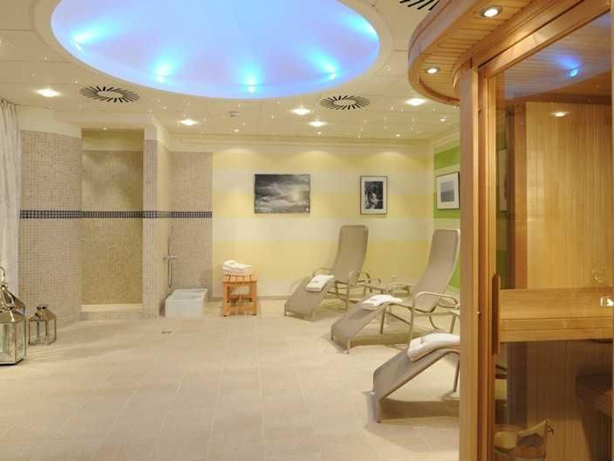 Saunabereich mit ausreichend Platz für 4 Personen, Dusche, Kneipp-Fußbäder, Ruheliegen, Ruhesessel