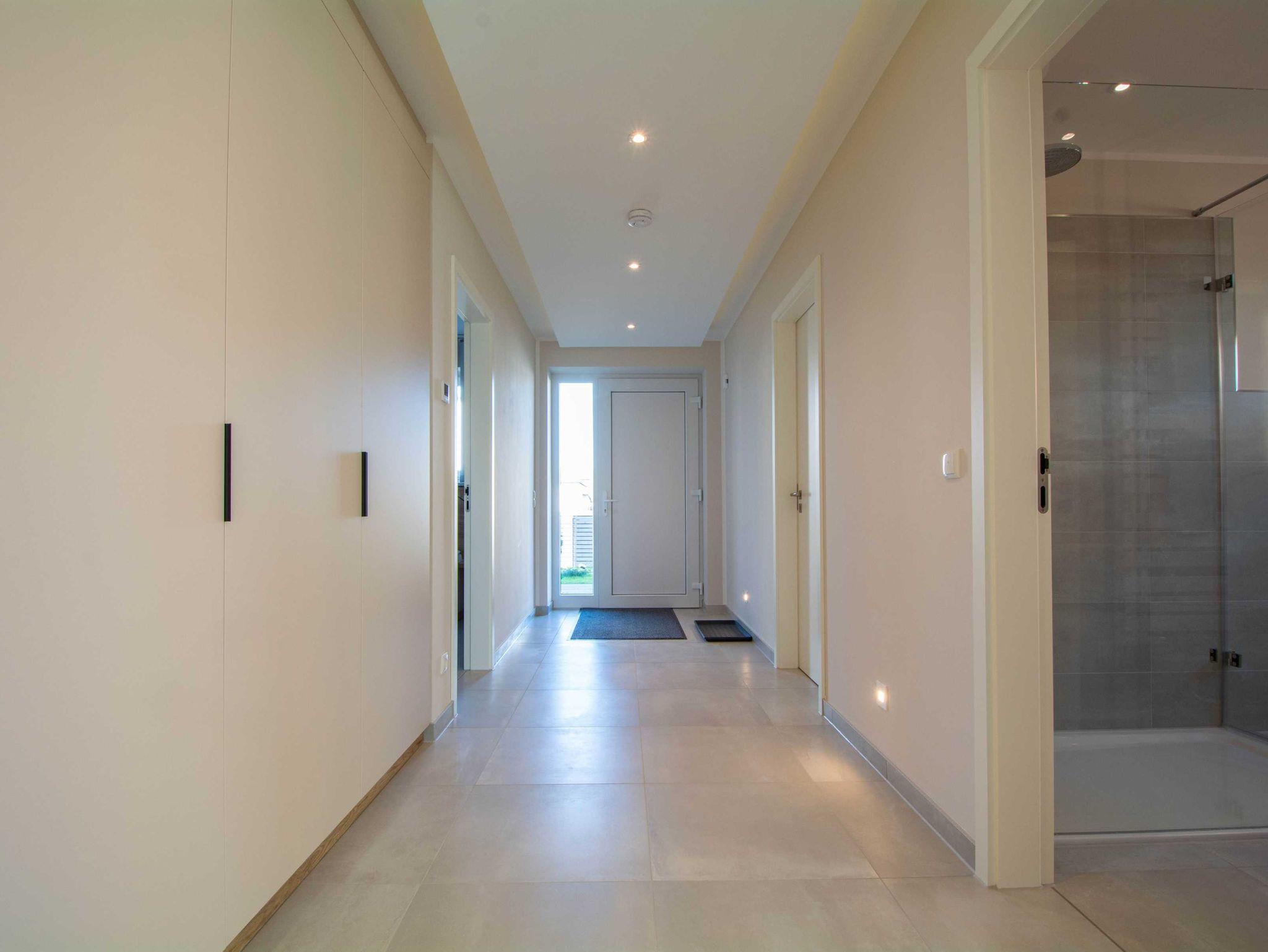 Die großzügige und helle Wohnung wurde 2021 fertigstellt und befindet sich im Erdgeschoss einer modernen Villa mit freiem Blick auf den Bastorfer Leuchtturm. Die Wohnung ist mit Fußbodenheizung in allen Räumen und einem Bussystem zur Steuerung der Haustechnik und Beleuchtung ausgestattet. In den drei Doppel-Schlafzimmern gibt es ebenfalls viel Raum zum Wohlfühlen: großzügige und bequeme Betten, große Kleiderschränke und großzügige Ablageflächen. Mahlzeiten lassen sich in der modernen und durchdachten Küchenzeile im kombinierten Wohn- und Essbereich zubereiten und am hellen Essplatz mit bodentiefen Fenstern und Zugang zur Terrasse genießen. Außerdem lockt die Terrasse mit Frischluft und Ausblick auf den Bastorfer Leuchtturm. Mit 3 Schlafzimmern und 2 Bädern ist die Wohnung für bis zu 6 Erwachsene ein perfekter Erholungsort an der Ostsee und passt mit der modernen und luftigen Einrichtung optimal zur modernen Architektur.